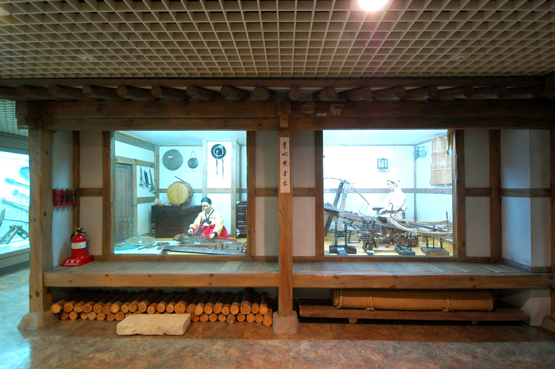 2전시실에는 둔마리 벽화고분 모형, 선현유품, 안방, 사랑방, 한약방, 농기구 민예품, 생활용품 등이 전시되어 있어
