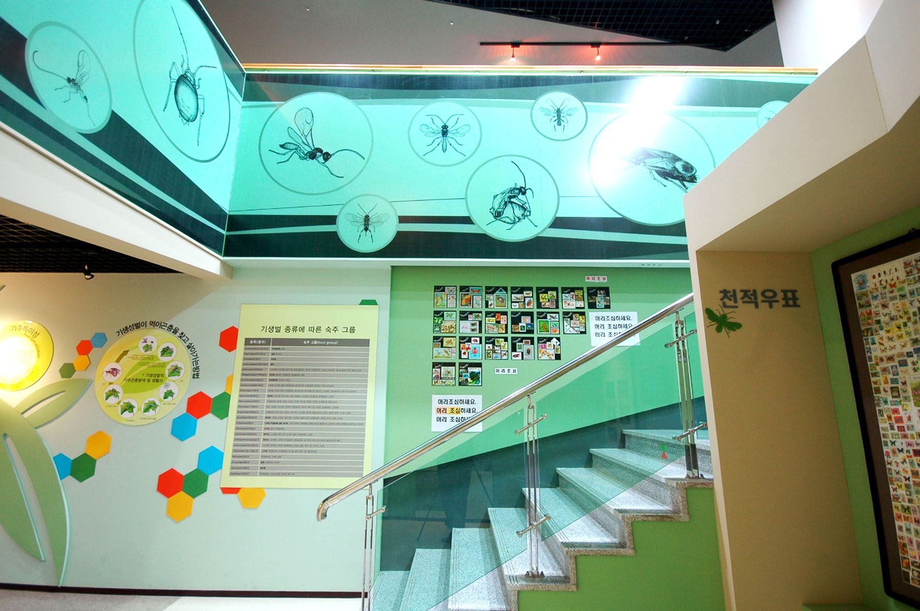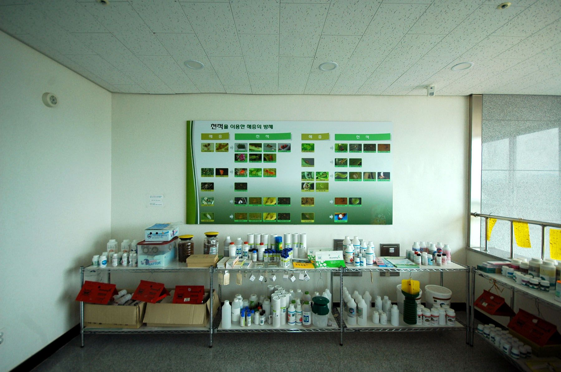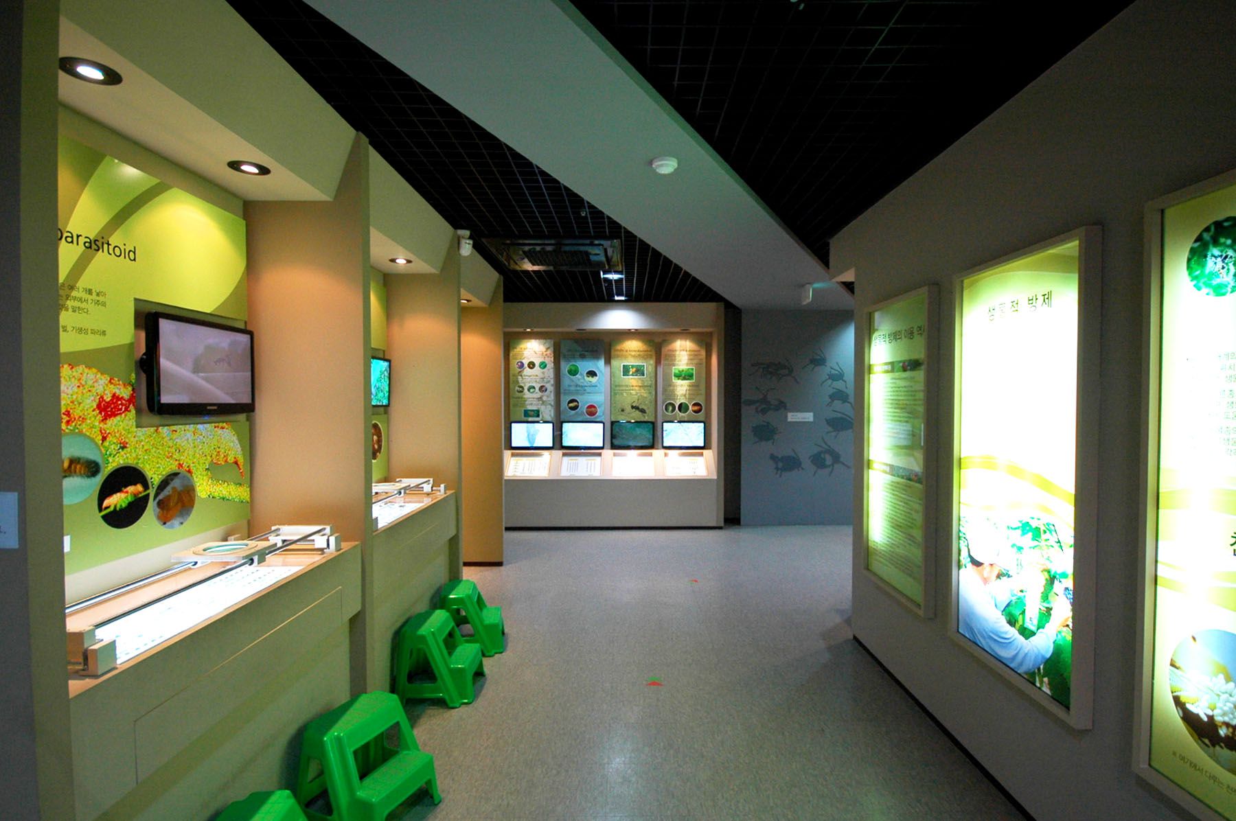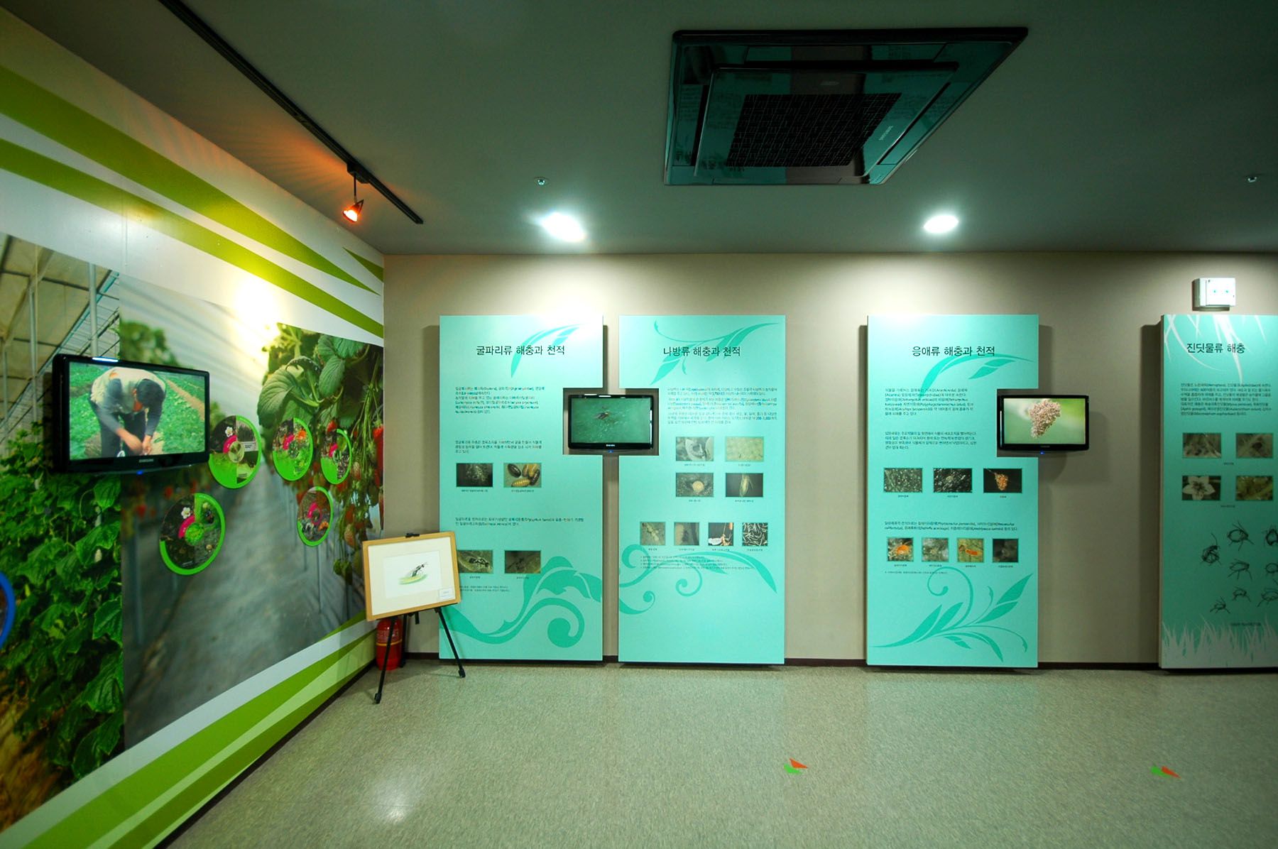 1층에는 교육, 전시실이 마련되어 있고, 2층은 실험실, 표본실, 천적 사육실로 되어 있습니다.