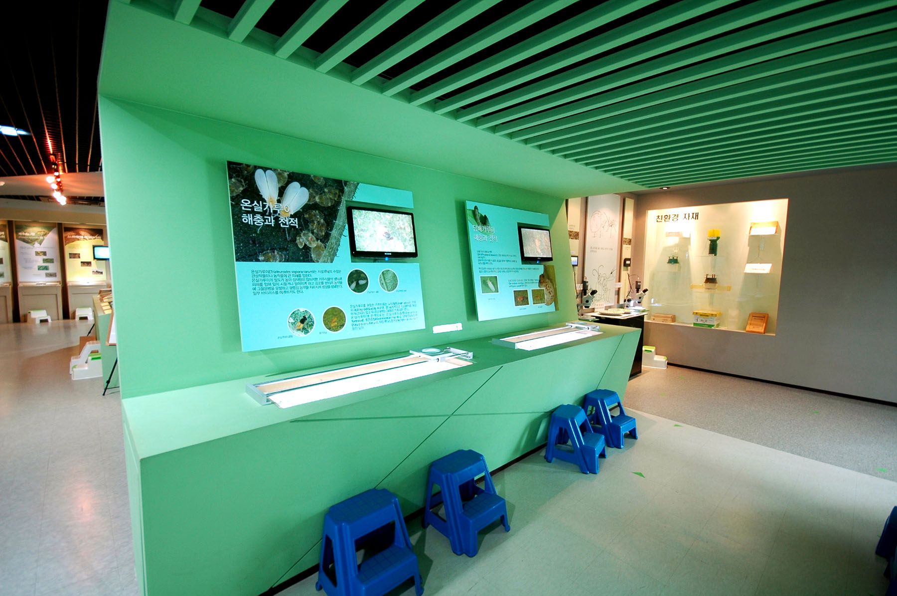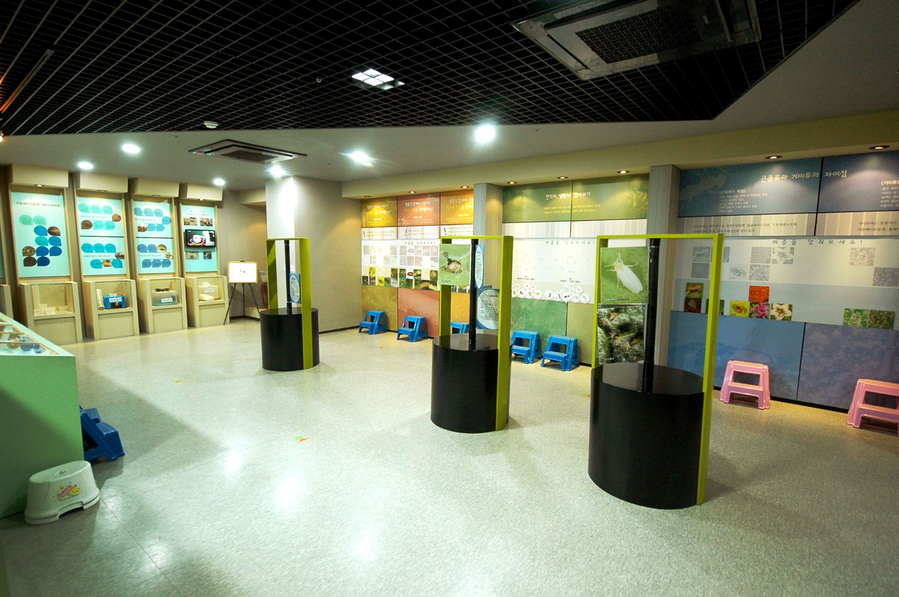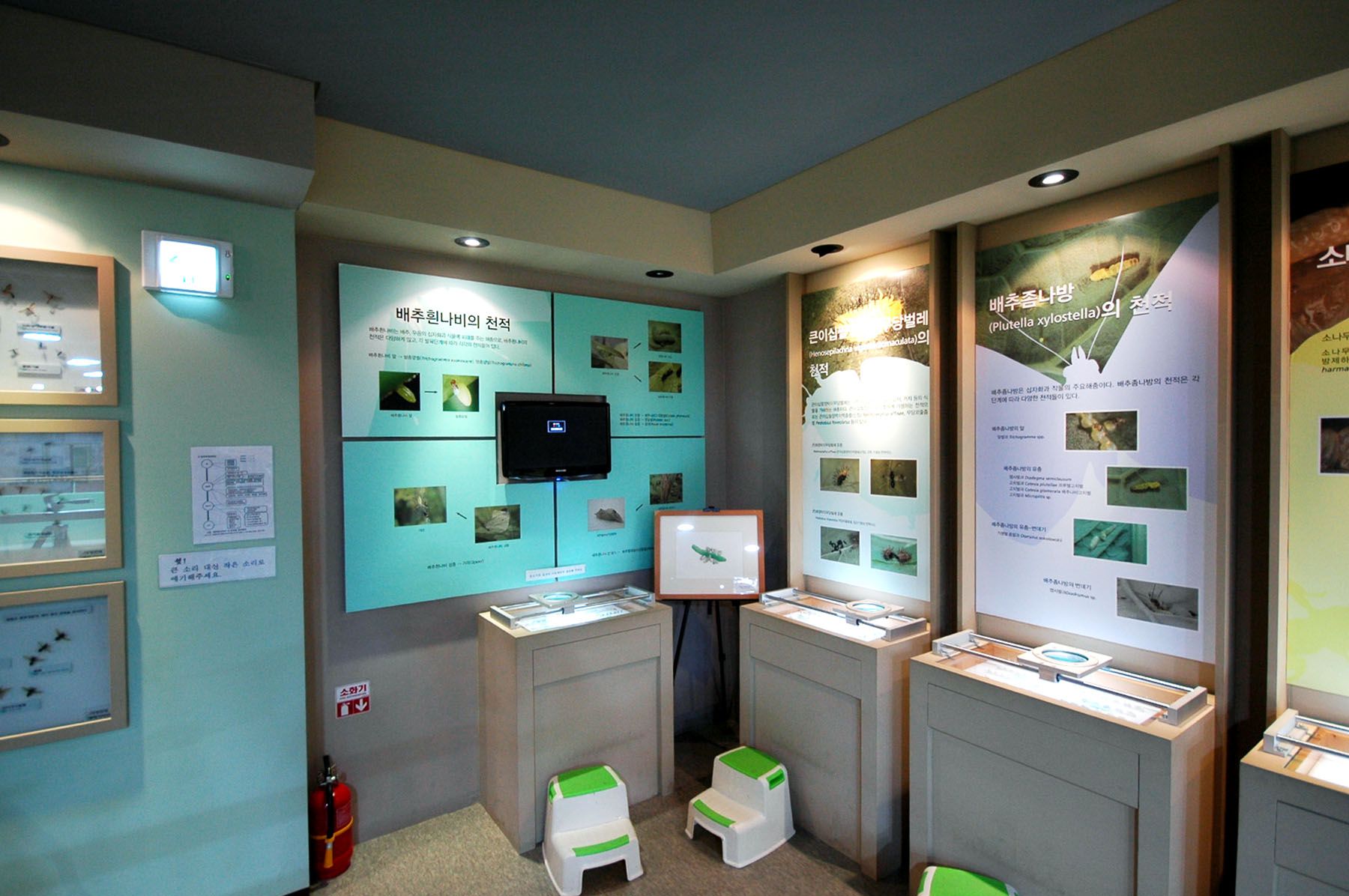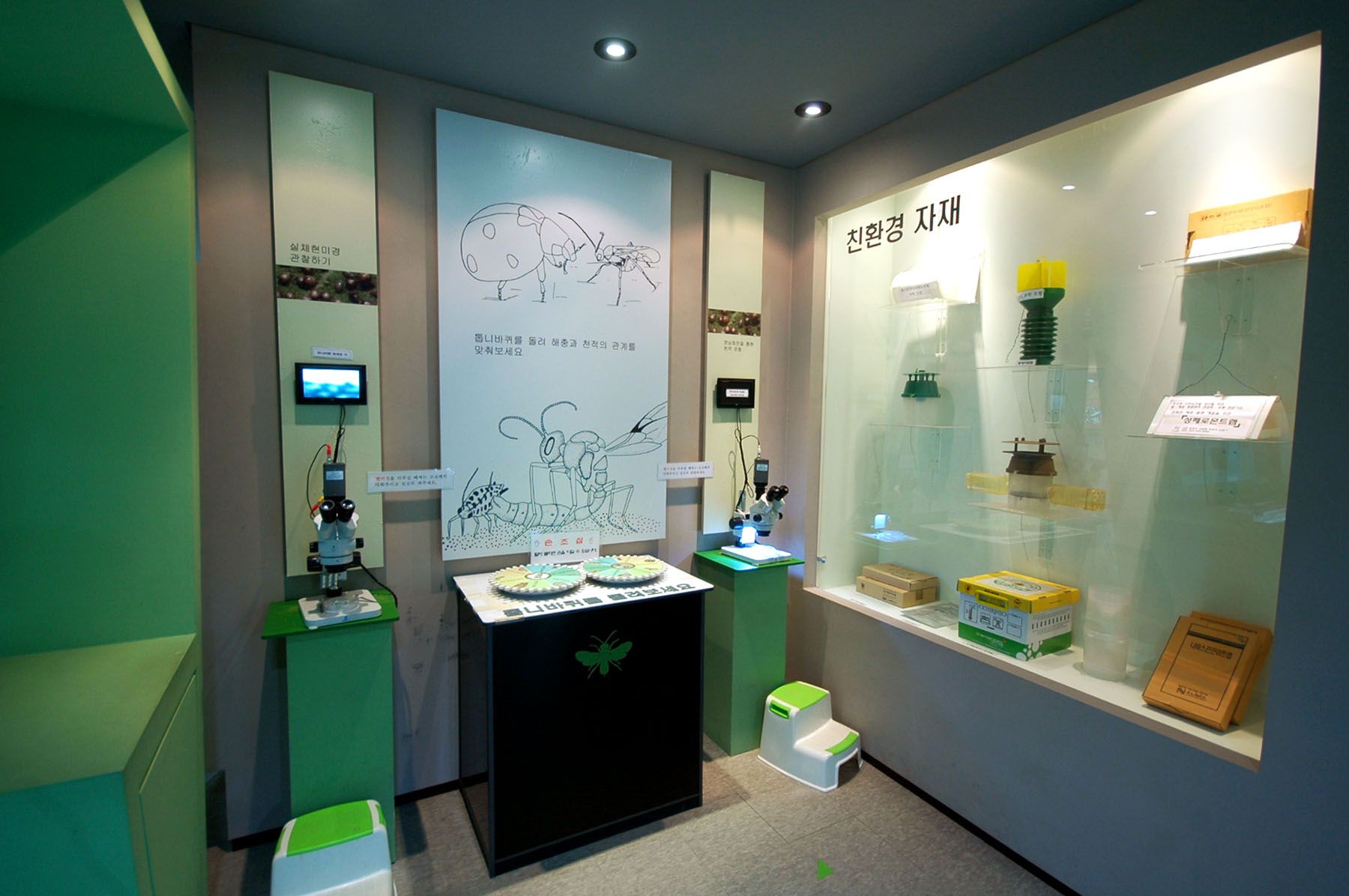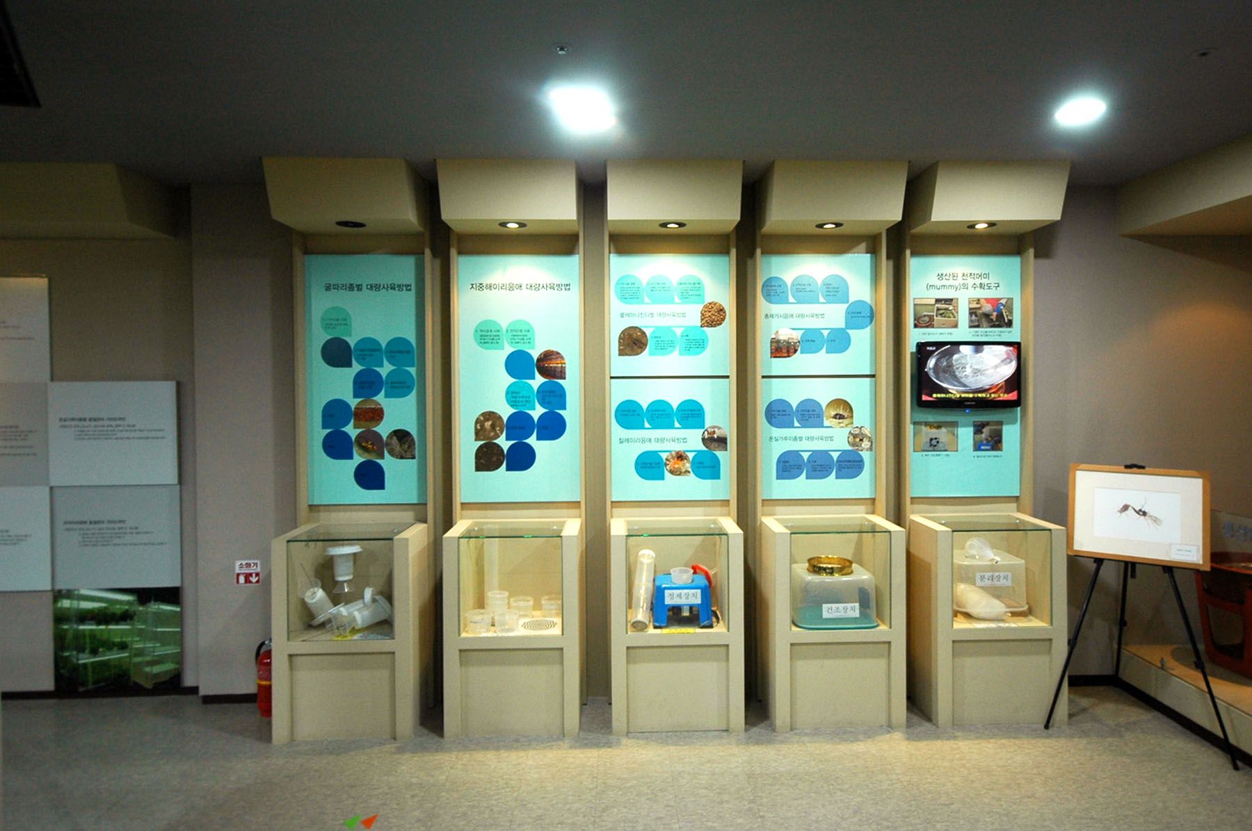 1층에는 교육, 전시실이 마련되어 있고, 2층은 실험실, 표본실, 천적 사육실로 되어 있습니다.