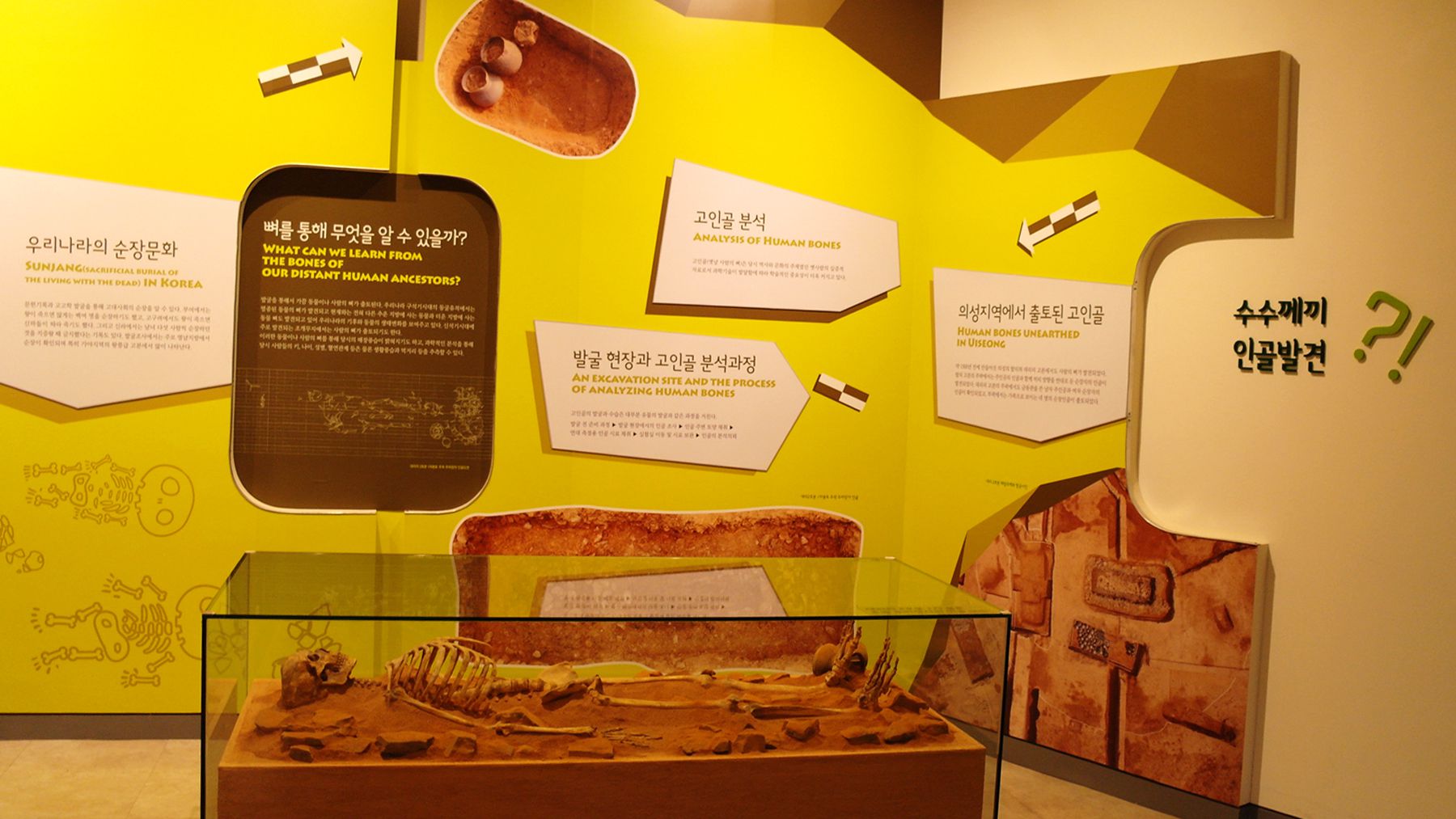 가장 먼저 보이는 의성 지역에서 출토된 고인골이 시선을 사로잡습니다.