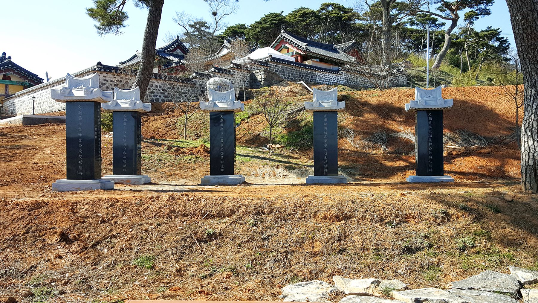 홍살문을 지나면 향교의 유공자들을 기념하기 위해 세운 비석들이 보입니다.