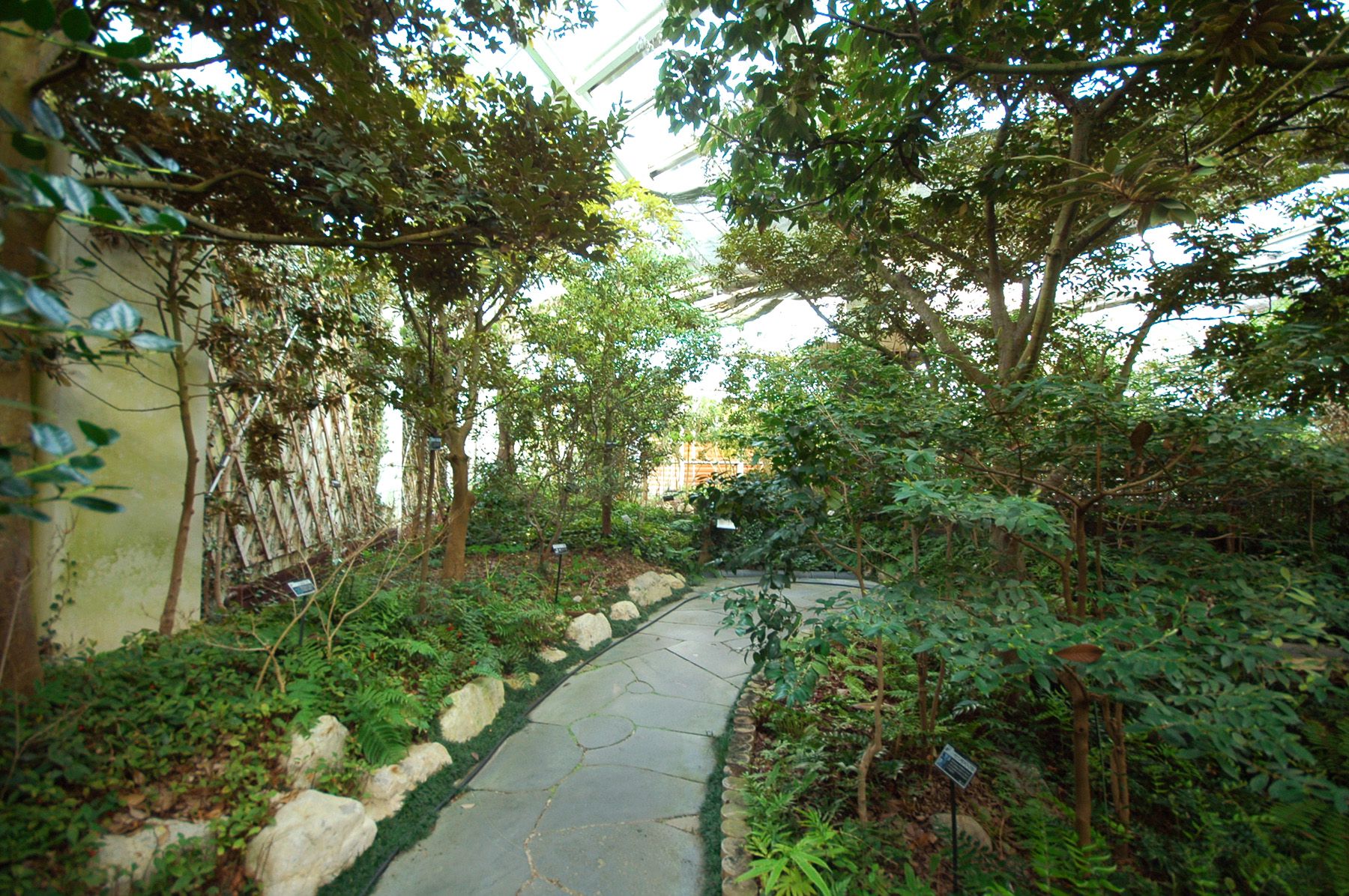 실내전시관과 연결되어 있는 온실에는 난대성 기후에서 자생하는 117종 8천여 본의 나무와