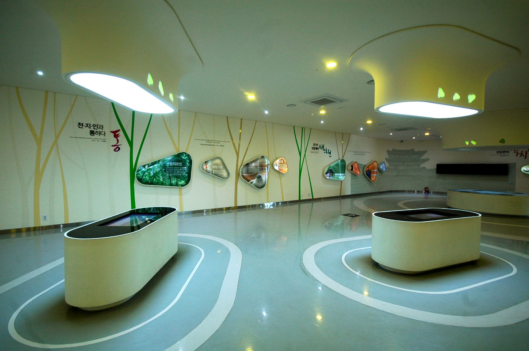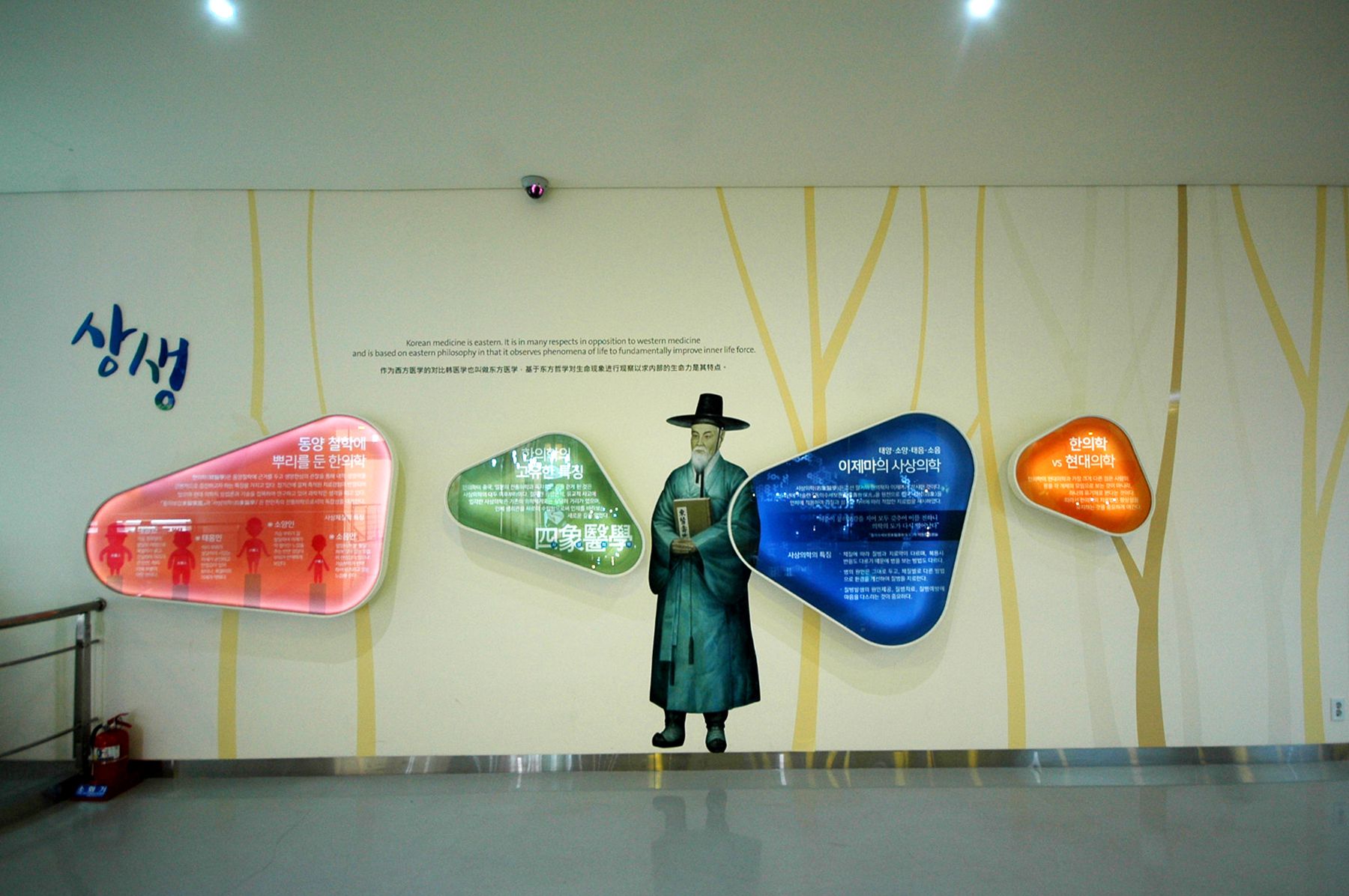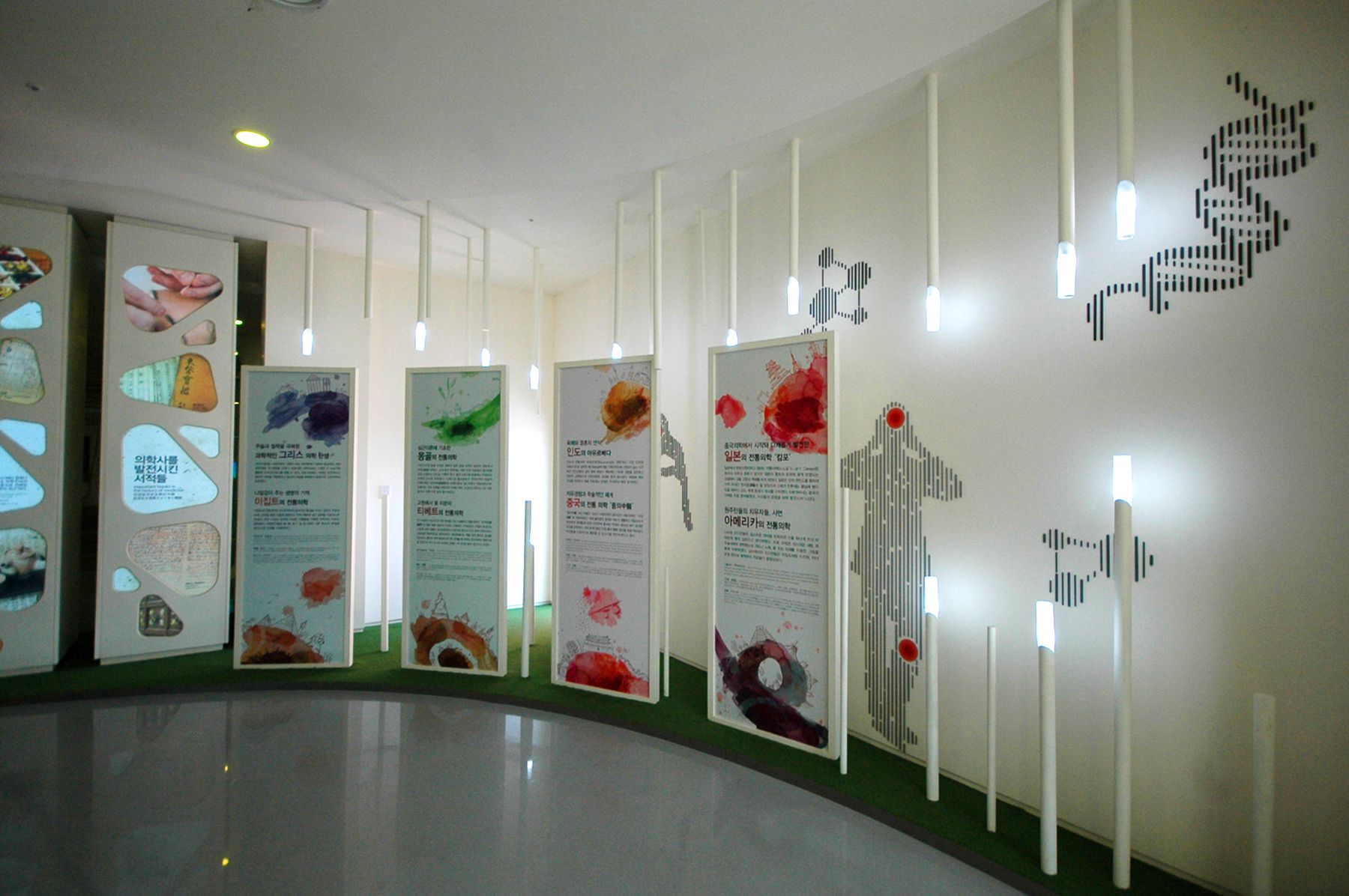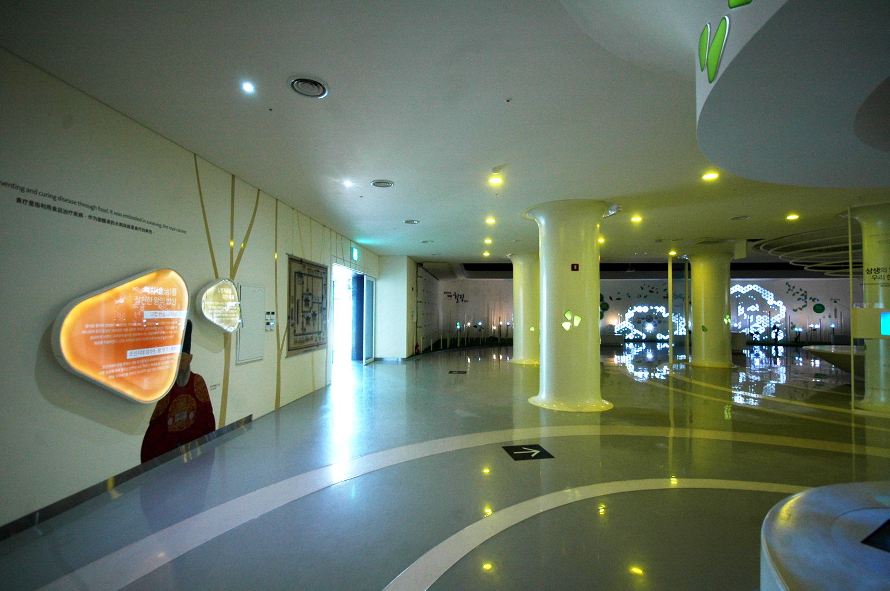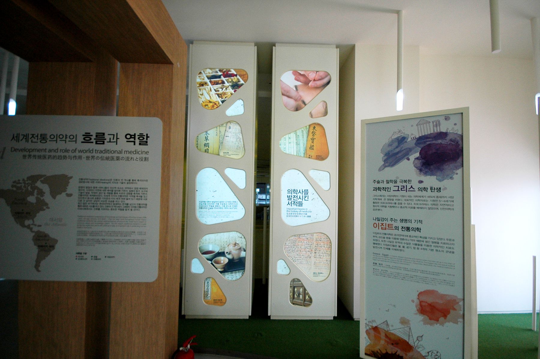 웰컴센터에는 한의약과 동서전통의약의 상징조형물과 패널이 전시되어 있습니다.
