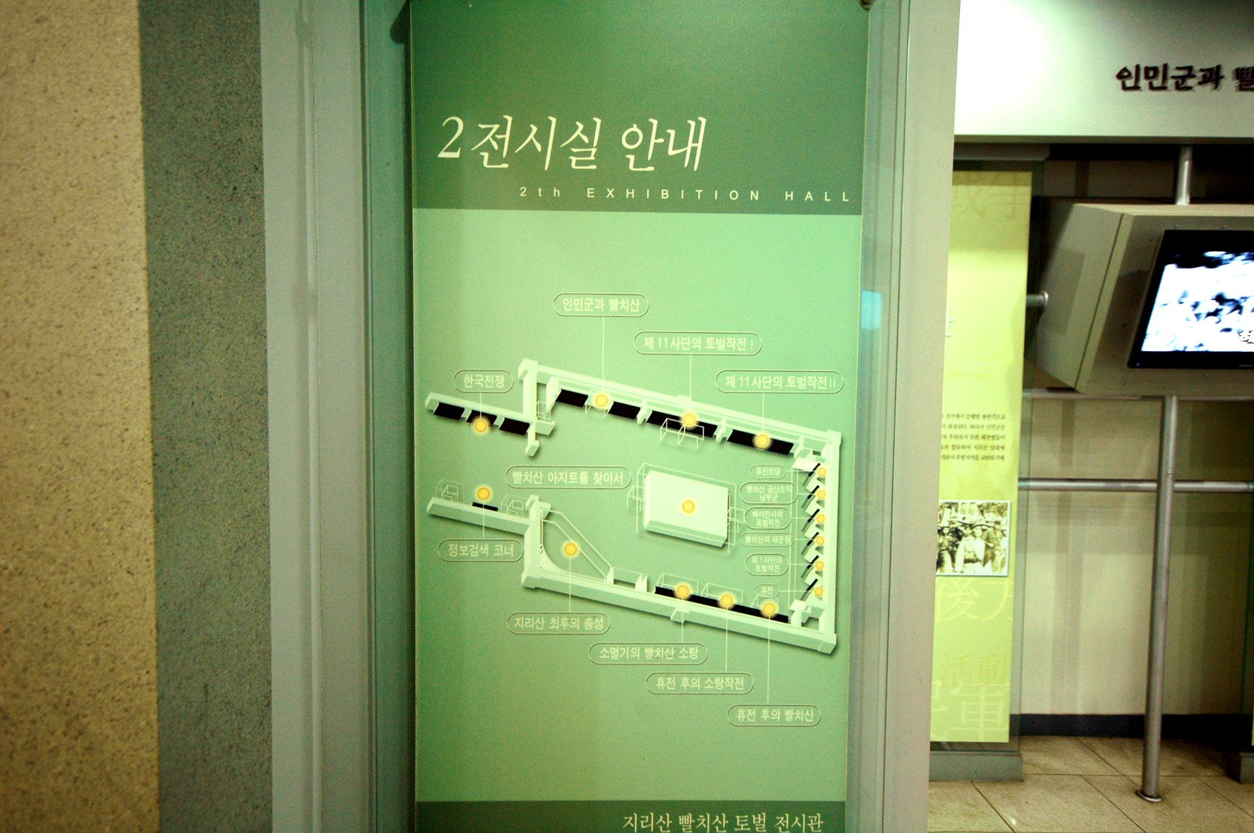 역사2실에서는 빨치산에 관련된 다큐멘터리와 빨치산과 군경 토벌대가 사용한 화폐, 총기류, 의복, 공민증 등을 관람할 수 있습니다.