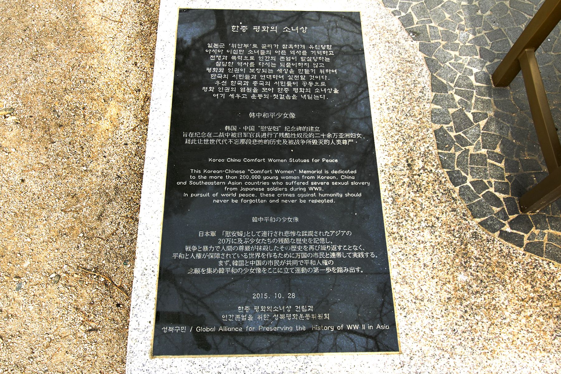 지난해 2015년 10월28일 일제의 억압과 만행 그로 인한 고통의 기억을 함께 나누기 위해 세워졌다고 합니다.
