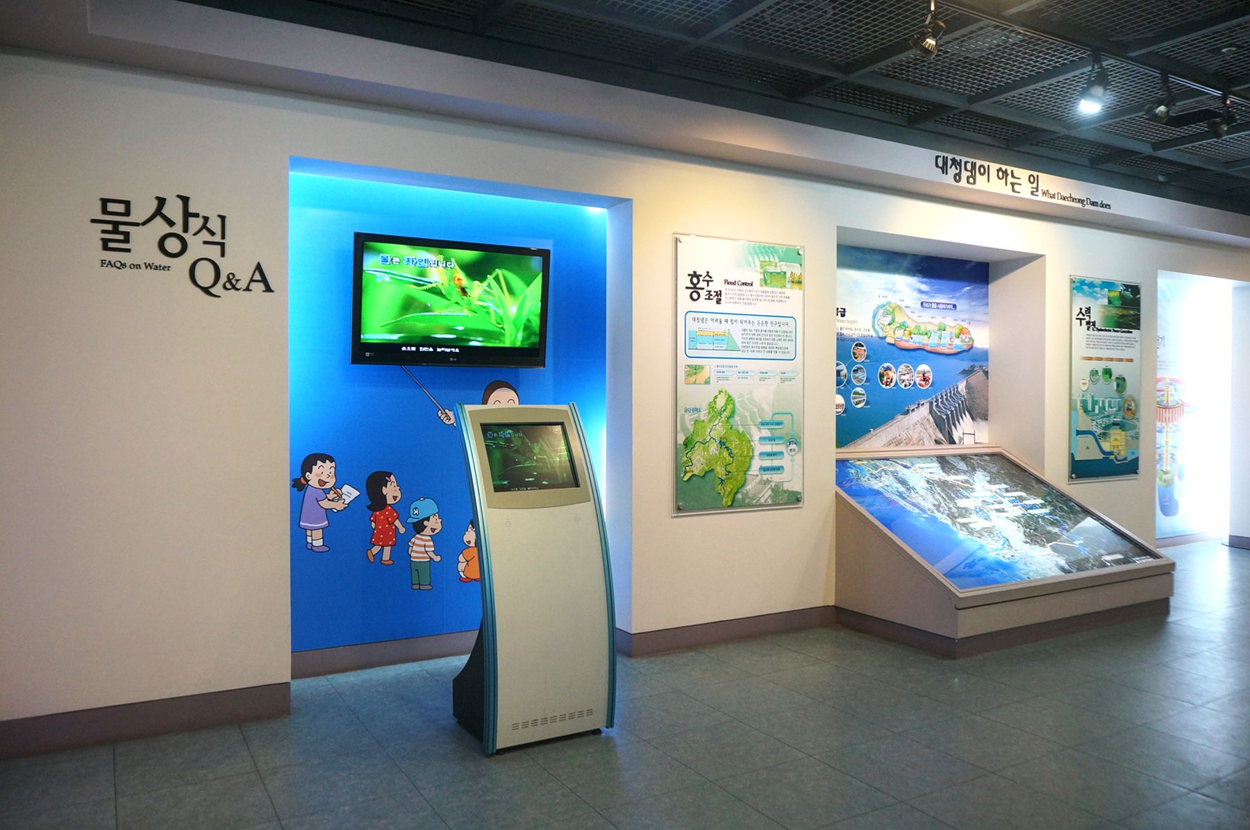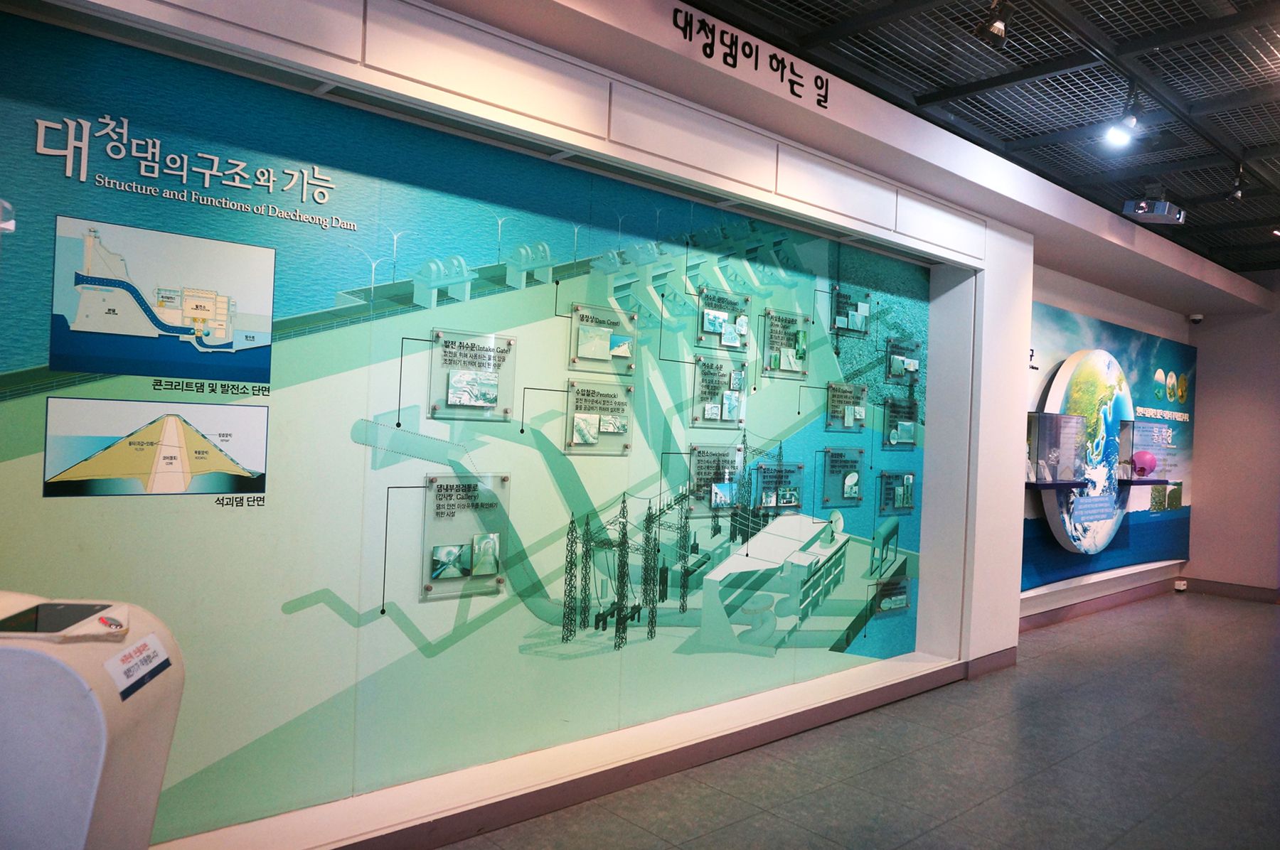 1전시관에서는 대청댐의 역할과 기능을 전시판넬의 설명으로 자세히 알아볼 수 있으며