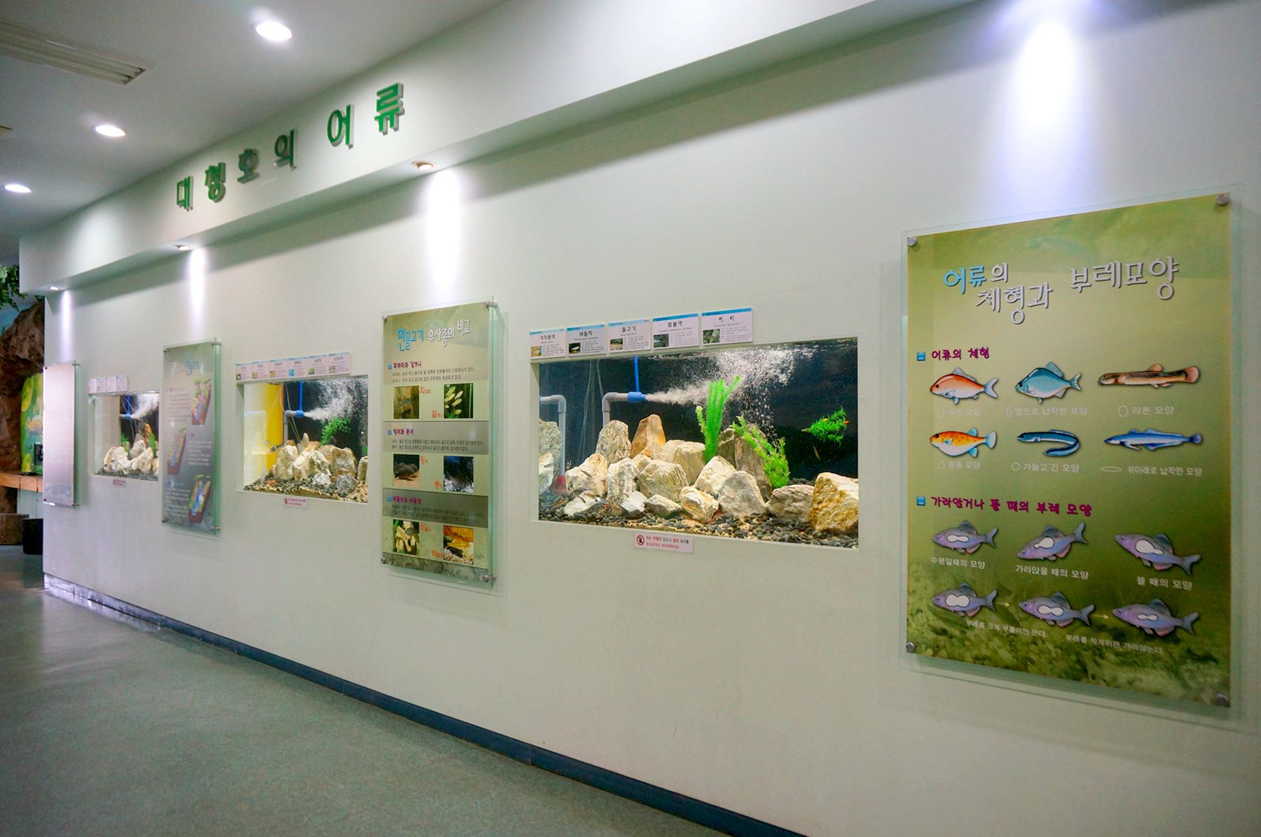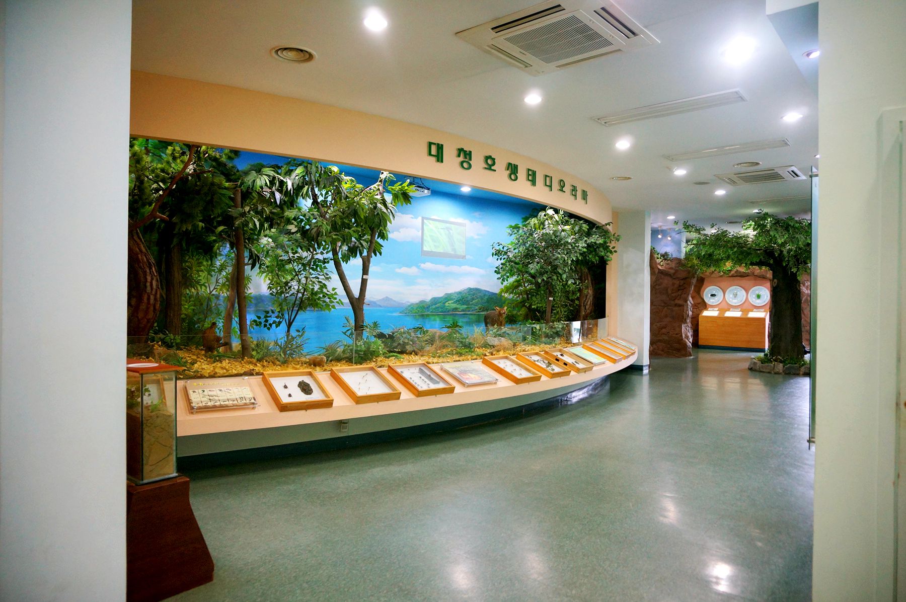 대청호 주변에 서식하는 어류, 조류, 곤충, 식물의 자연생태에 관한 자료를 전시하고 있는 생태관은