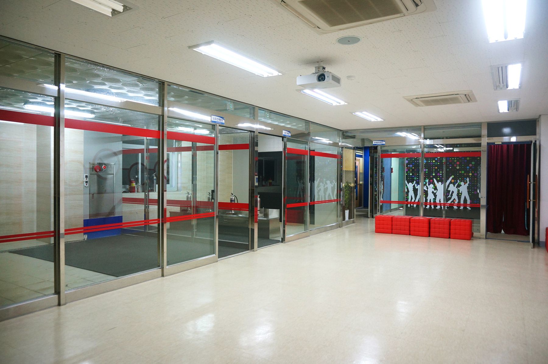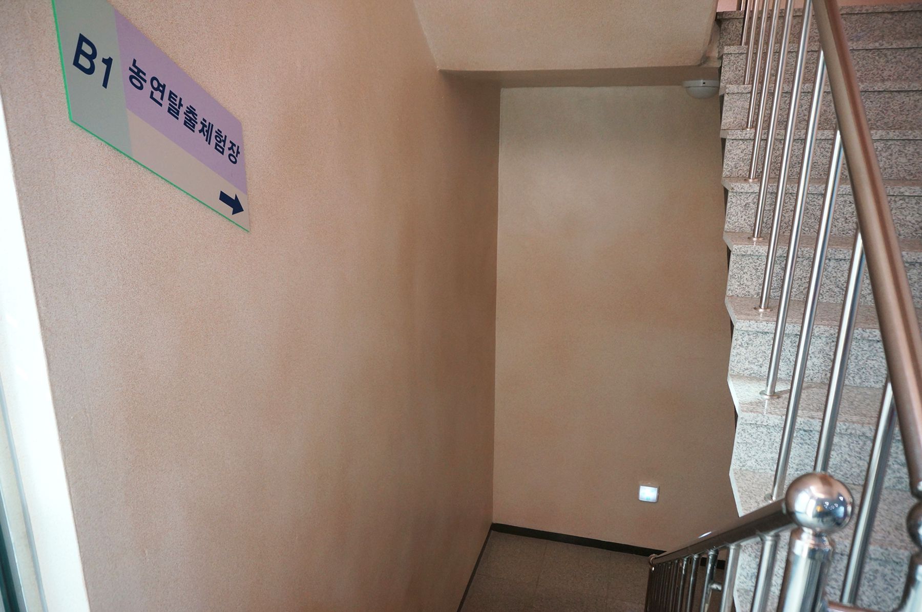 노래방에서 비상벨이 울리면 탈출하는 체험으로 연기에 질식되는 것을 방지하기 위해