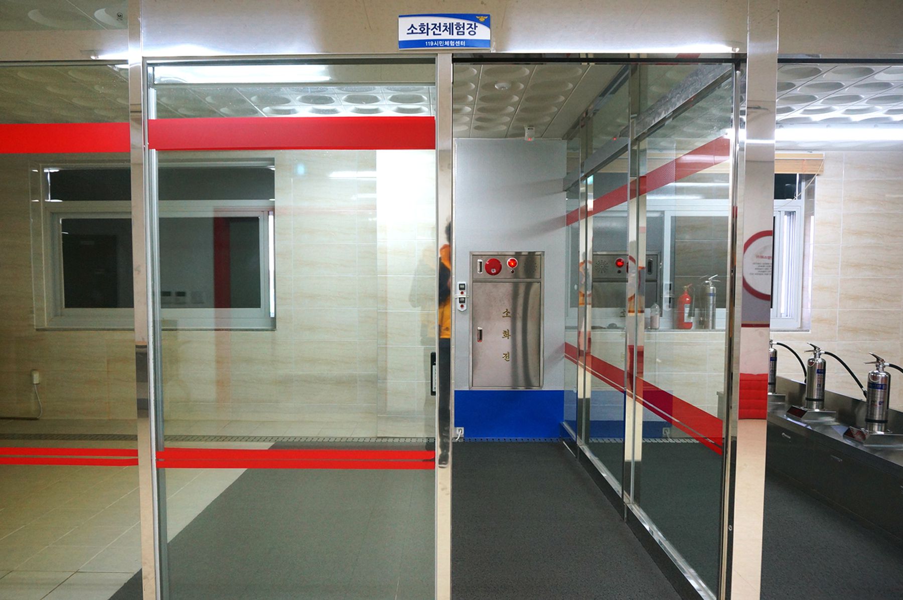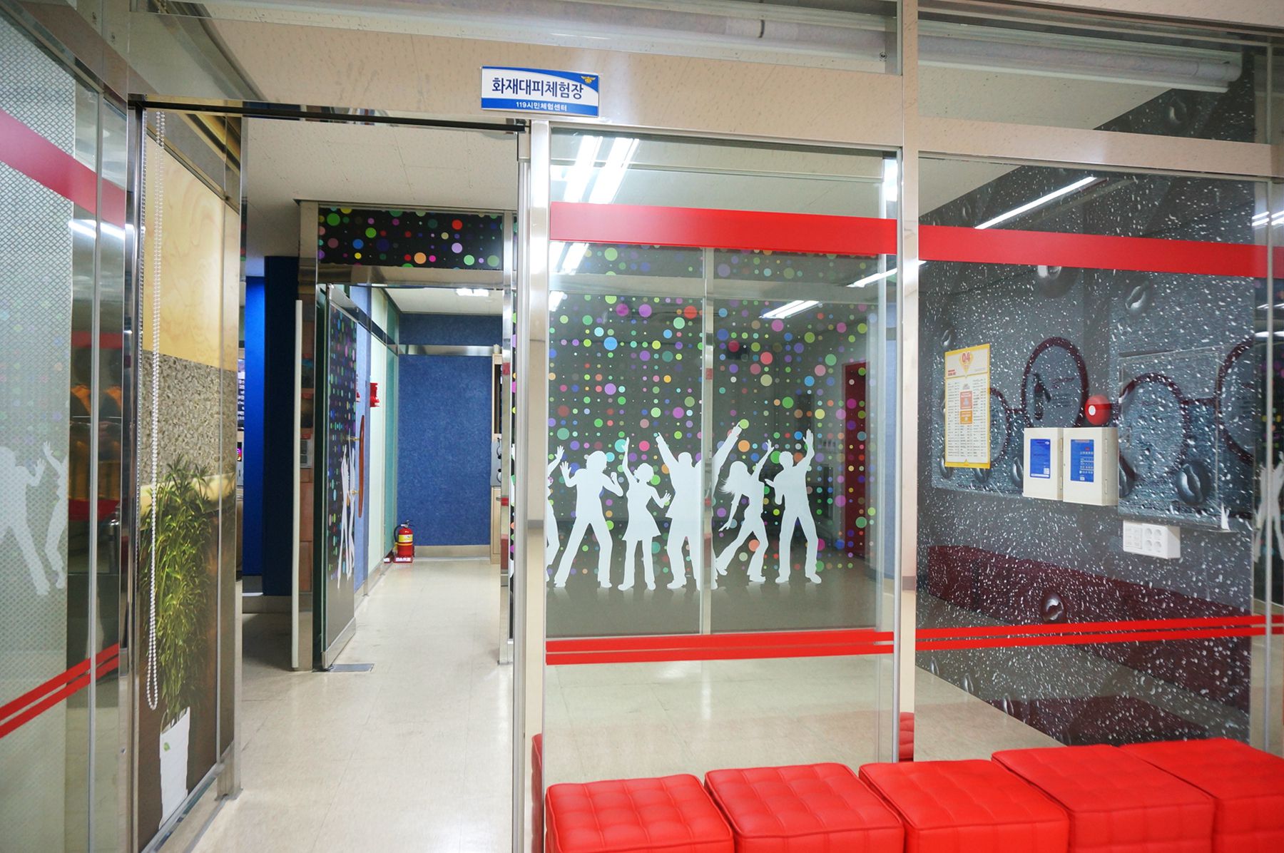 화재대피 체험장에서는 화재 발생시 대피하는 요령을 체험해 볼 수 있습니다.