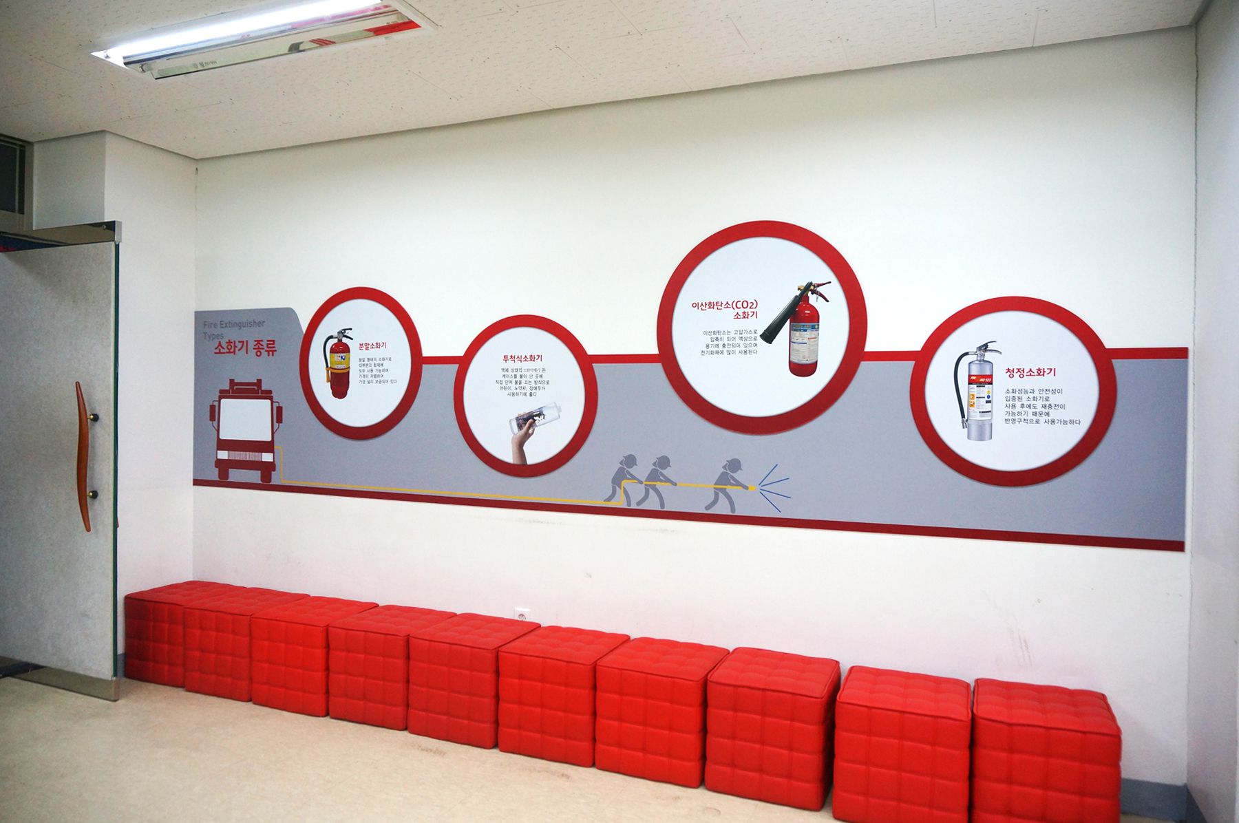 소방전 체험장에서는 소화기의 종류와 특징 그리고 안전하게 불을 끌 수 있는 소화전과 소화기 사용법 등을 배워볼 수 있습니다.