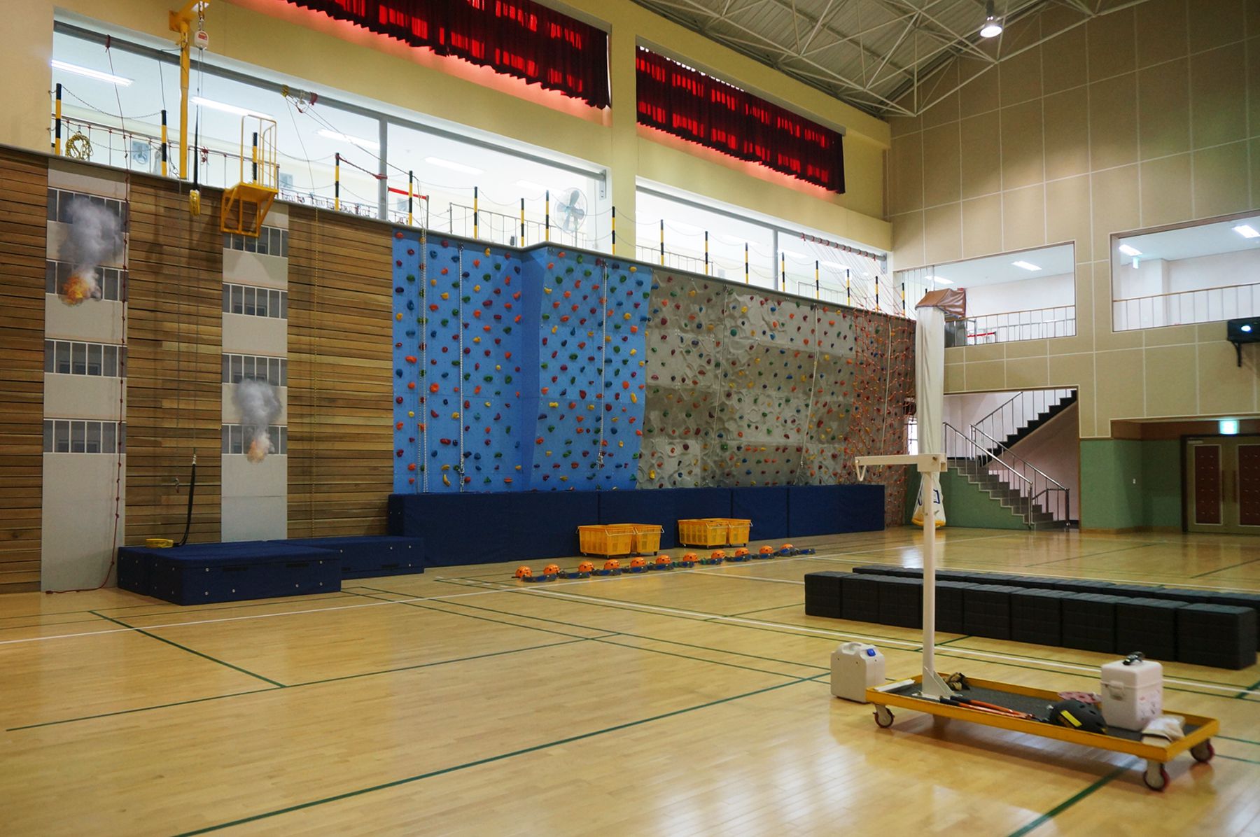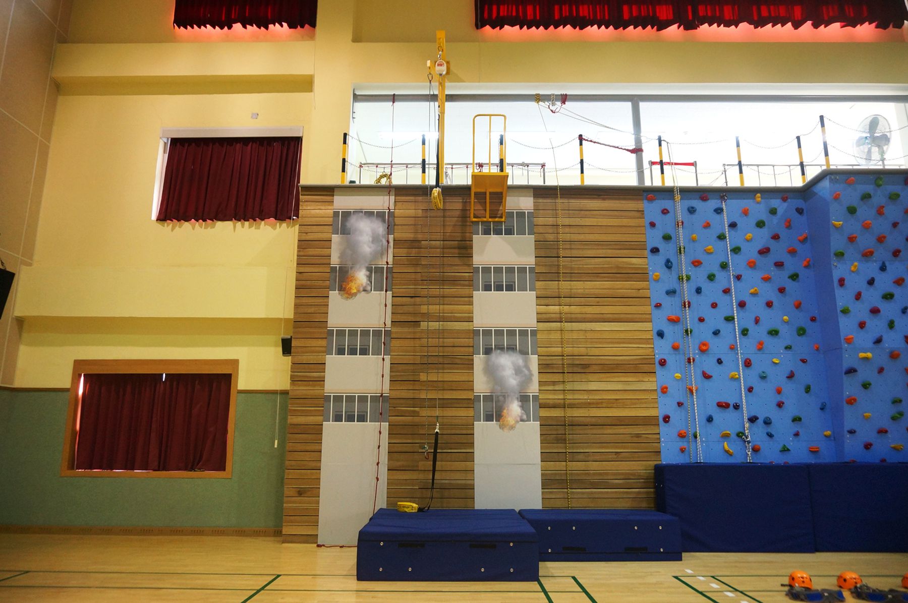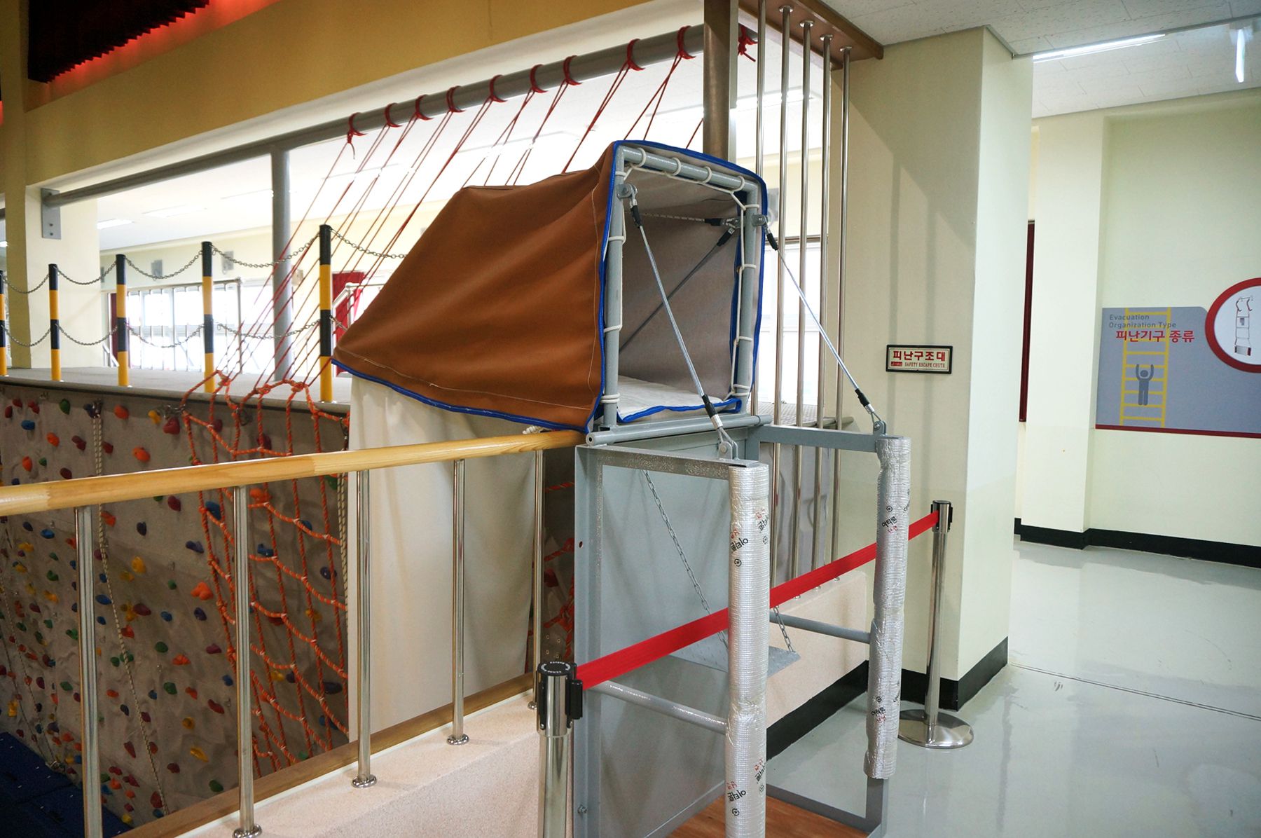 비상탈출체험장에서는 고층 건물에서 불이 났을 때