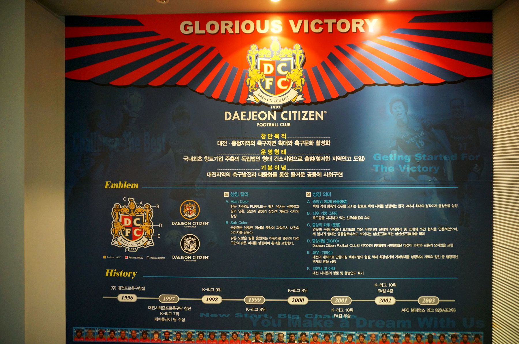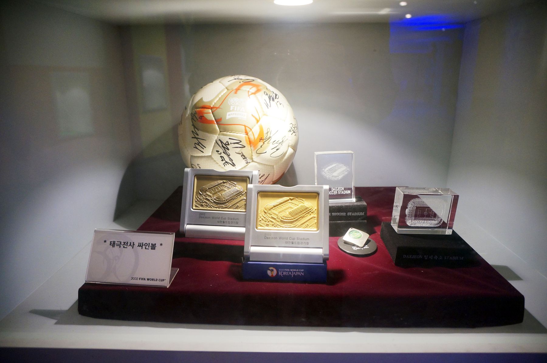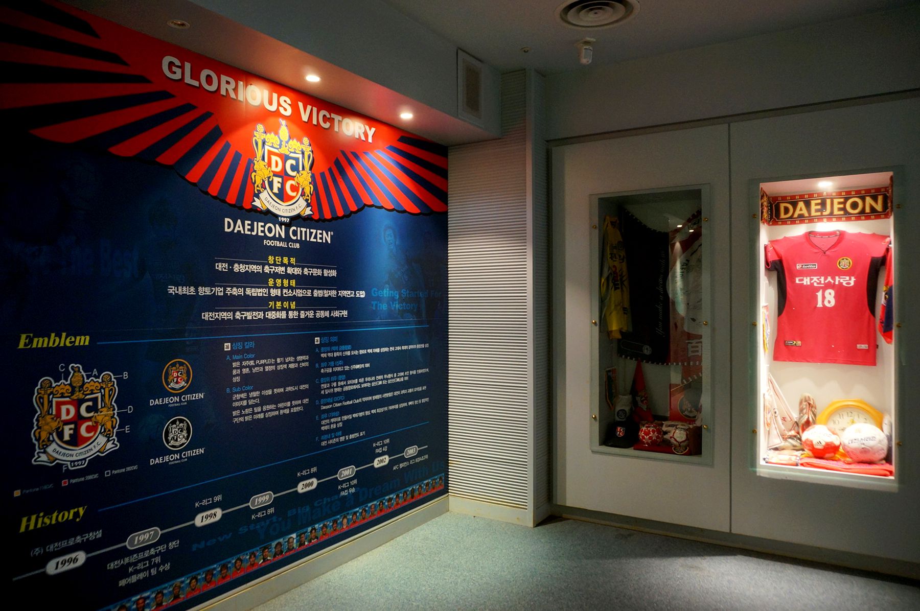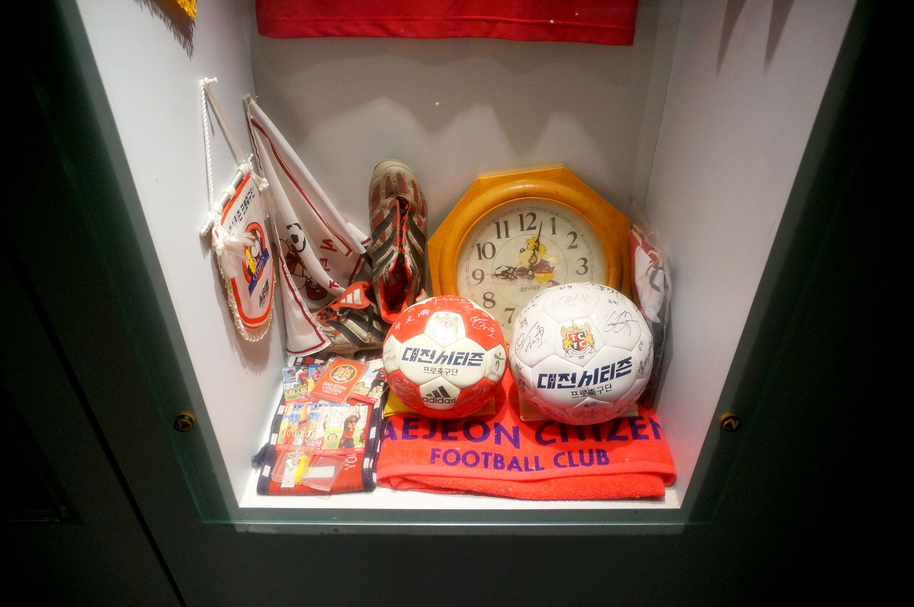 대전축구팀에 대한 소개와 기념품도 전시되어 있습니다.
