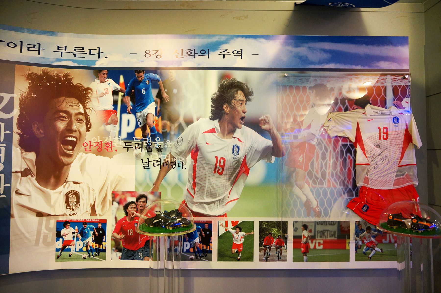 연장전 골든골로 8강 진출을 확정지었던 안정환선수의 반지세레모니 사진도 전시되어 있습니다.