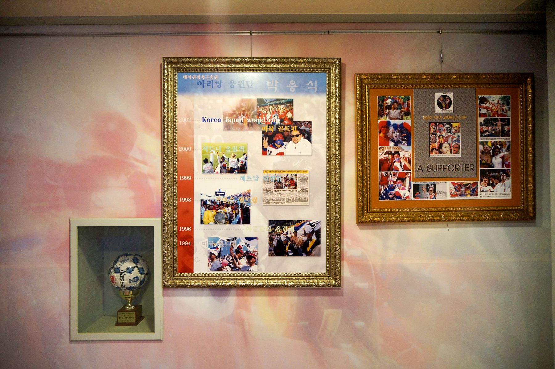 우리나라 선수들의 응원을 위해 해외 원정 응원을 다니는 모습도 전시되어 있는데요,