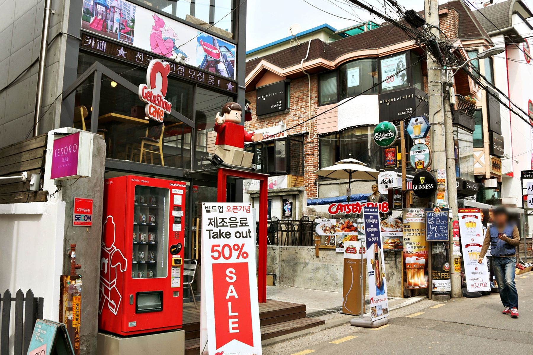 예전부터 자리하고 있던 카페들과 새롭게 생겨난 카페들이 동시에 자리를 잡고 있고