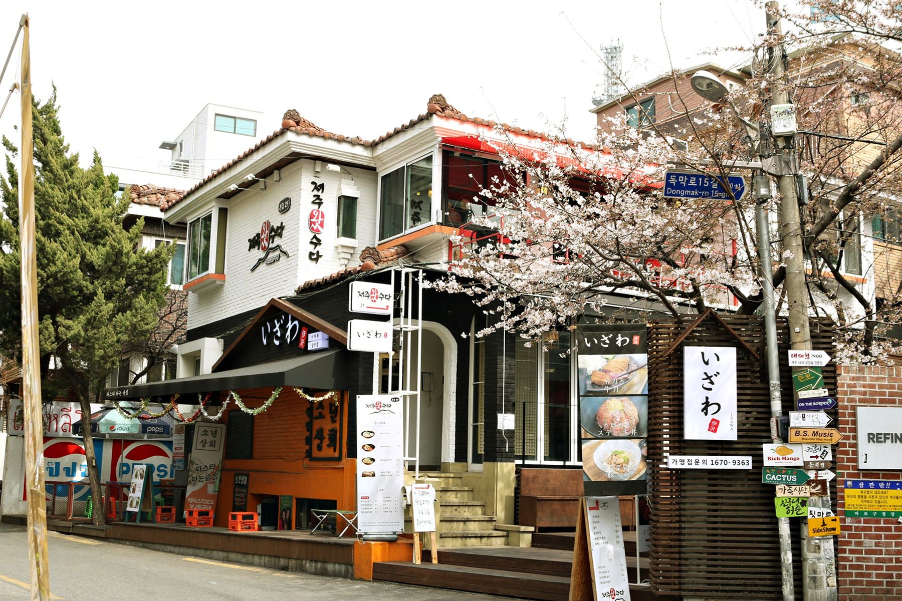홍익출판사, 자음과 모음 등 출판사가 모여있는 곳이기도 하며 조용한 주택가 사이사이에 많은 가게들이 밀집되어 있어