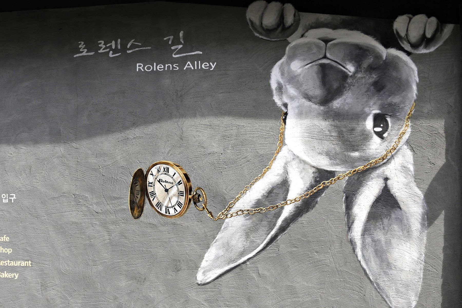 토끼와 시계가 그려진 벽화를 시작으로 로렌스길이 시작됩니다.
