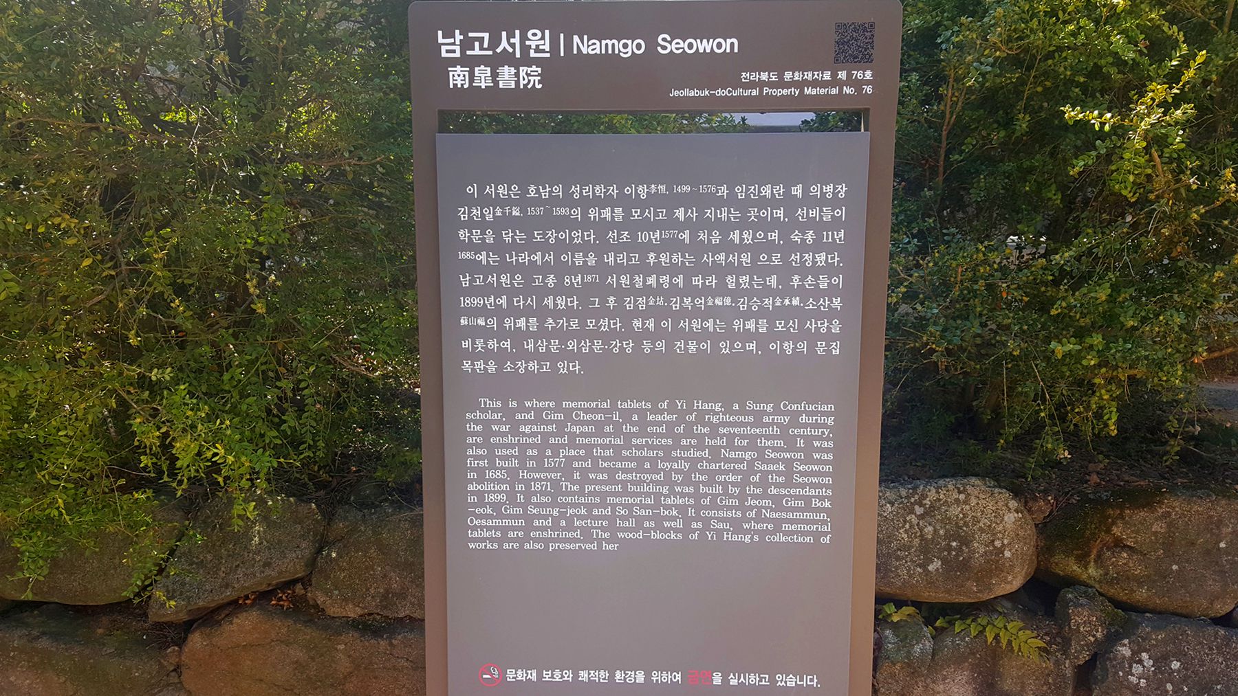 지금의 남고서원은 이항선생이 돌아가신 후, 그의 제자들이 선생의 위패를 모시기 위해 창건한 곳입니다.