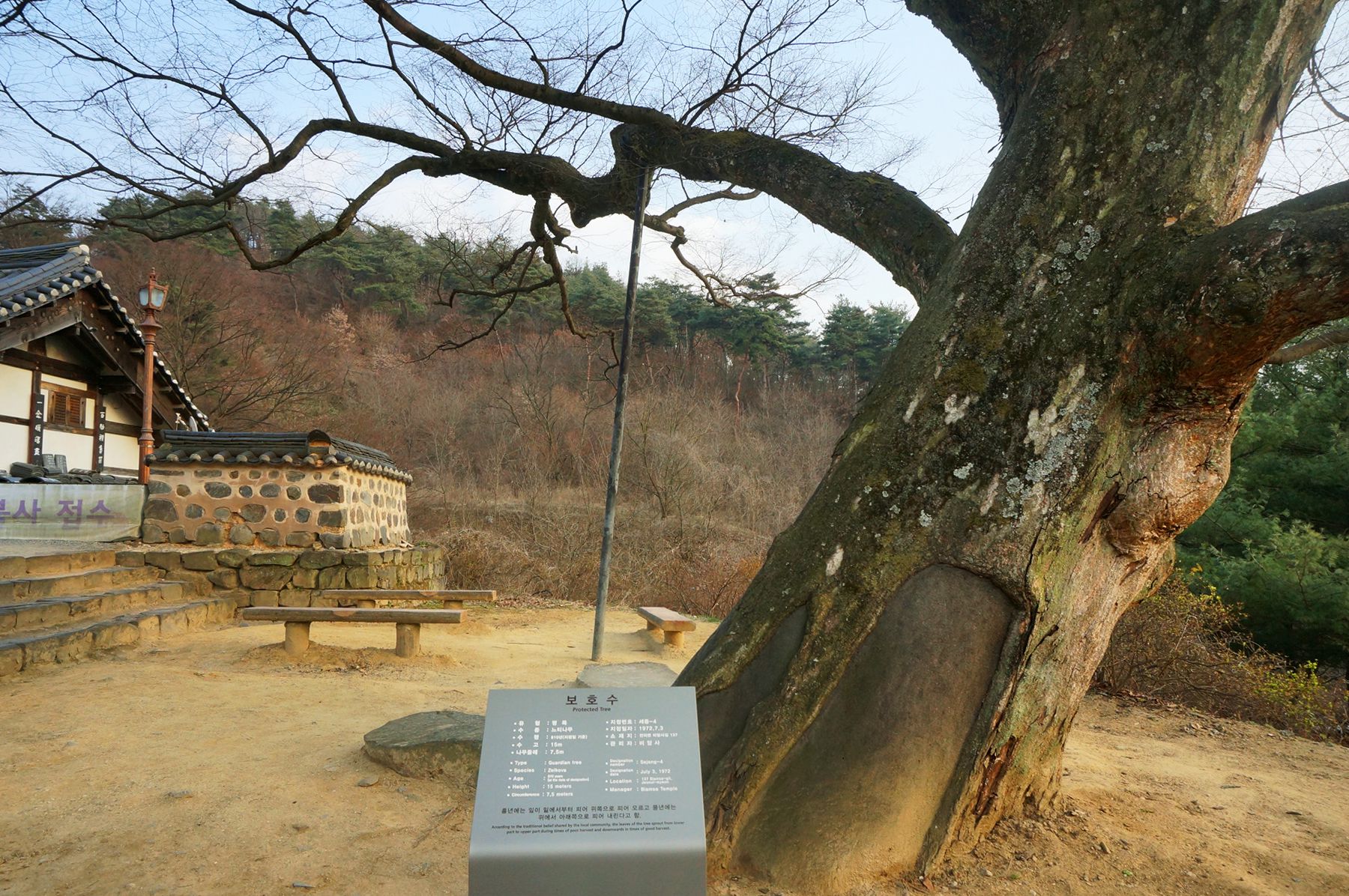 비암사 입구에는 약 800년이 넘는 동안 비암사를 지키고 있는 커다란 보호수 느티나무가 서있습니다.