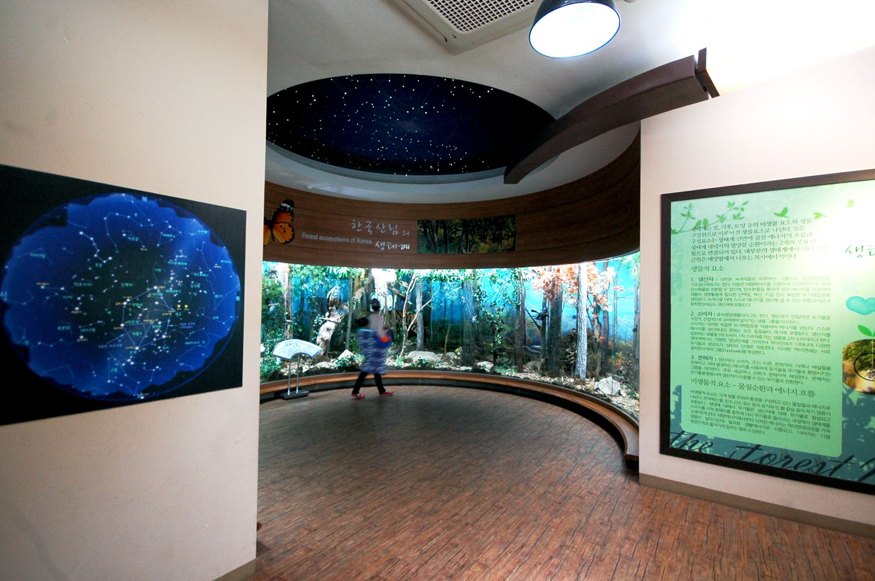 2전시실에서는 생물이 진화되는 과정과 생명의 뿌리, 생태계의 순환에 관련된 숲 속 생태계를 들여다 볼 수 있으며,