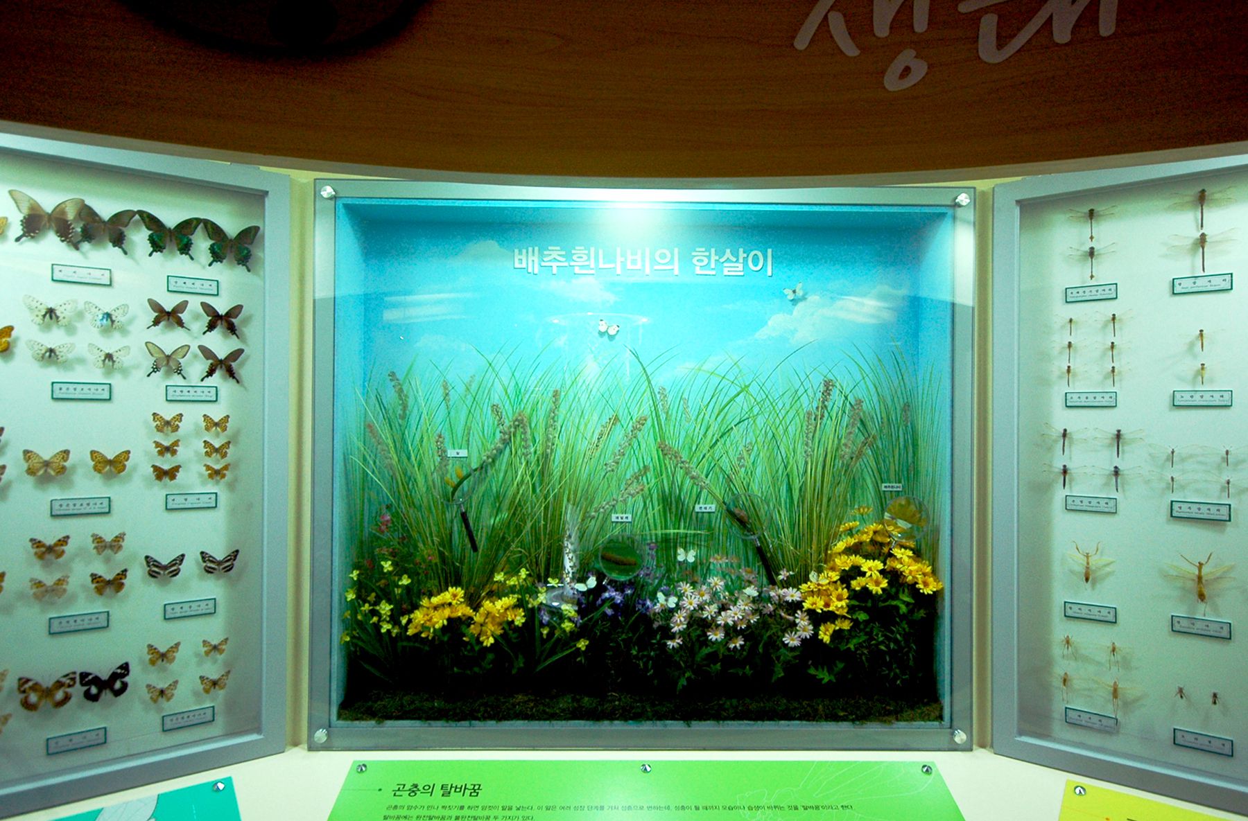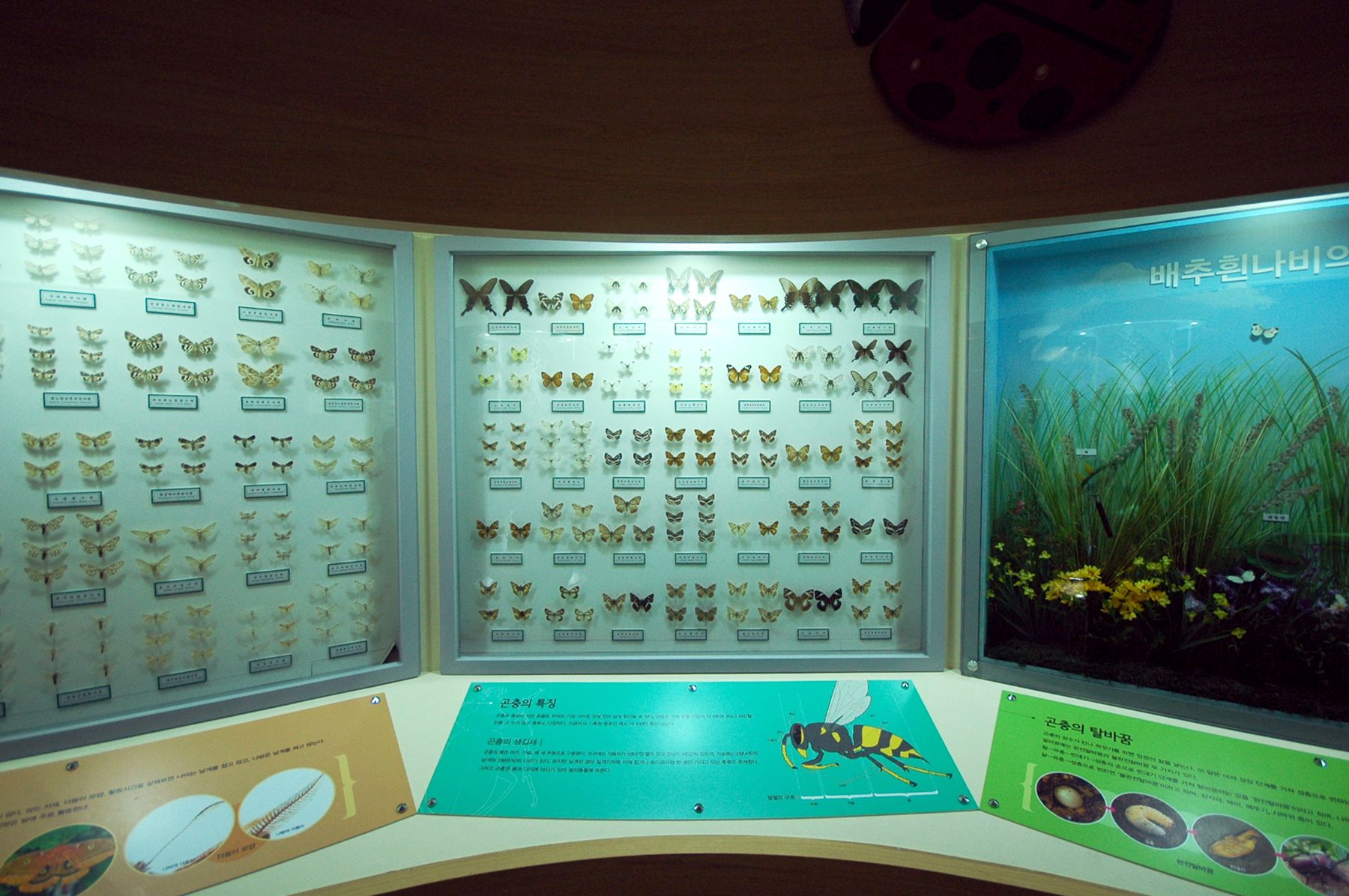 나비, 잠자리, 사마귀, 메뚜기, 방아깨비 등을 그대로 박제하여 전시하고 있어 곤충들의 생김새를 자세히 알아볼 수 있습니다.