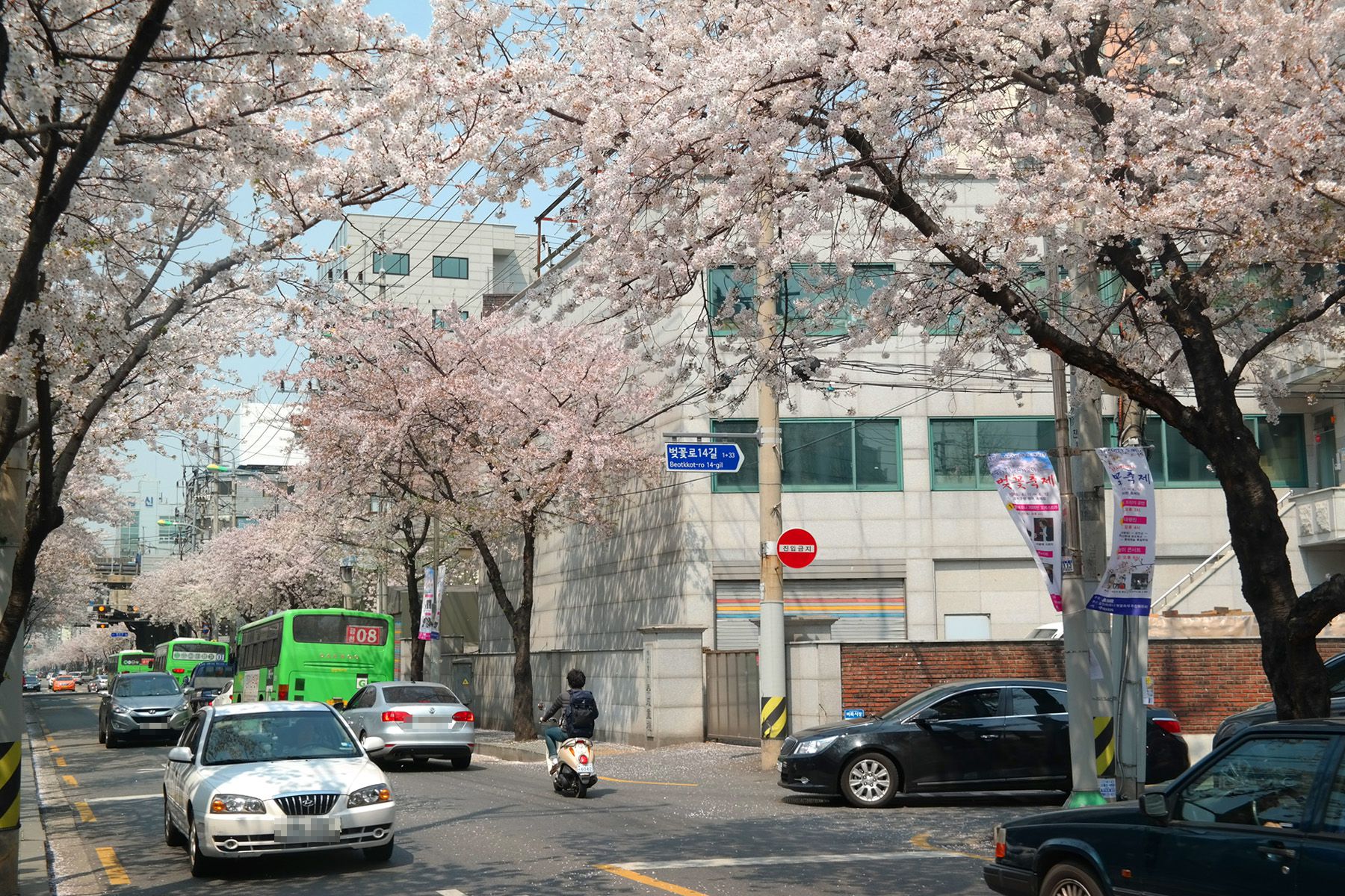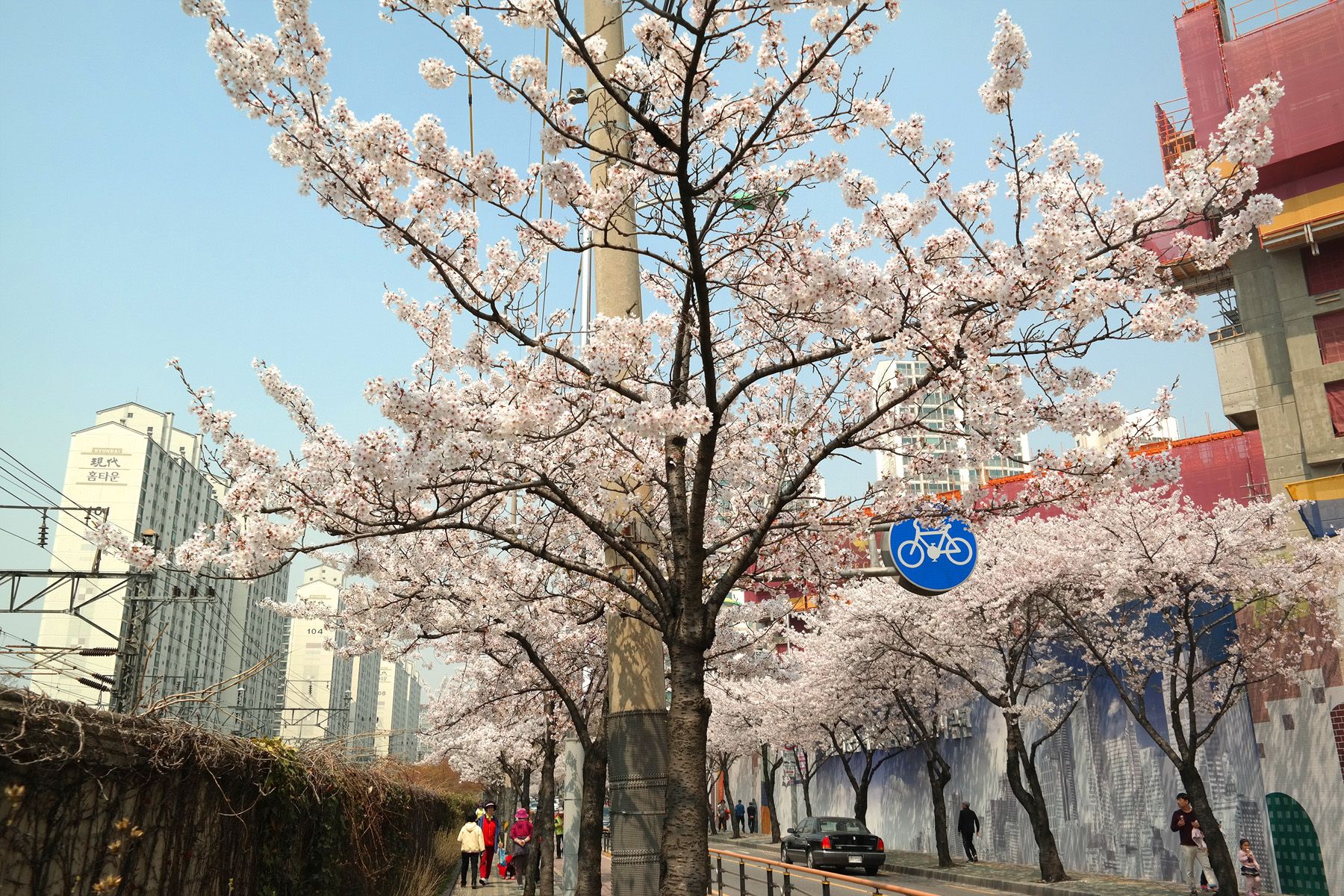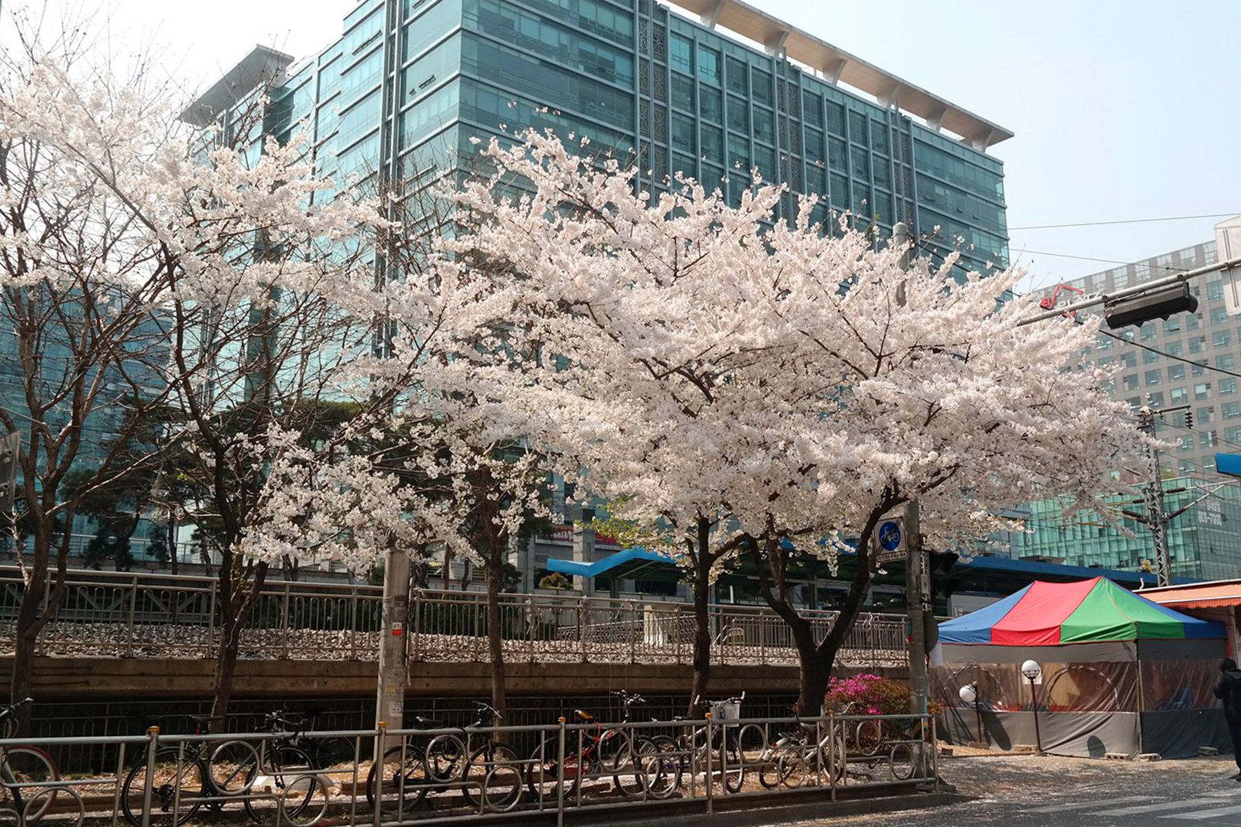 도심의 풍경과 벚꽃이 잘 어우러져 일상에서 꽃놀이를 즐길 수 있는데요,