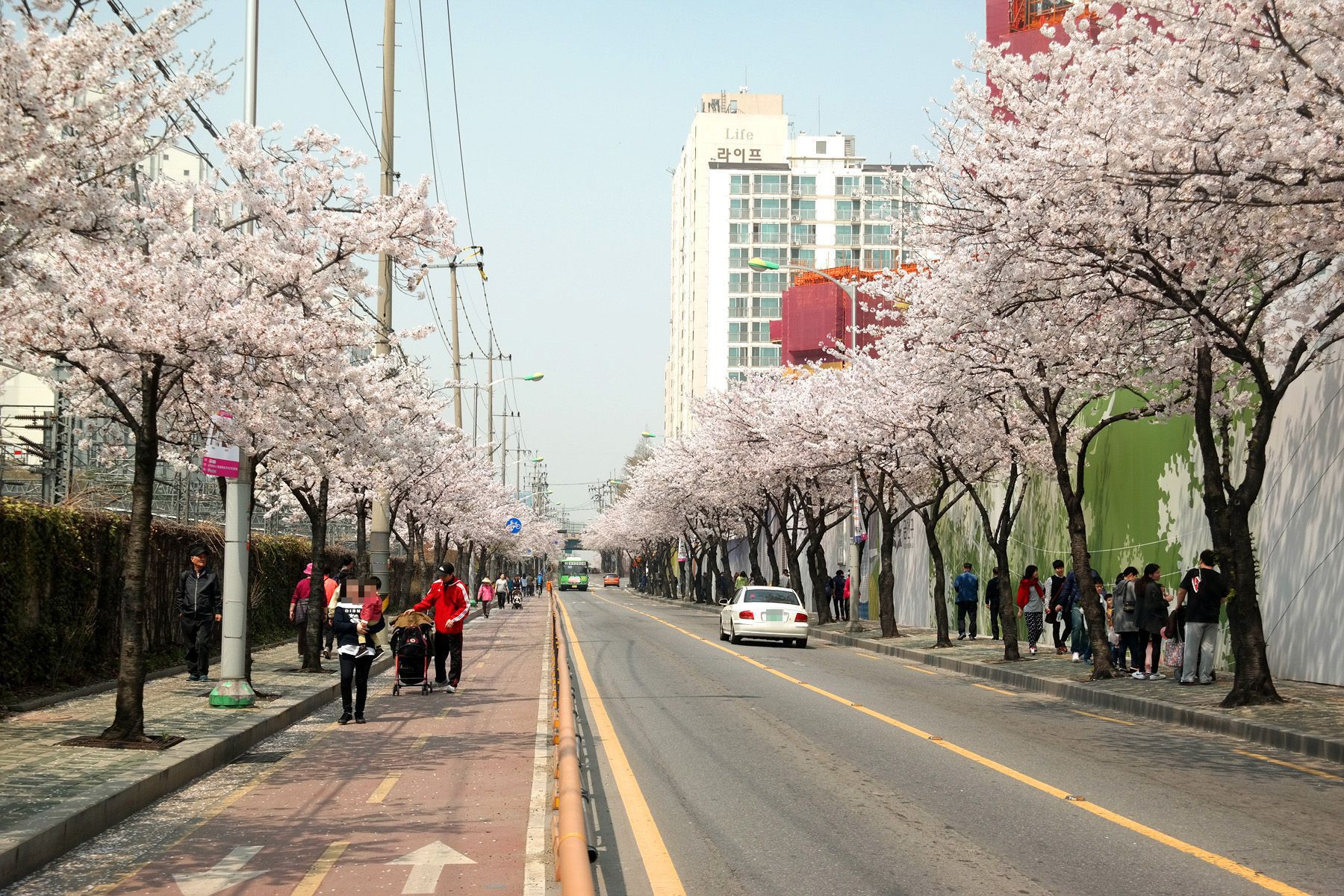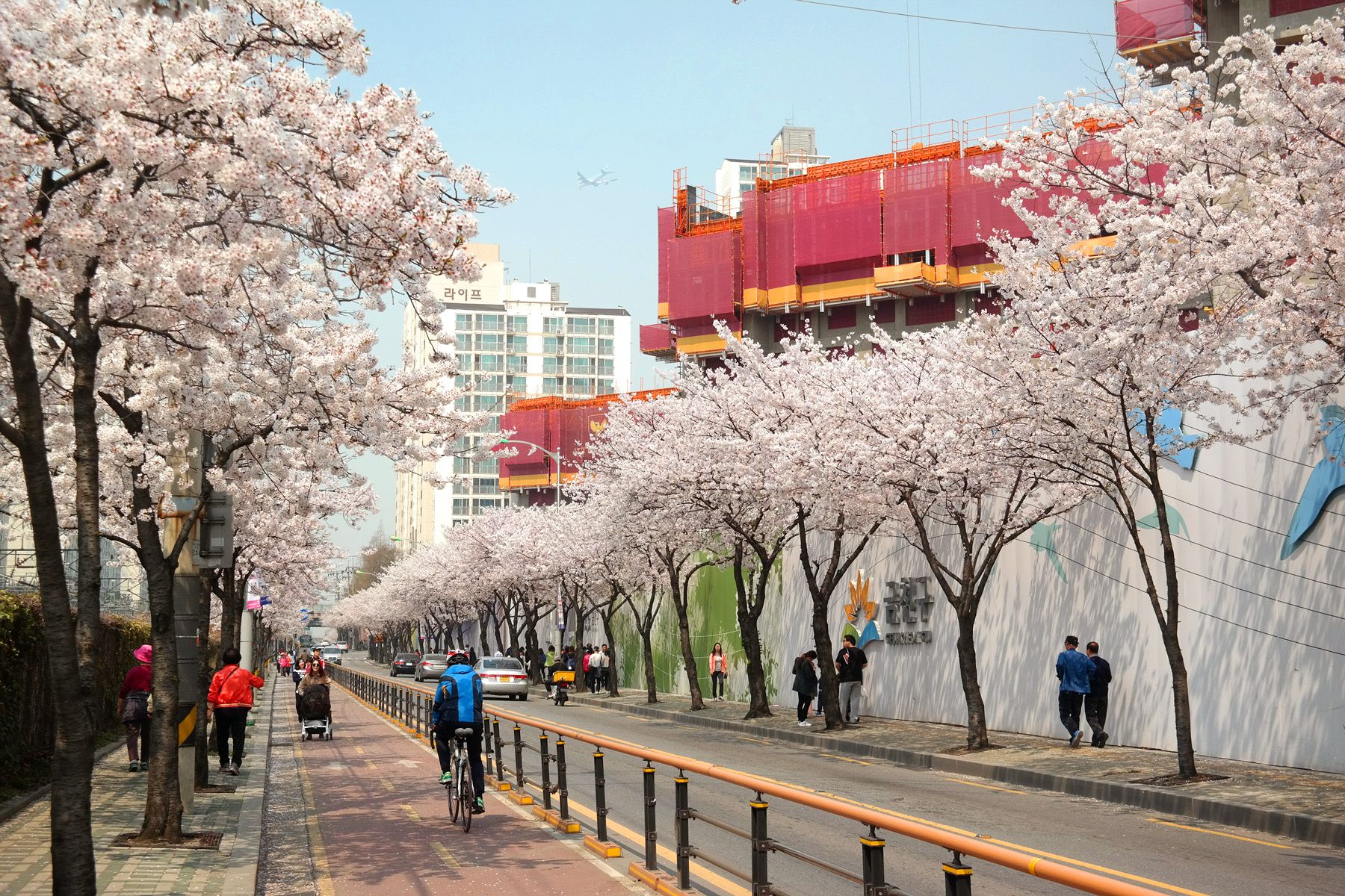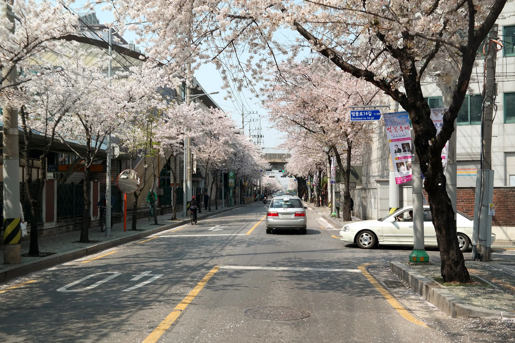 도심의 풍경과 벚꽃이 잘 어우러져 일상에서 꽃놀이를 즐길 수 있는데요,