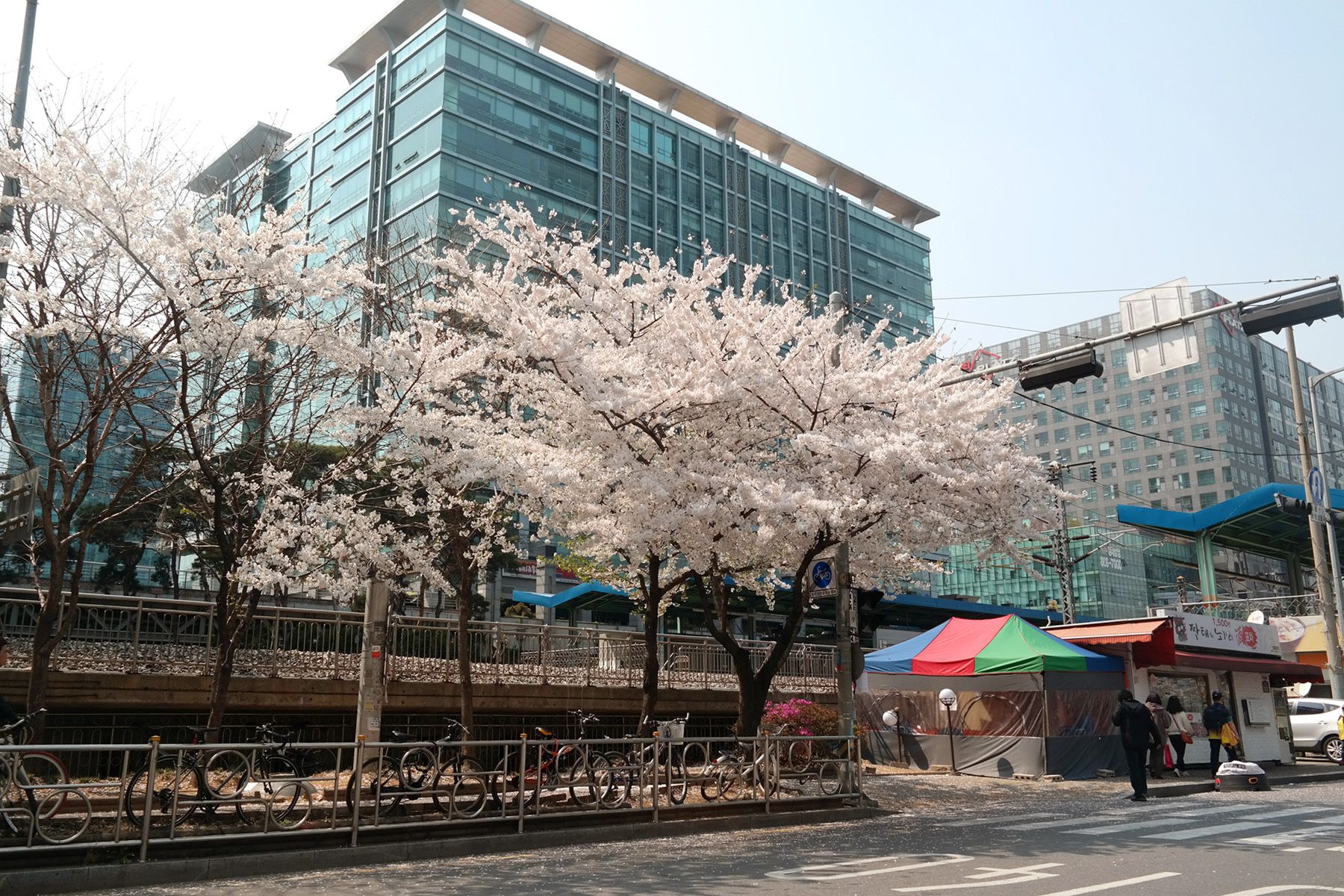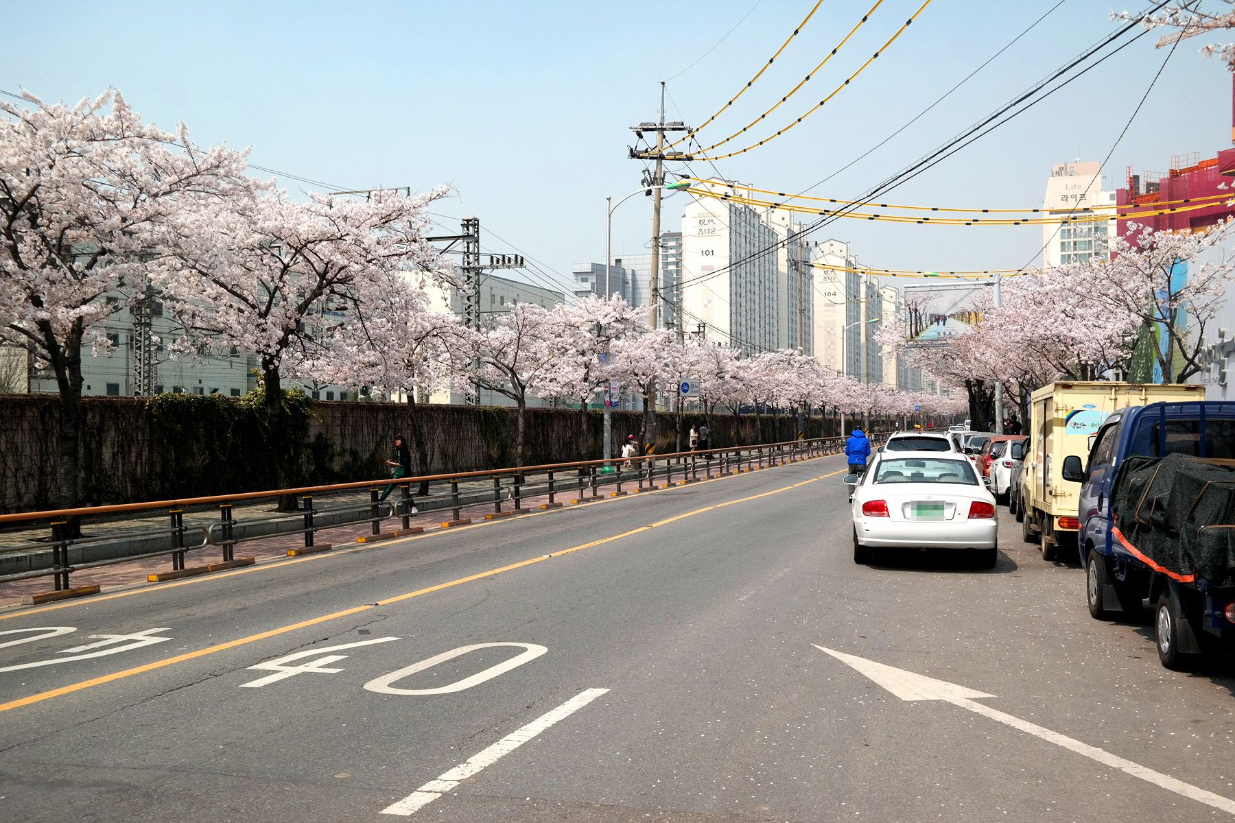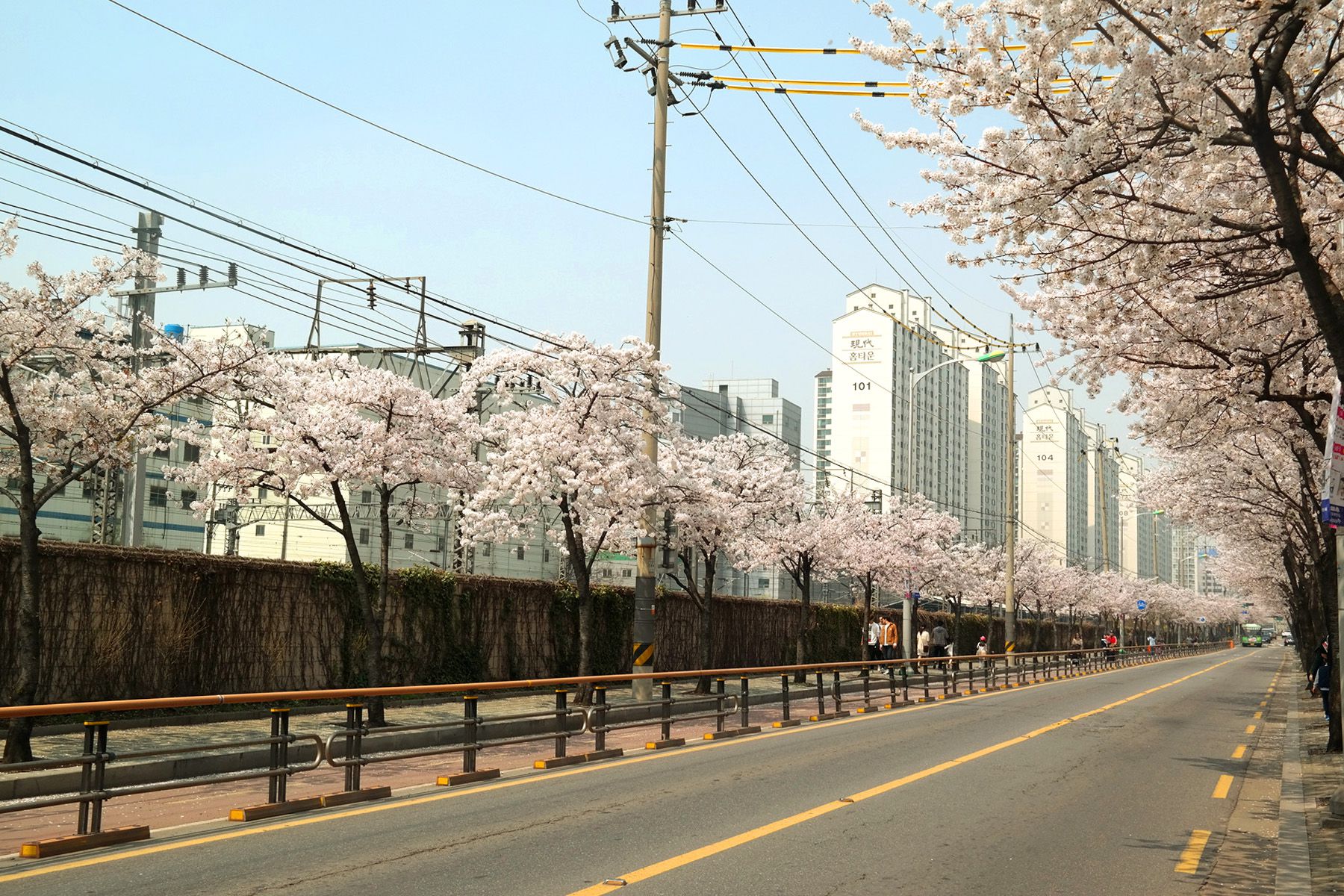 가산디지털단지~금천구청역까지 이어지는 3.1km의 벚꽃길은 출퇴근하는 시민들의 마음을 설레게합니다.