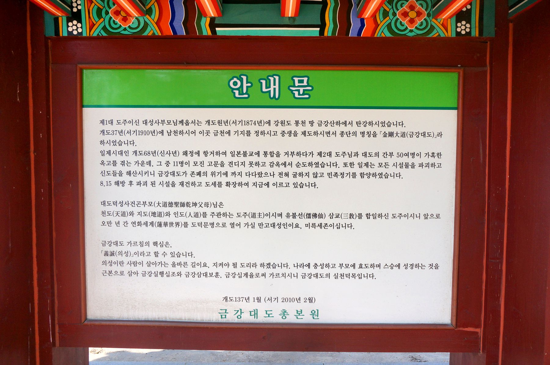 일제 강점기에 독립의 희망을 주창한 우리의 민족종교인 금강대도에서 의미있는 시간을 가져보시기 바랍니다.