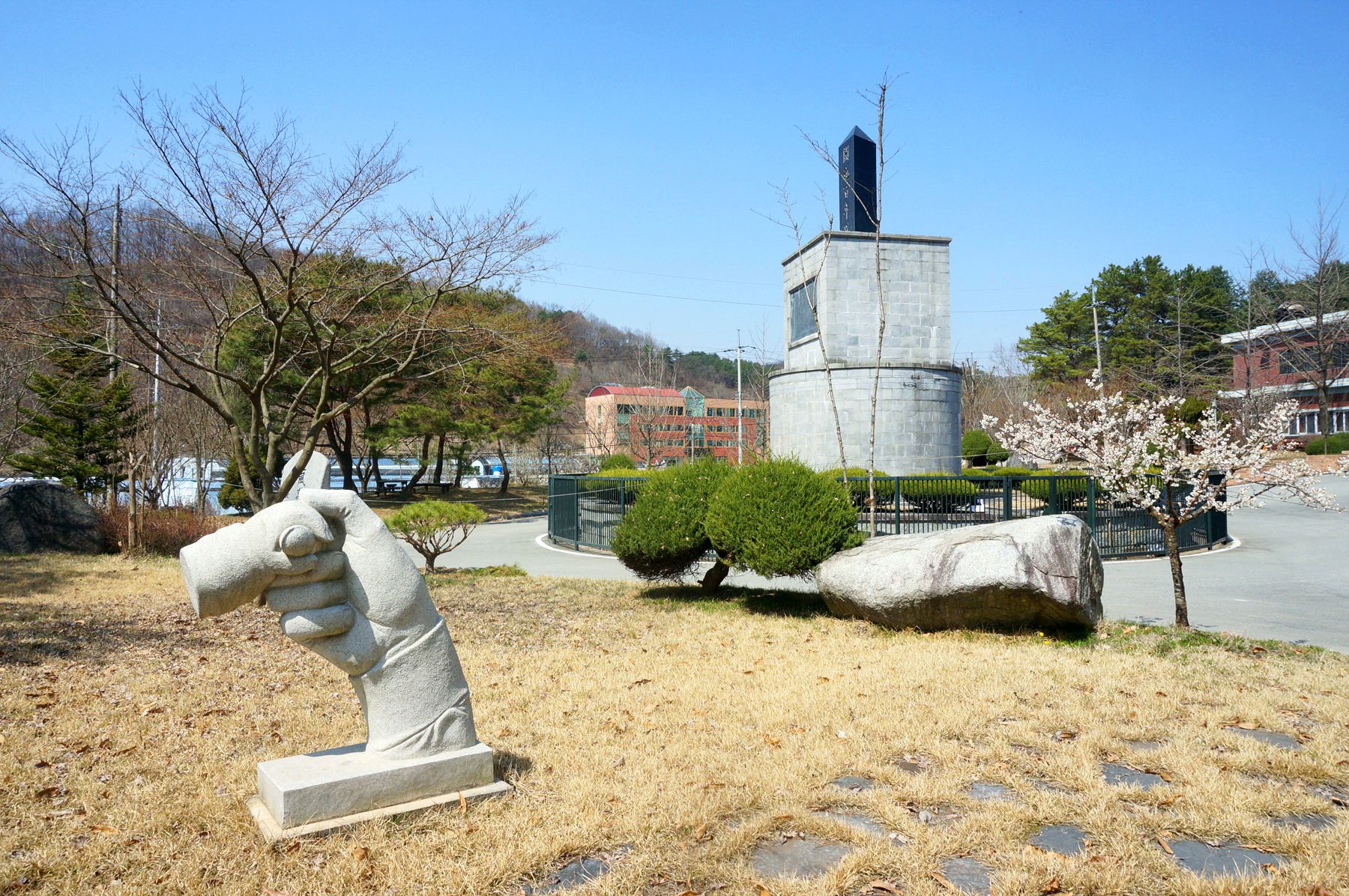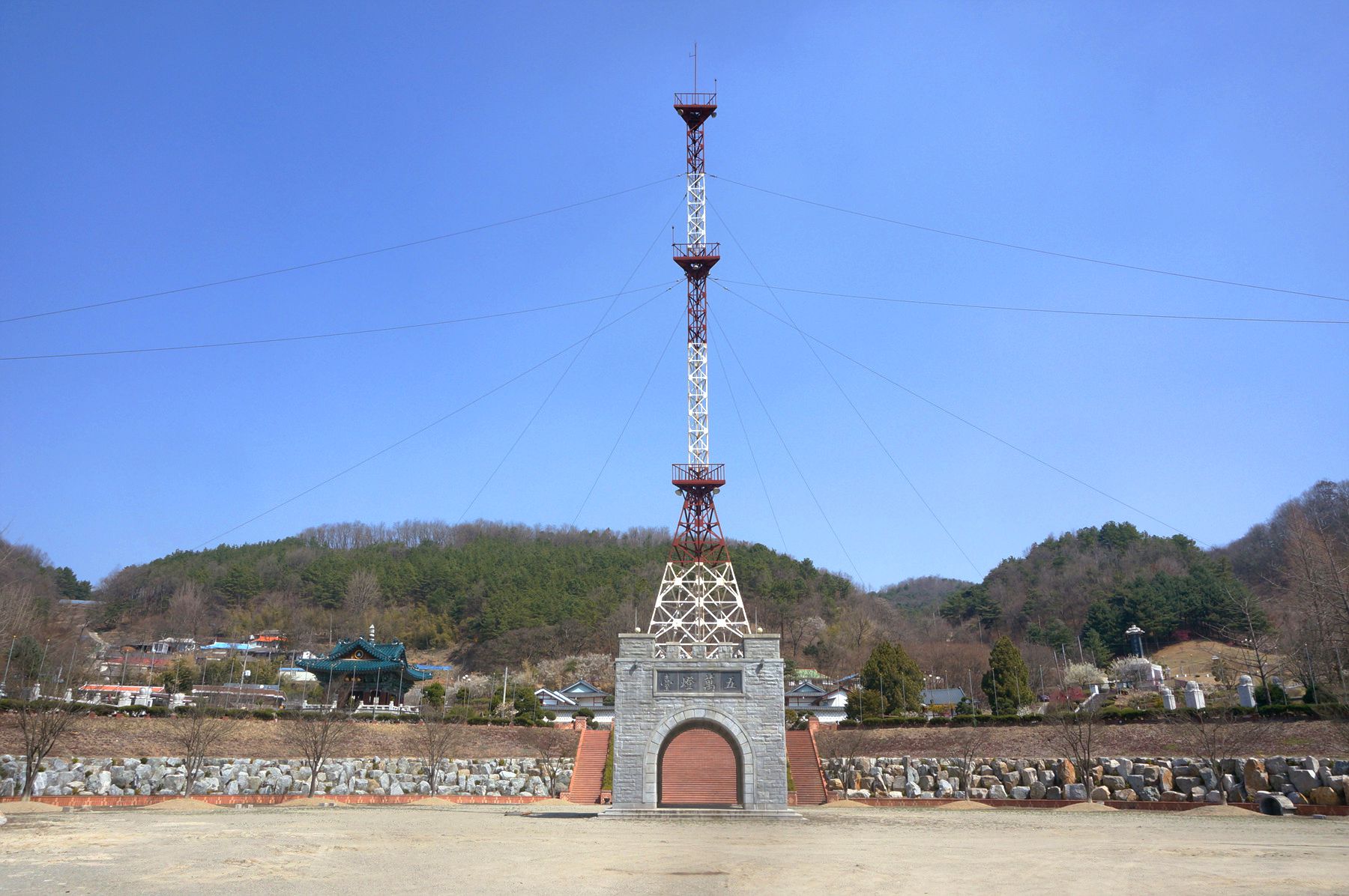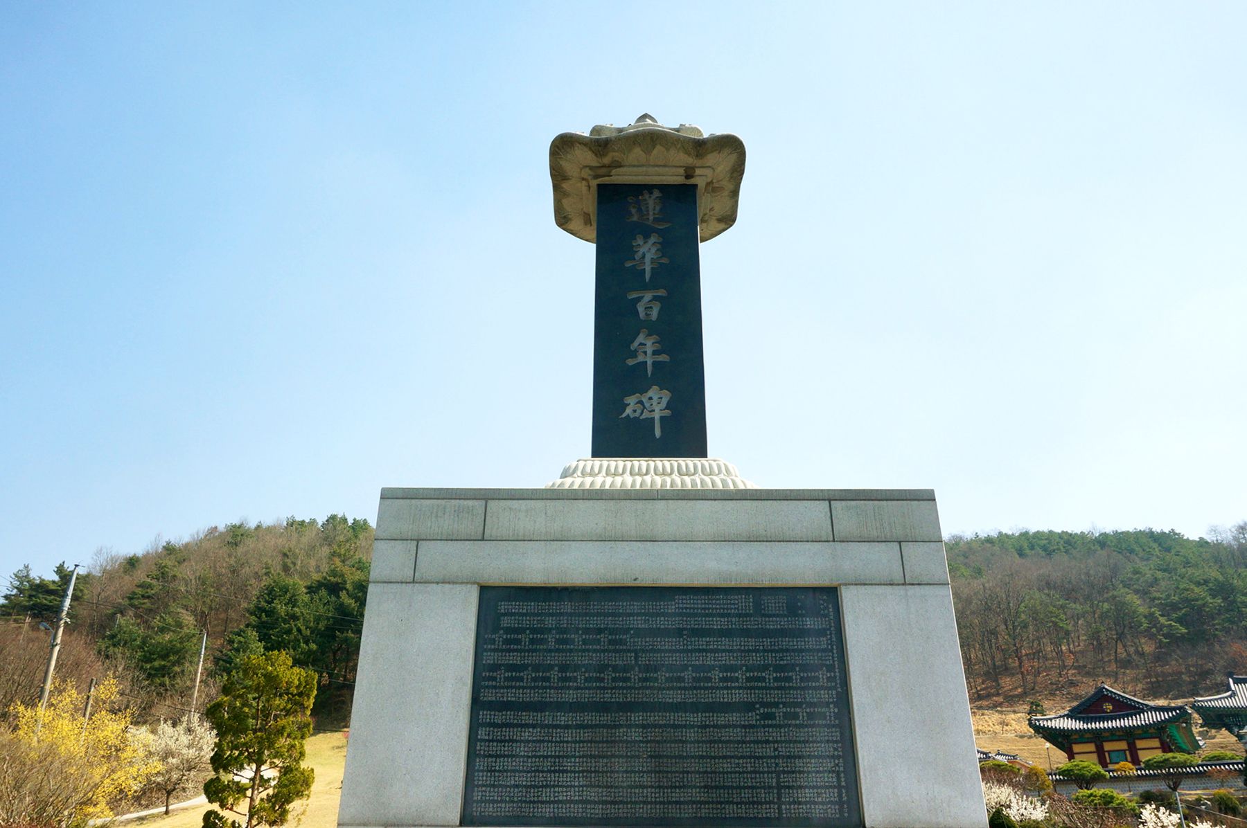 개도 100년 기념성역 사업으로 조성한 광장에 오만 년 동안 중생의 길을 밝힌다는 상징으로 세워졌습니다.