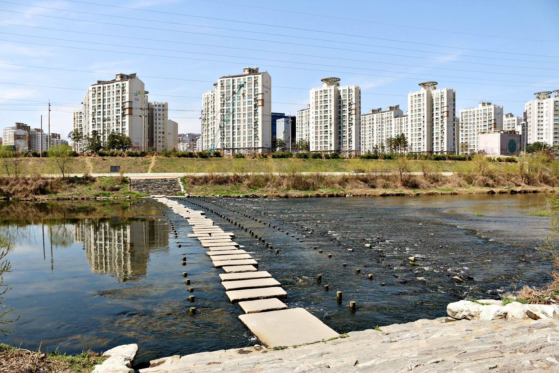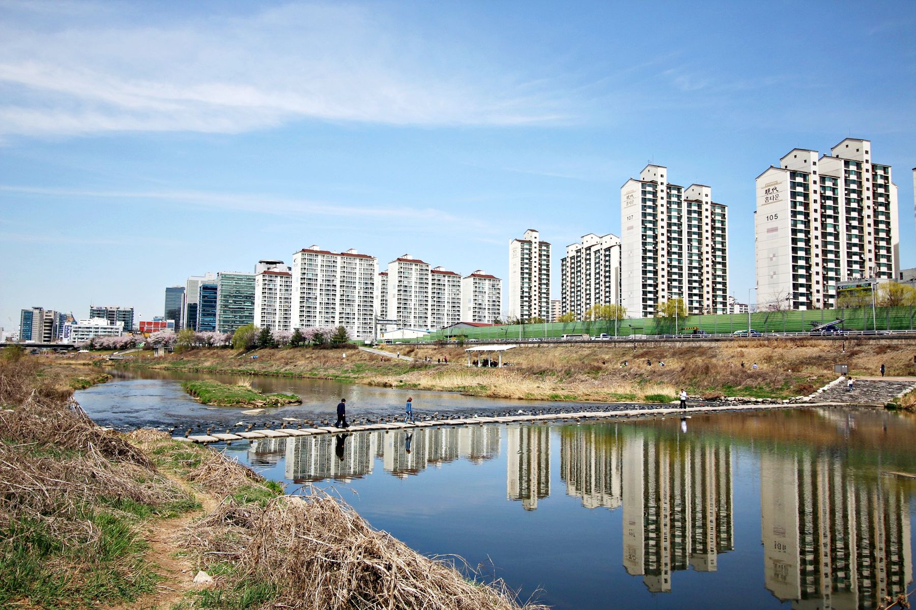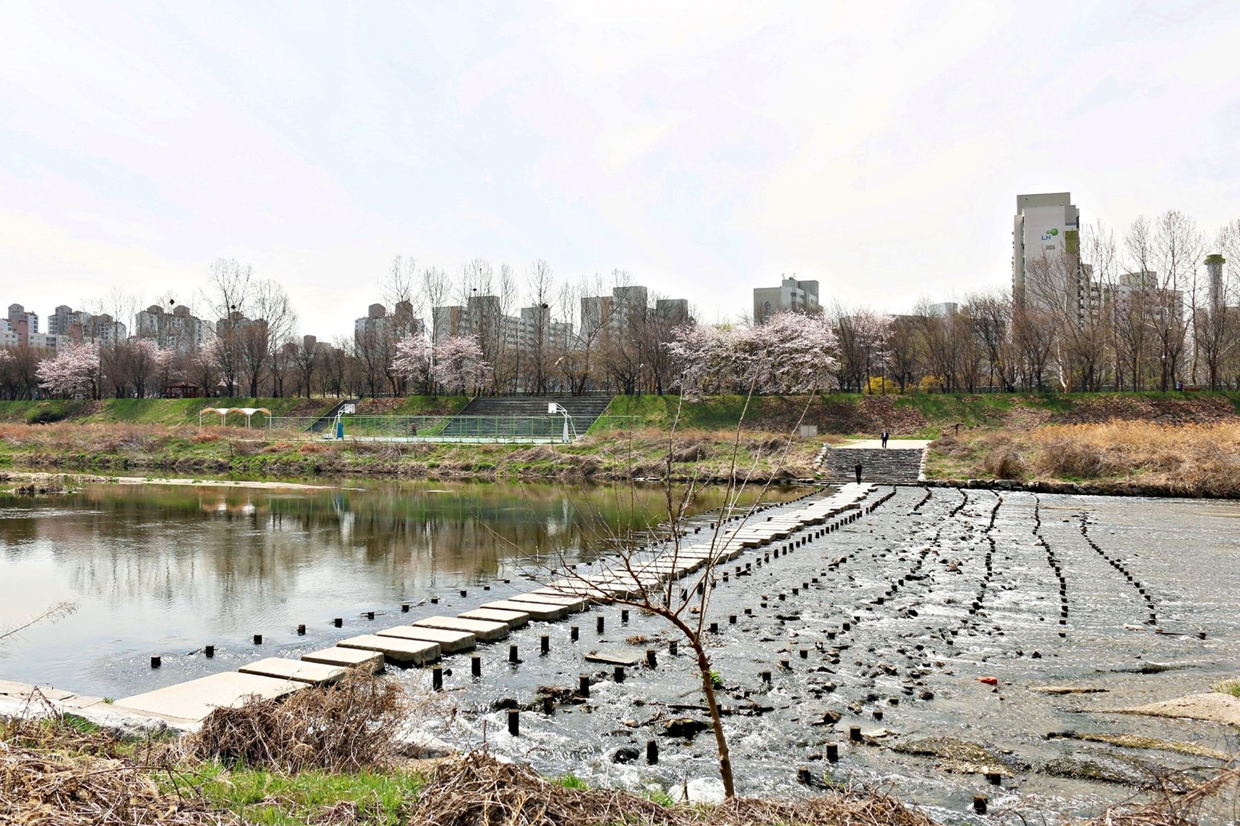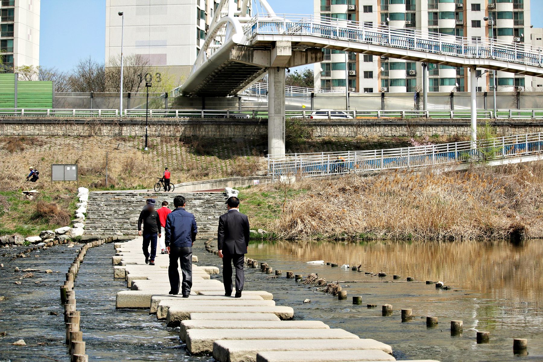 안양천을 건너는 방법 중 하나인 징검다리!