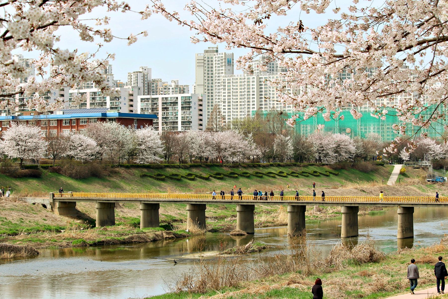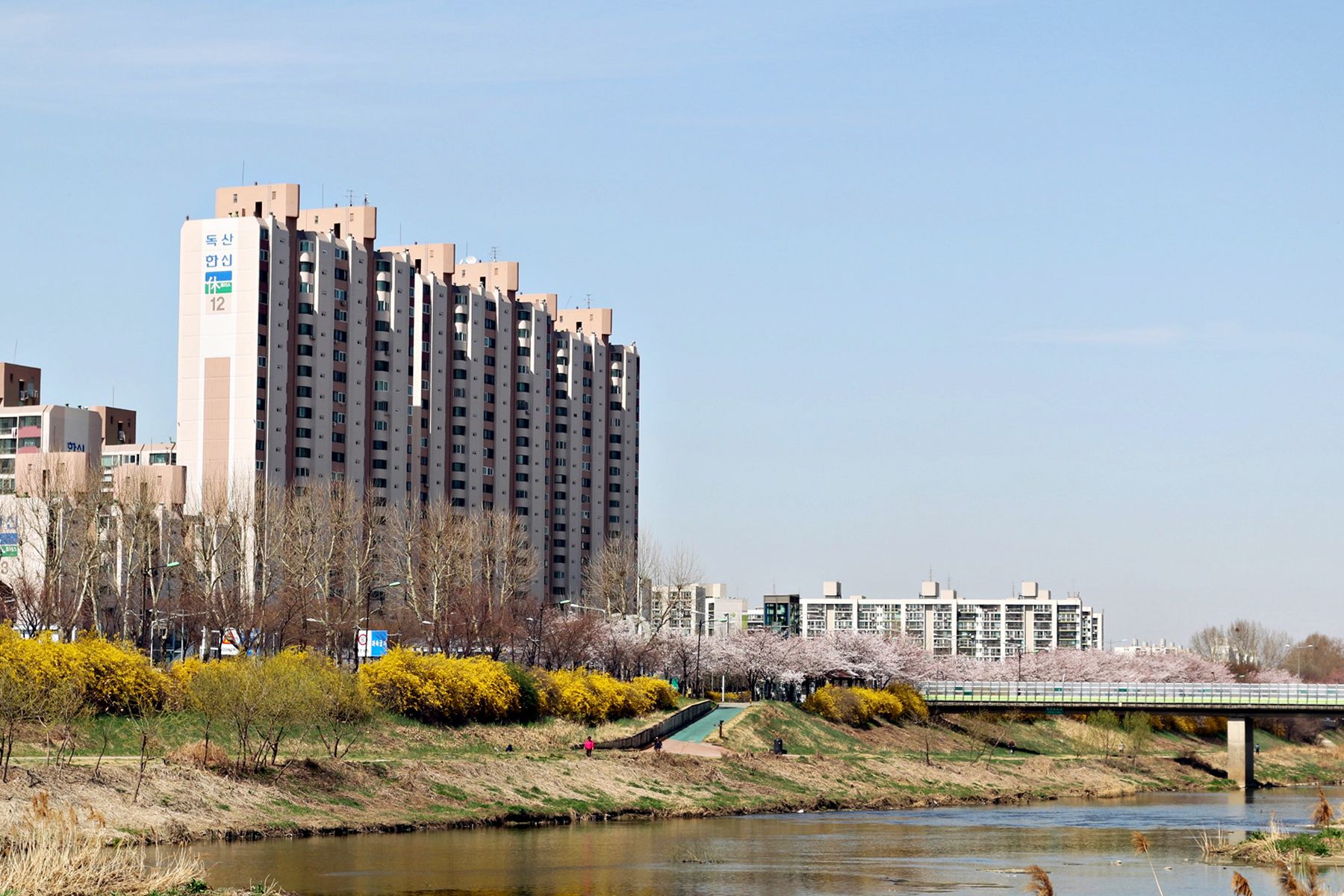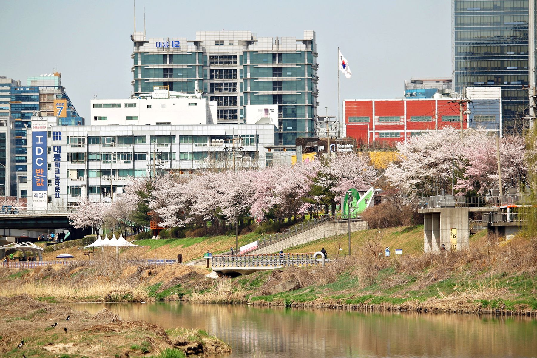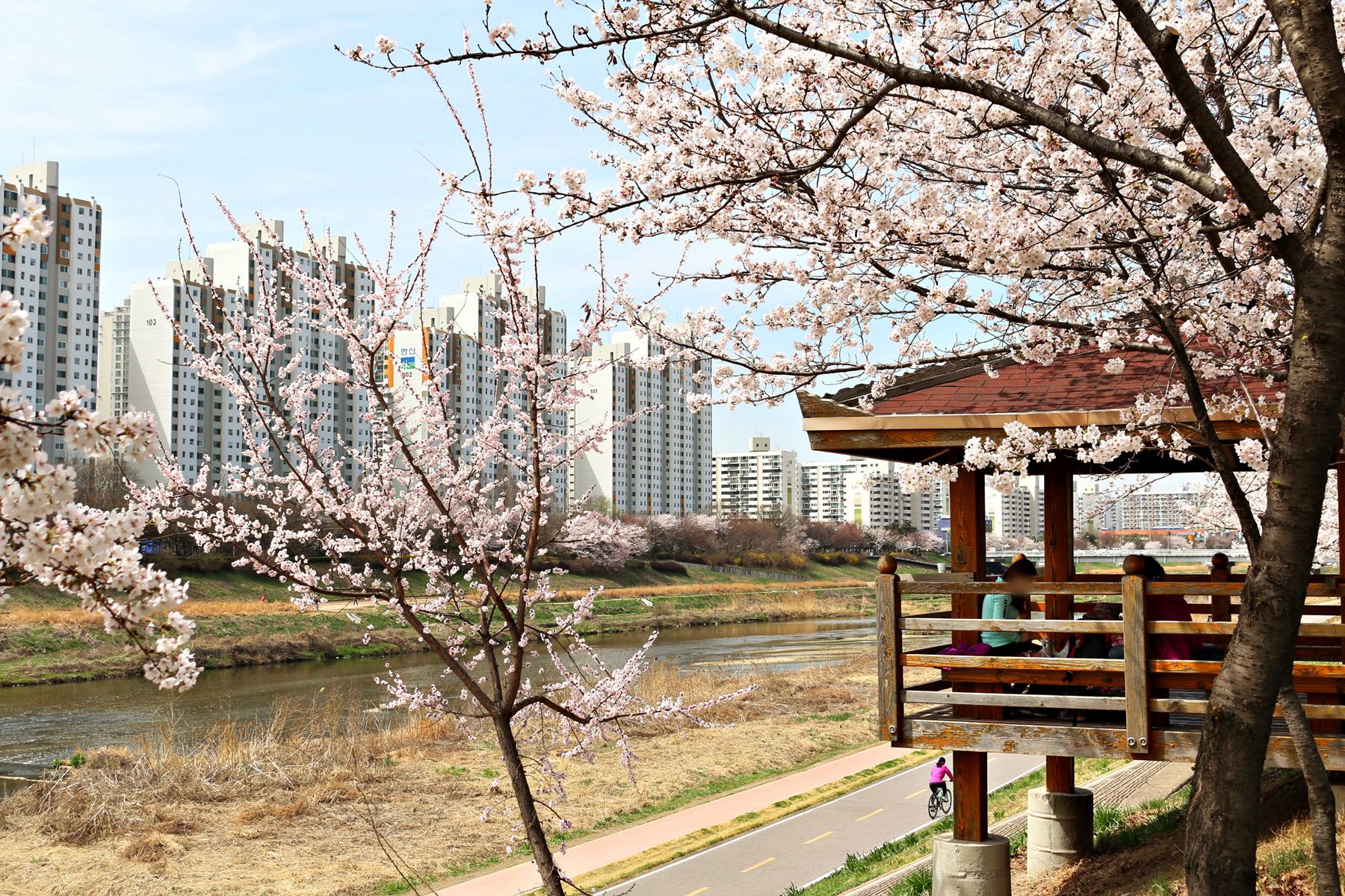 안양천의 흐르는 물과 흐드러지게 피어있는 벚꽃들을 감상하며 여유로운 시간을 보내기 손색없는 곳입니다.