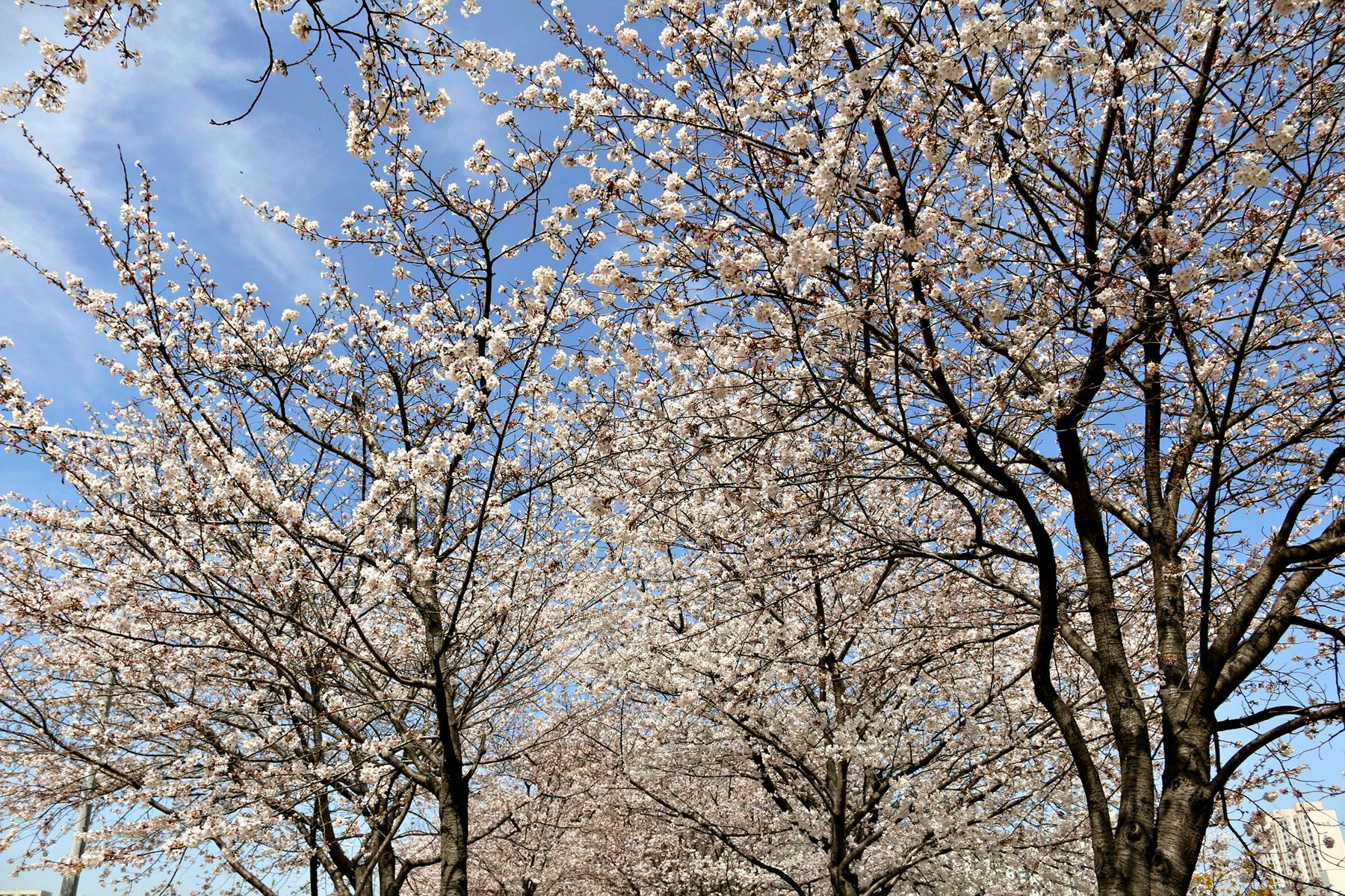 햐얀 벚꽃과 함께 바라보면 이렇게 환상적인 모습을 감상할 수 있습니다.