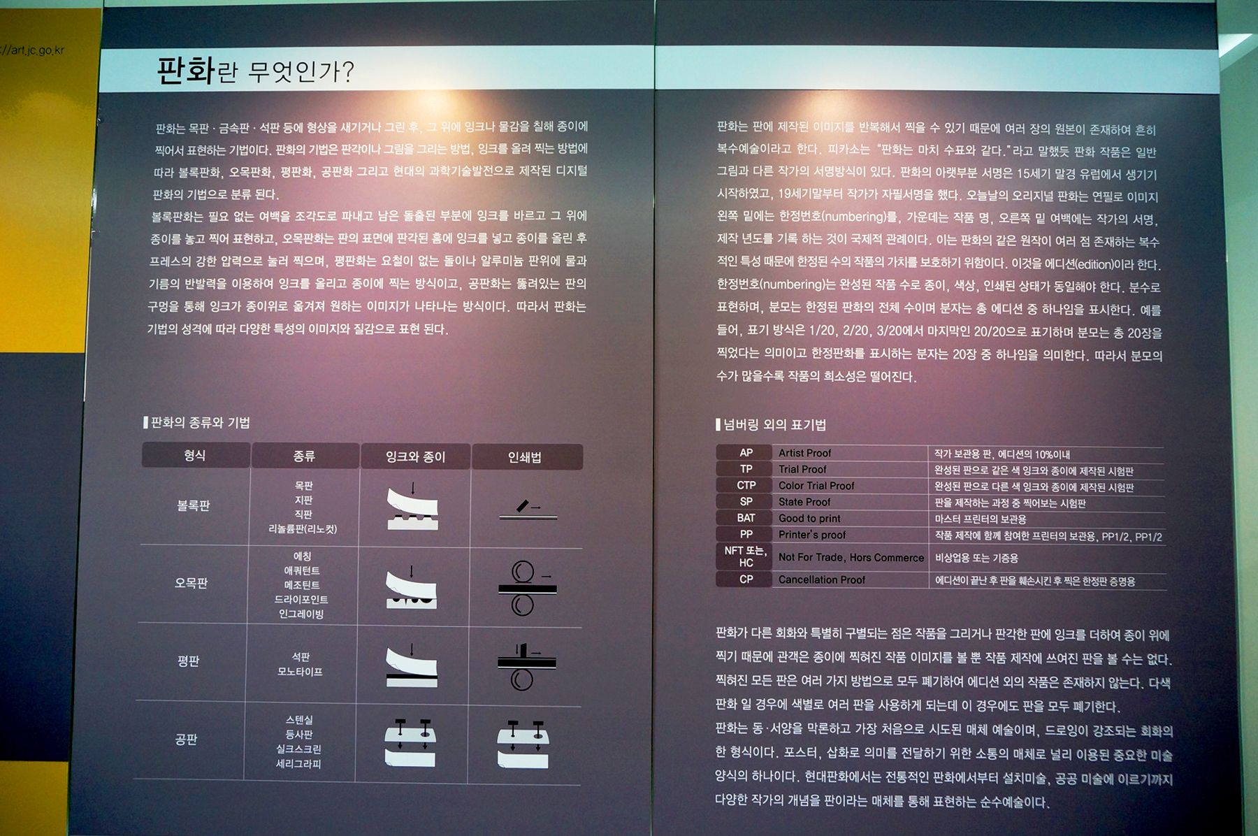 전시관을 돌아보기 전 입구에 마련된 판화의 기본적인 설명과 역사에 대한 설명도를 한번 훑어보세요^^