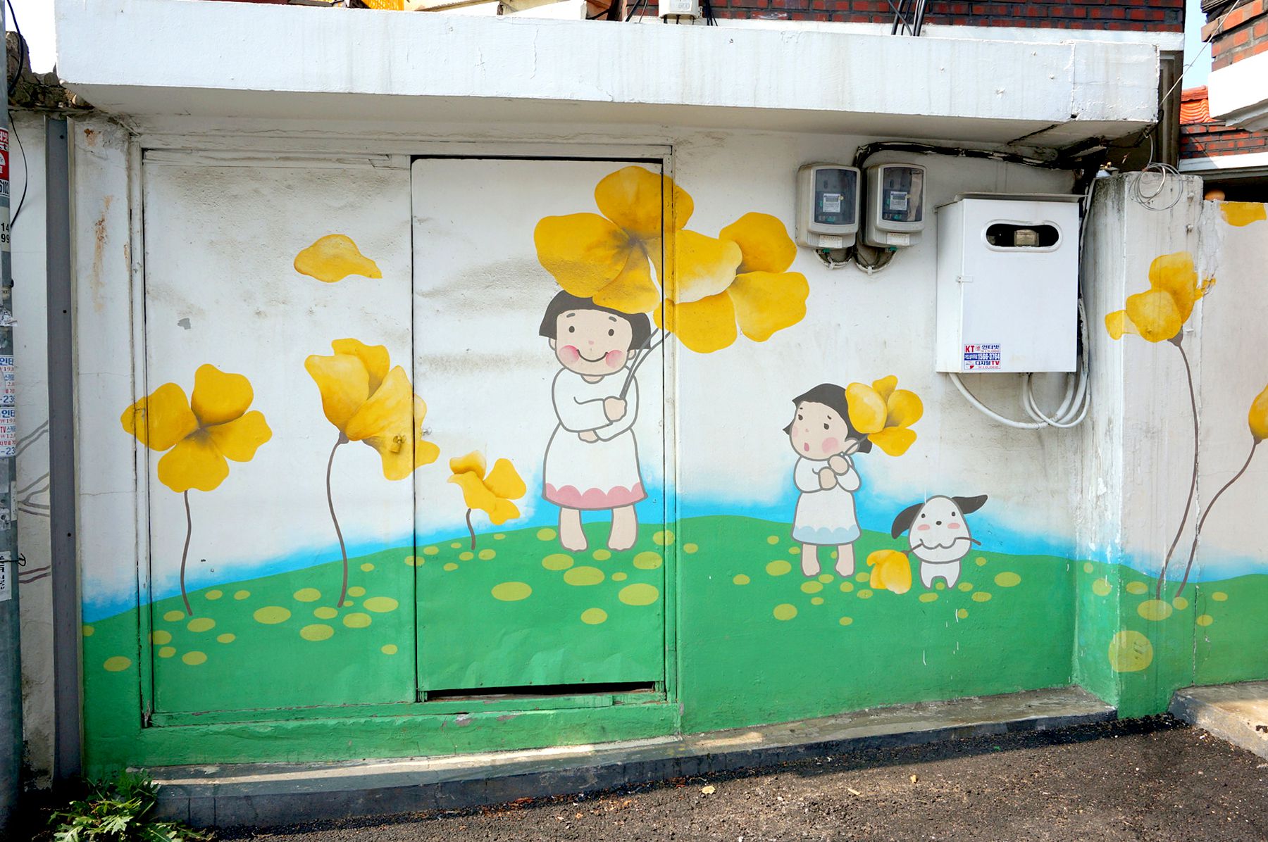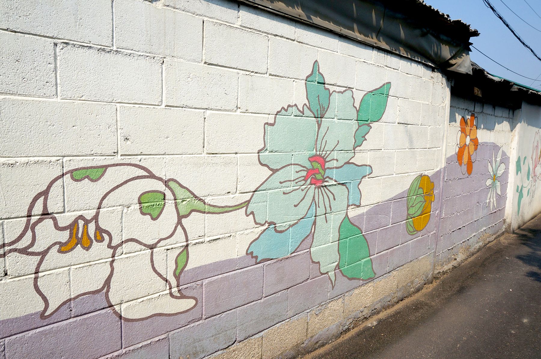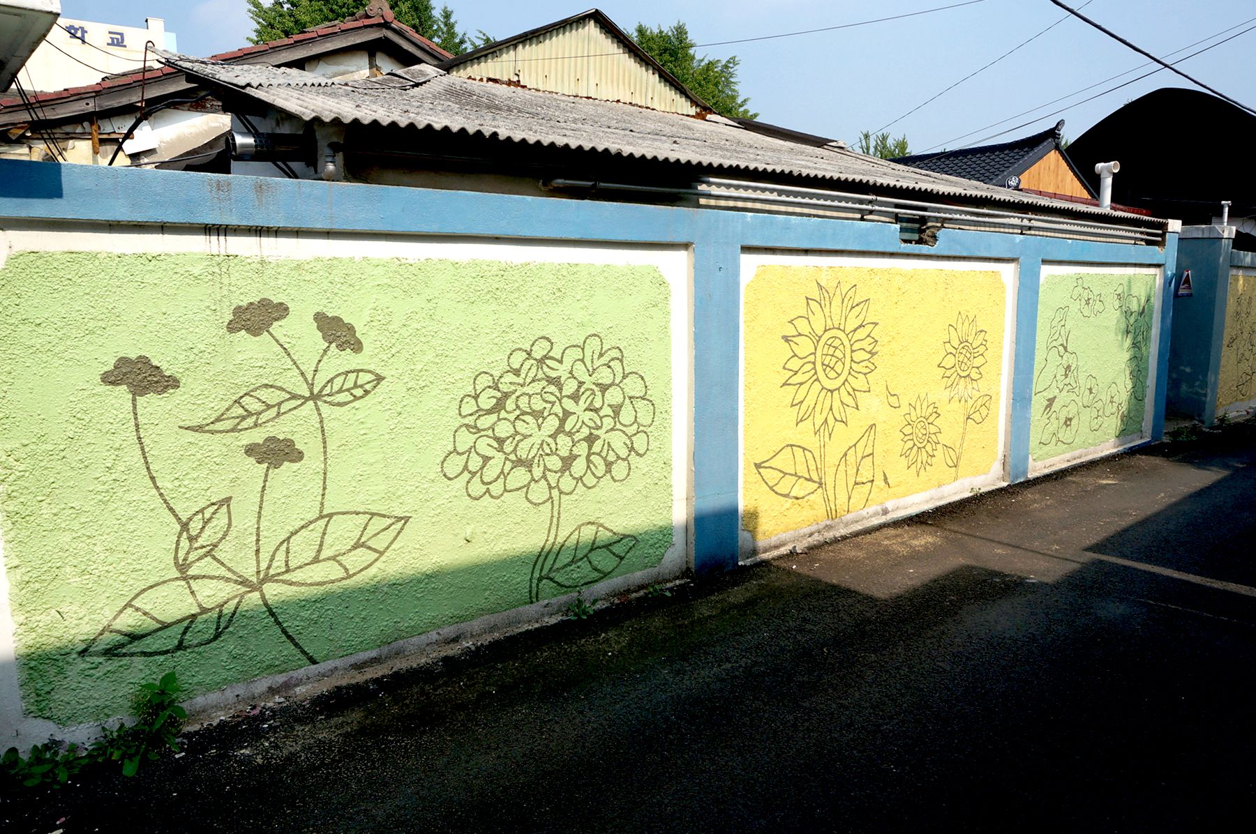 화전동 벽화마을의 화전동이란 동네 이름은 꽃 화, 밭 전 자로 '꽃밭'이라는 순우리말을 지니고 있습니다.