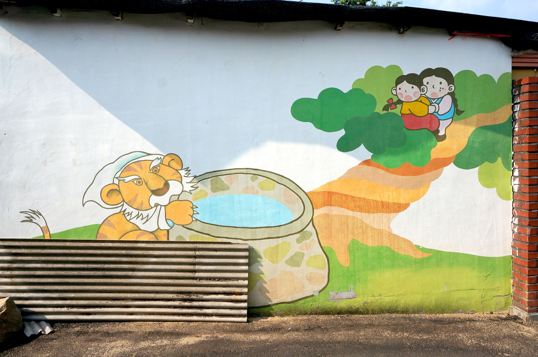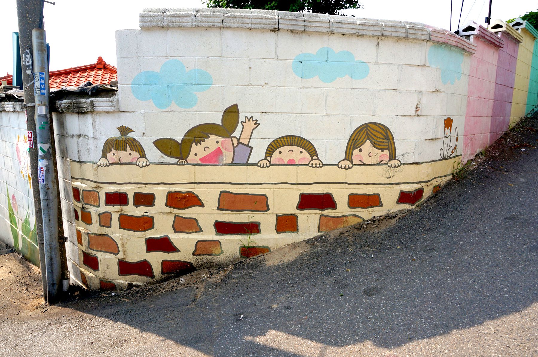 아무것도 없던 평범한 벽에 생기를 불어 넣은 멋진 화전벽화마을입니다.