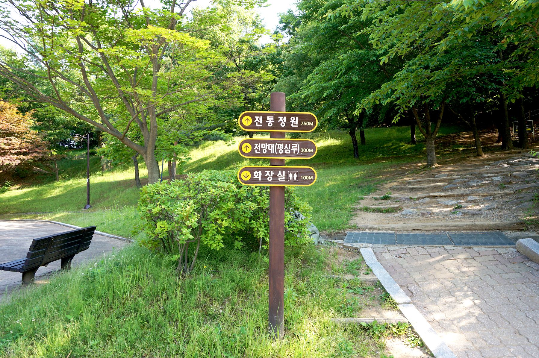 산 전체가 휴식공간으로 되어 있어서 어느 방향에서 시작하든 정상까지 산책을 즐길 수 있고,