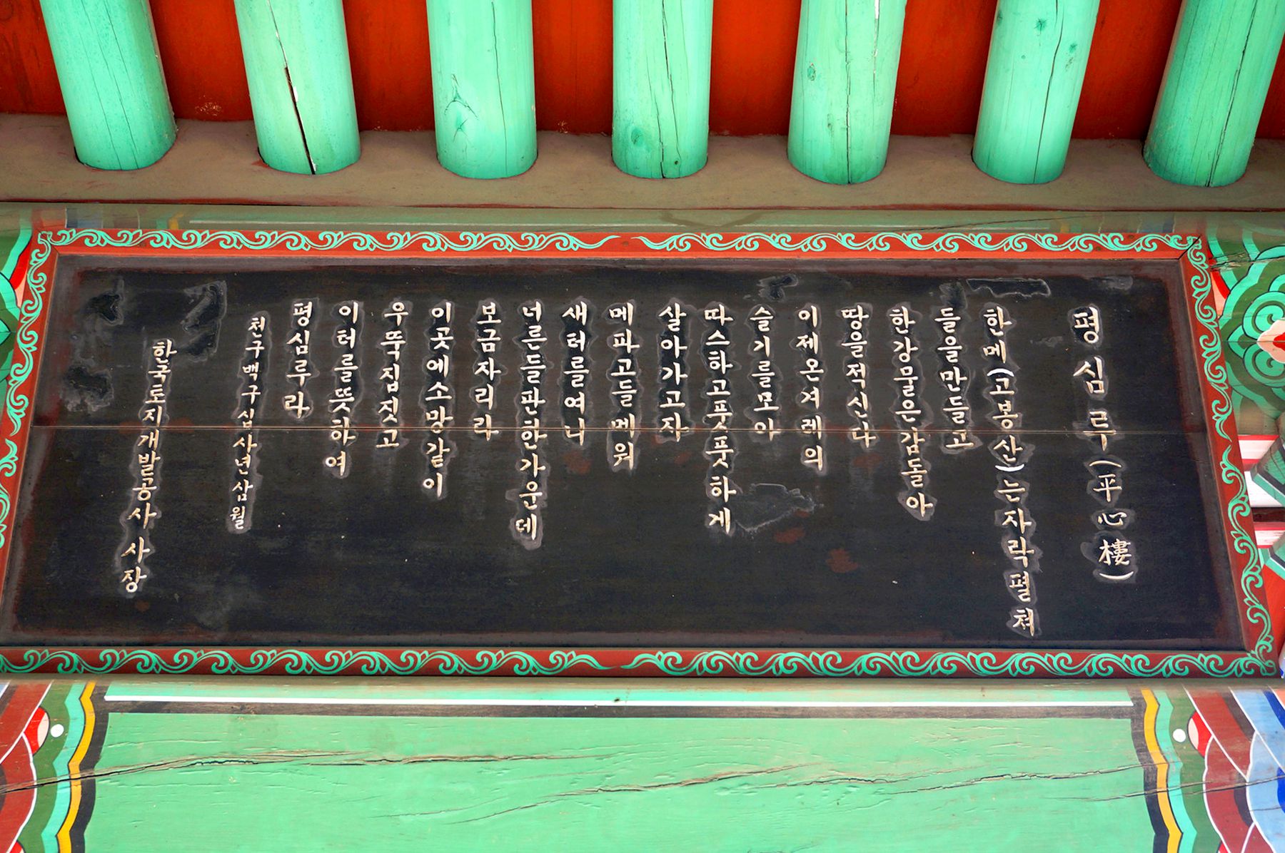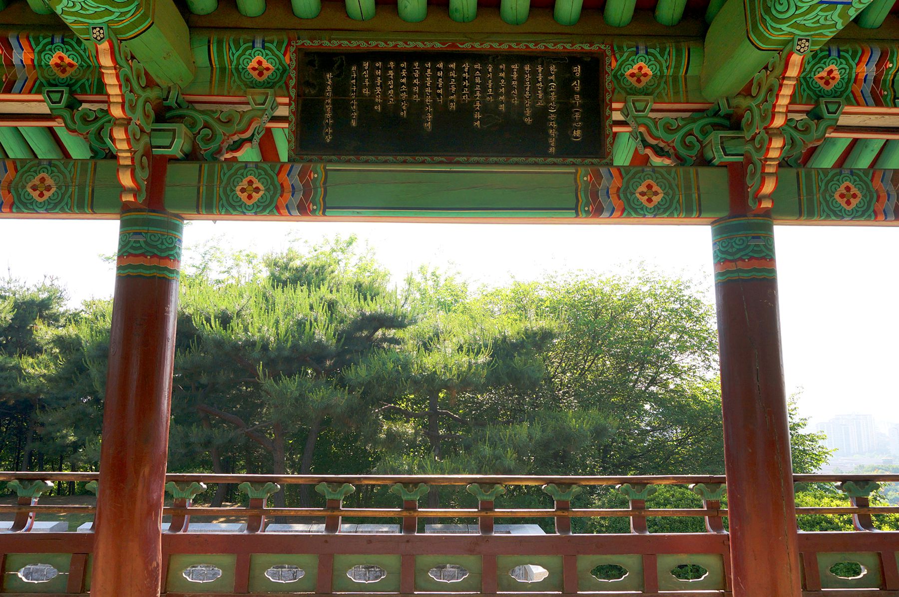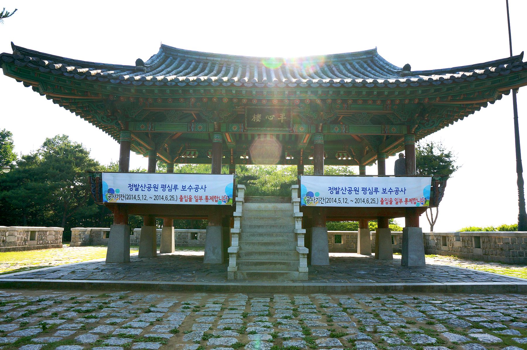 눈에 띄는 아름다운 자태의 평심루는 공원을 찾는 사람들에게 훌륭한 휴식처가 되어줍니다.