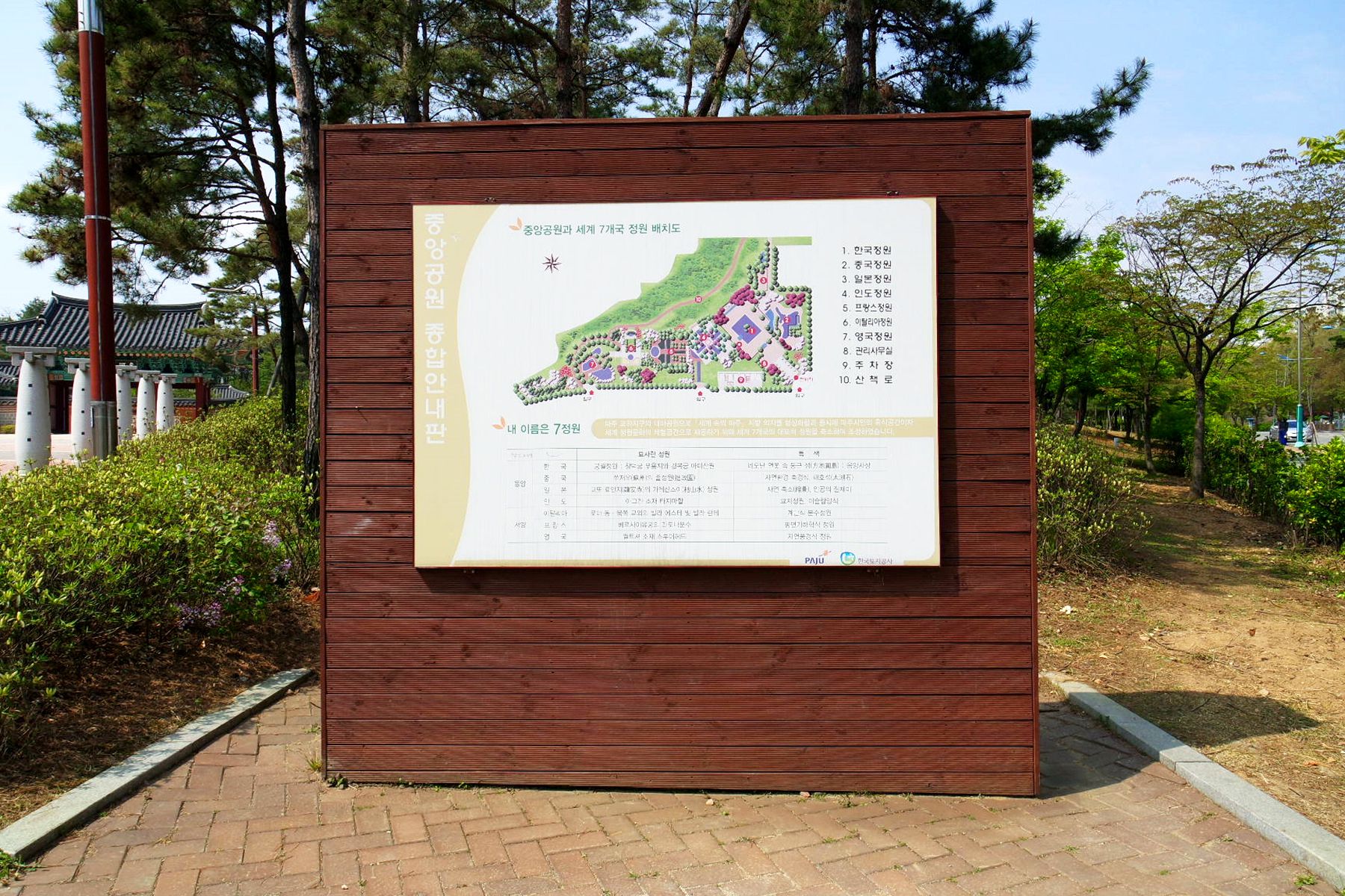 중앙공원은 도심 속 자리하고 있는 시민들의 휴식공간으로 한국, 일본, 중국, 영국, 프랑스, 이탈리아, 인도의 특색을 살린 7개국의 정원을 연출해 놓아