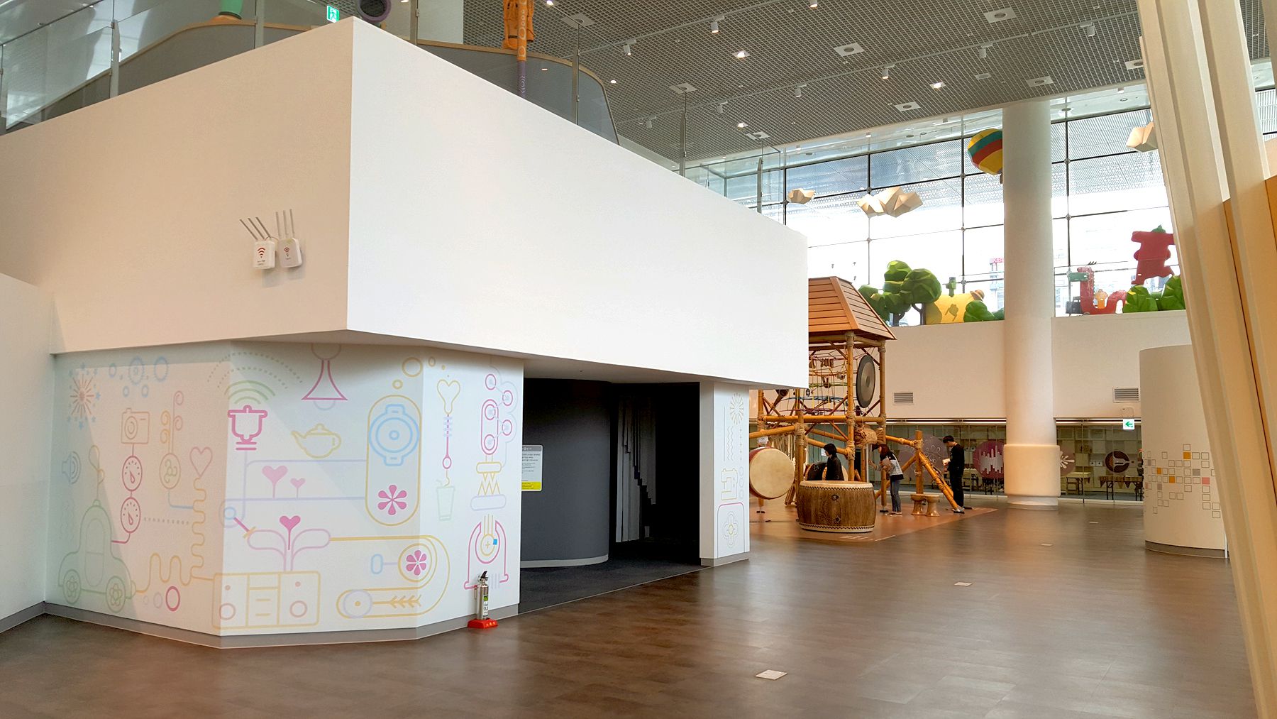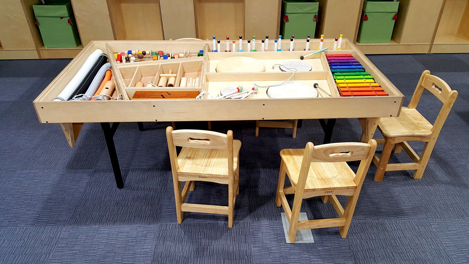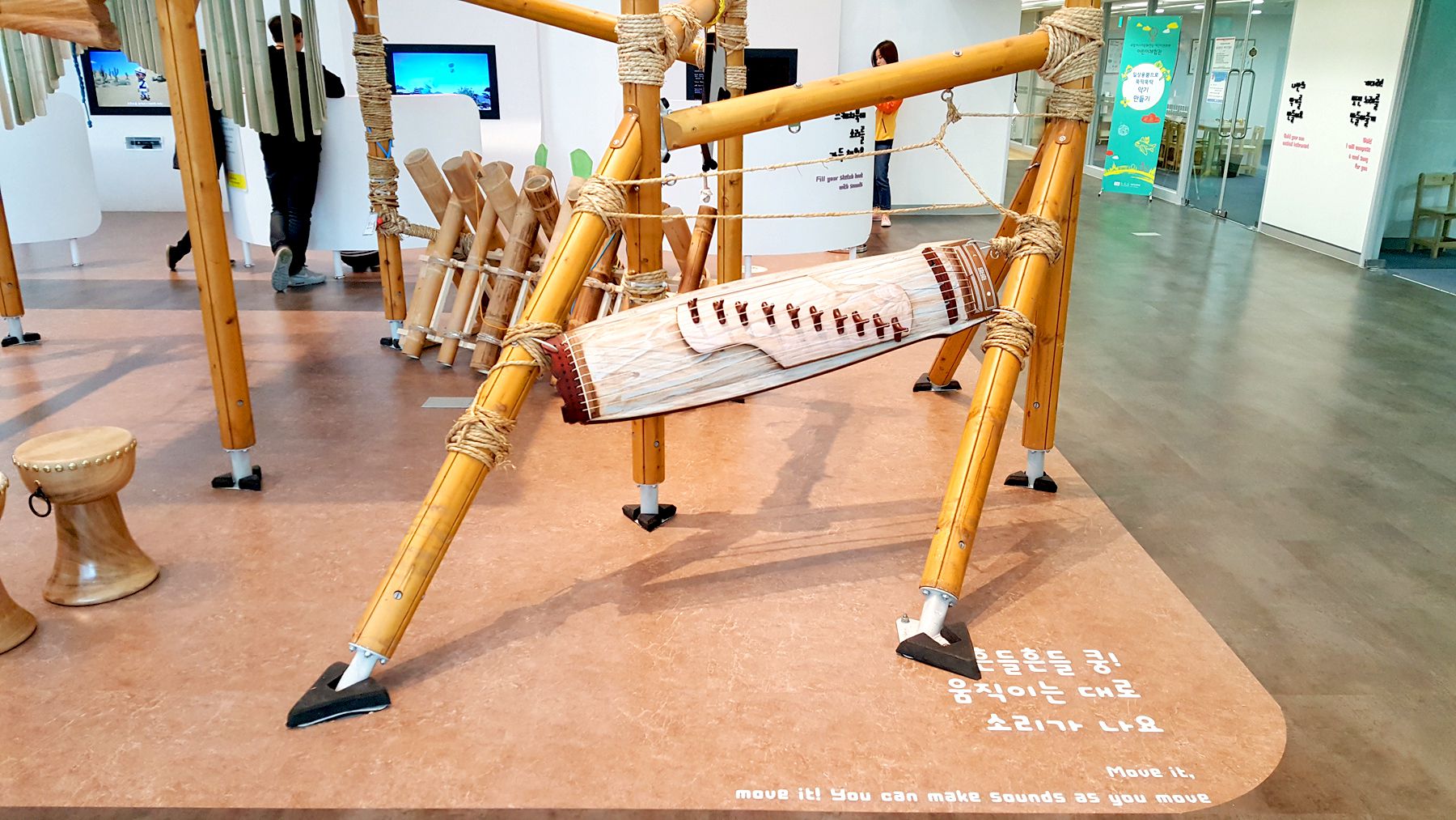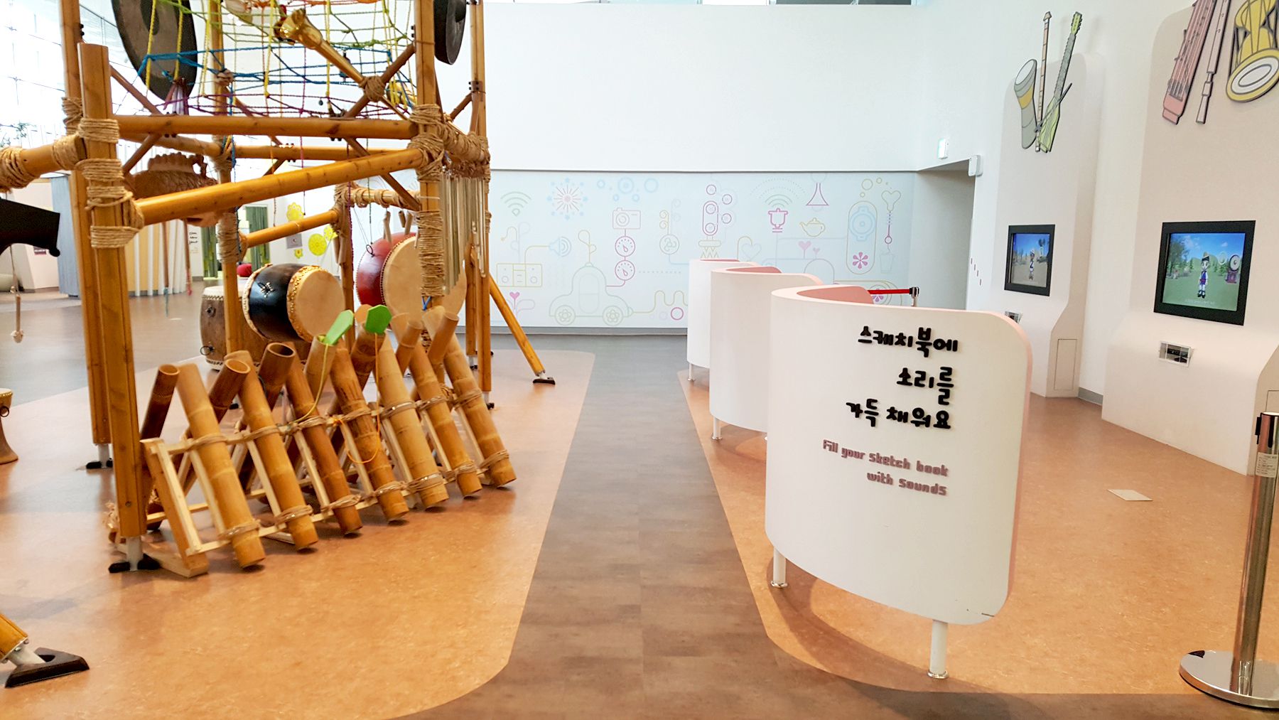 일상 용품으로 나만의 악기를 만들어 소리를 들어 볼 수 있고, 악기를 연주할 수 있는 곳이라 많은 아이들이 즐거워하는 공간입니다.