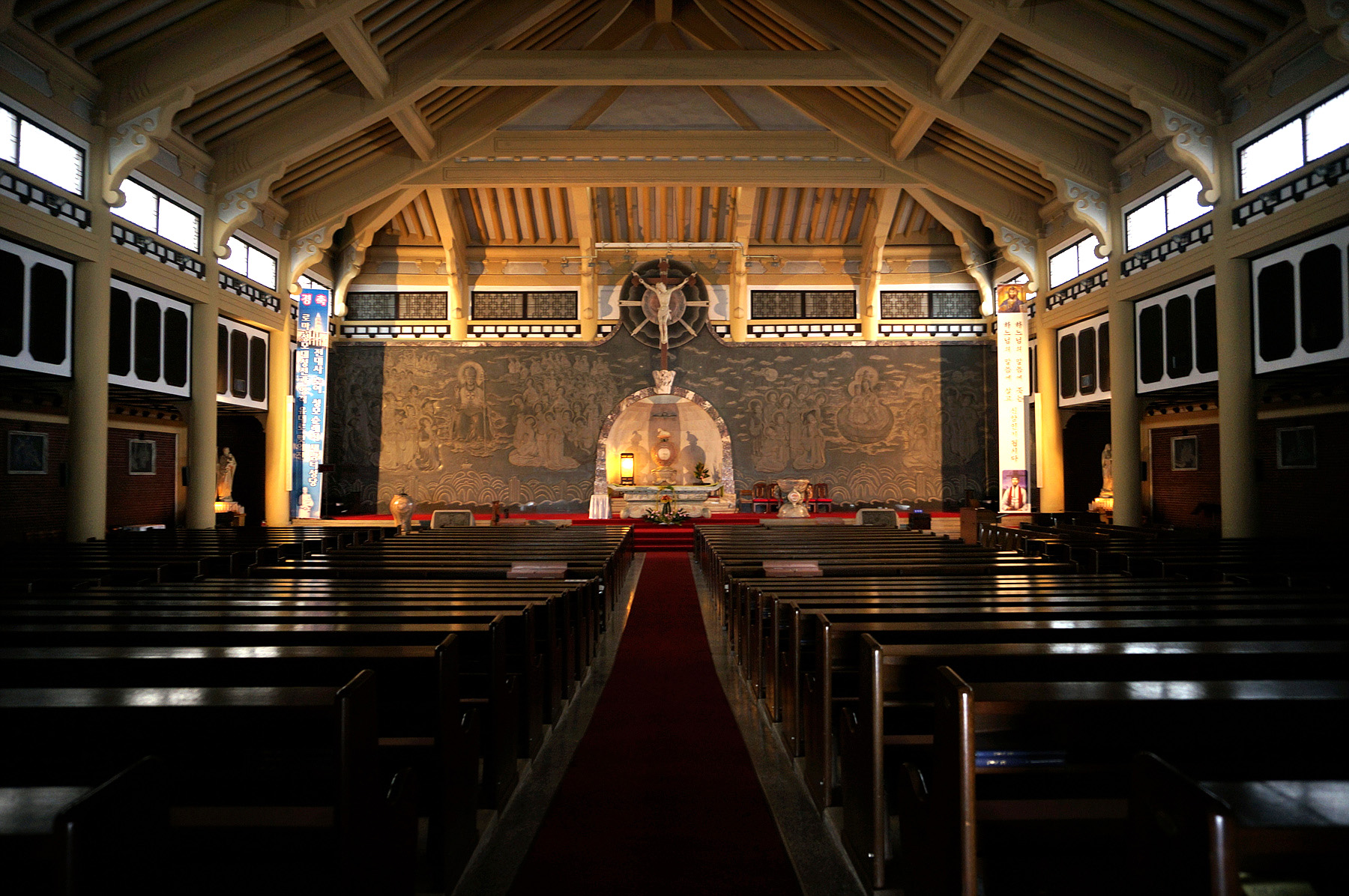 큰 규모는 아니지만 벽화나 지붕 그리고 천정이 서양의 성당과는 다른