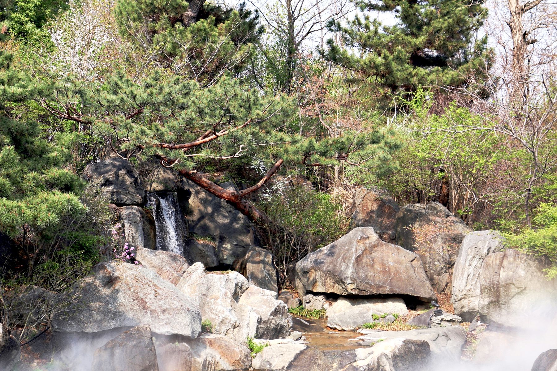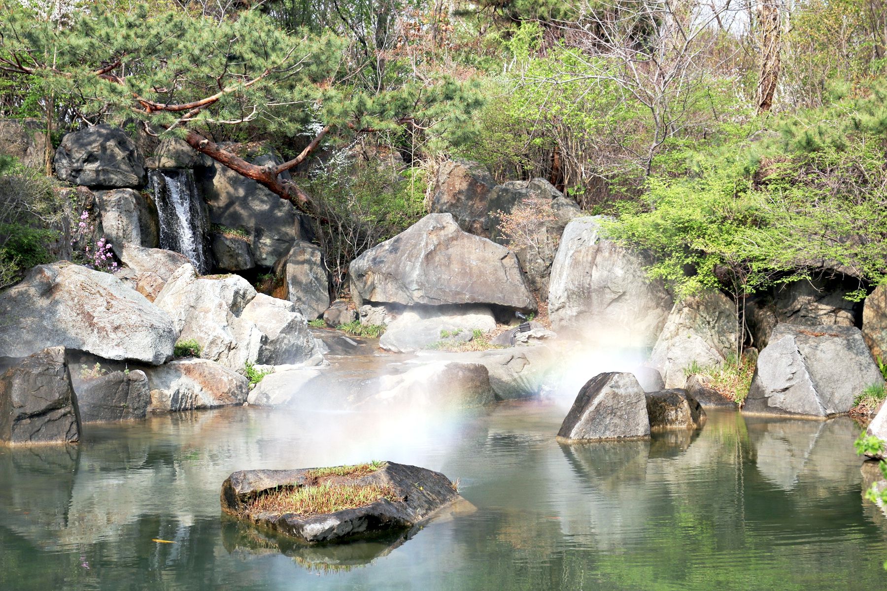 한국의 전통식 정원으로 꾸며져서 우리의 전통조경을 엿볼 수 있는 폭포입니다.