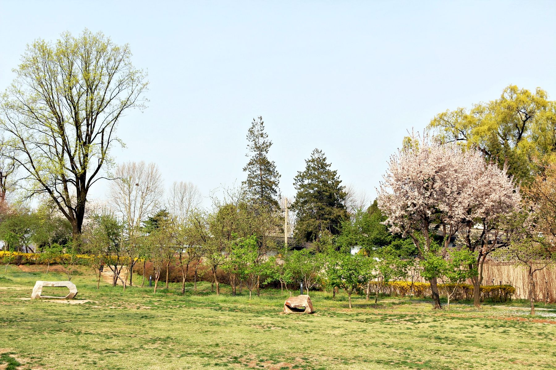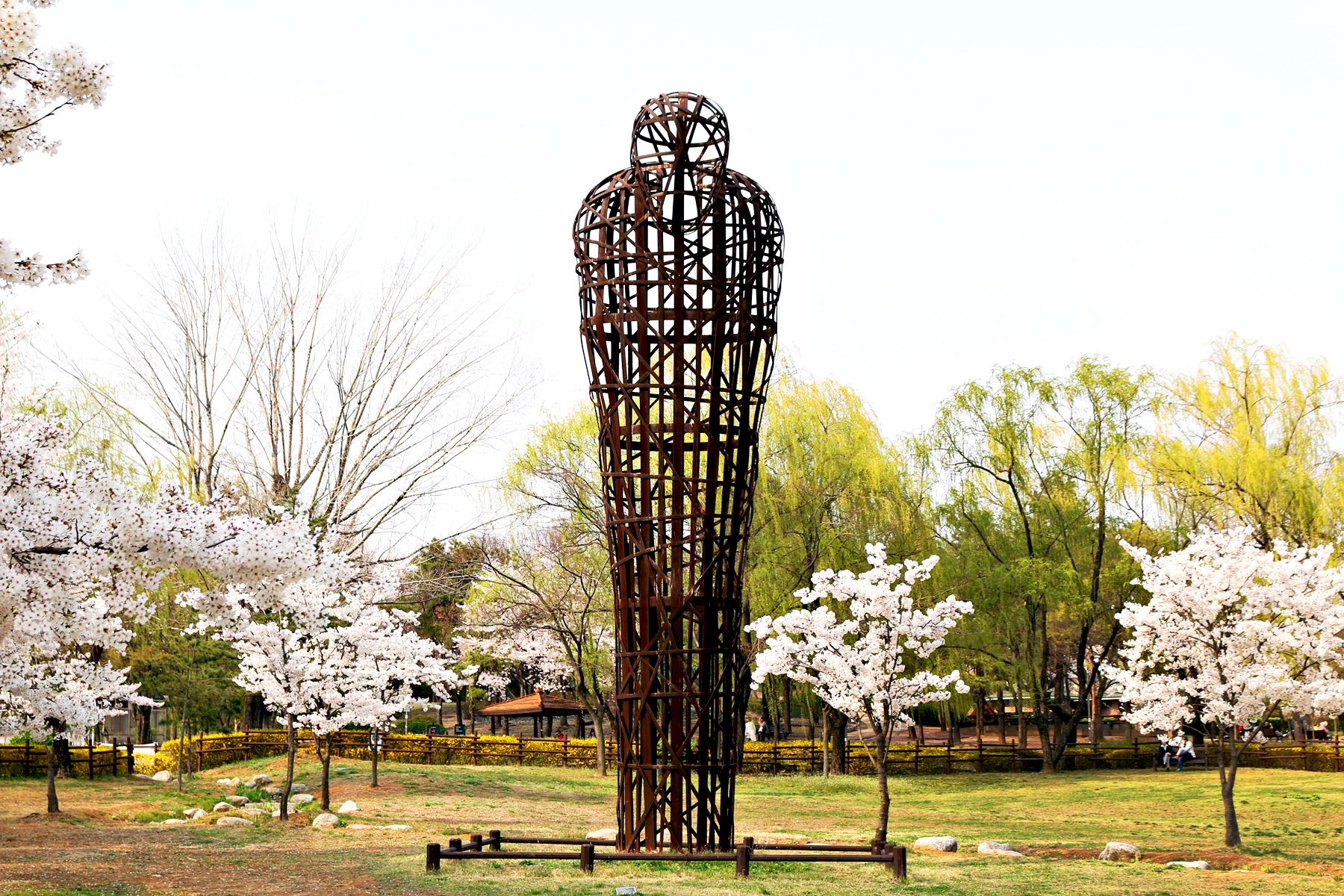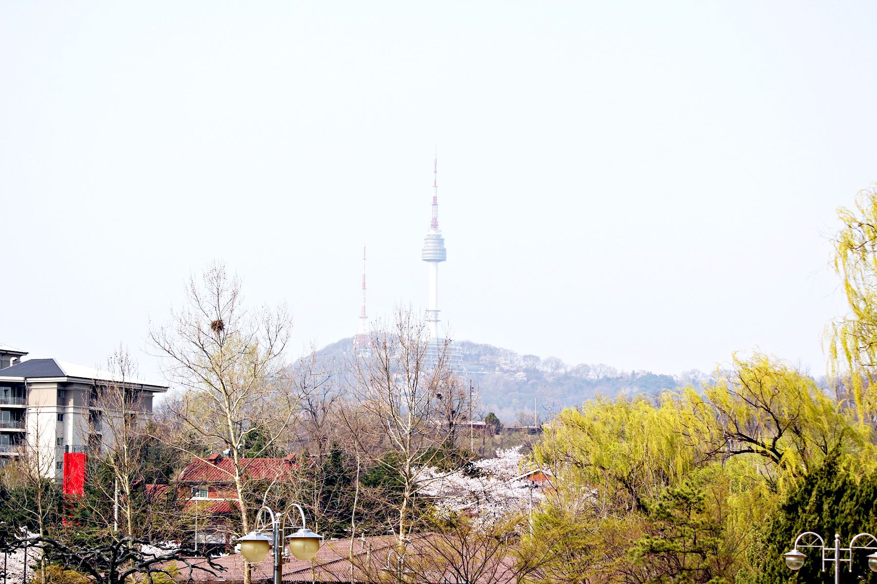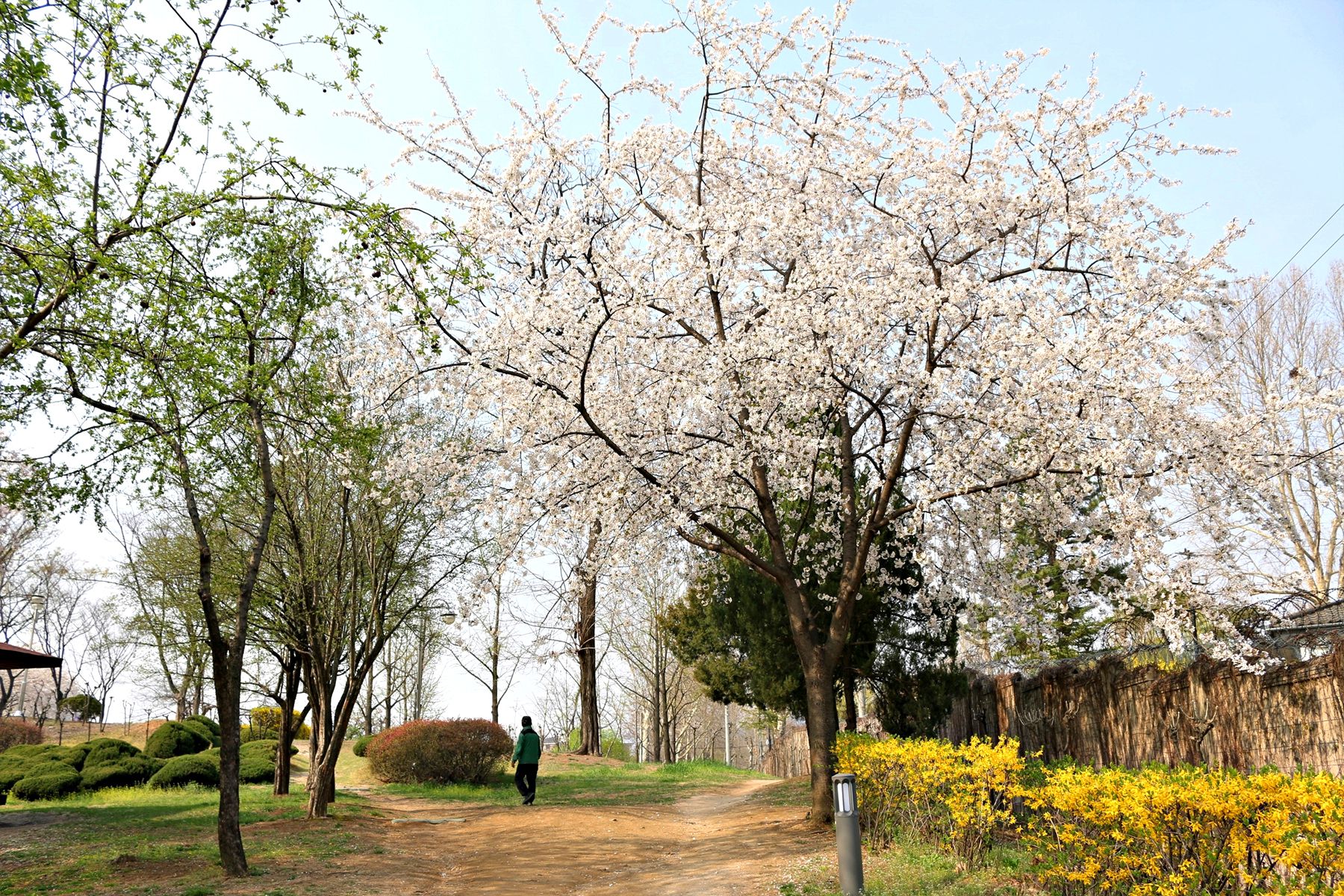 하얀 벚꽃뿐만 아니라 노란 개나리와 풋풋한 연둣빛 버드나무까지도 봄소식을 전하고 있는 용산가족공원!