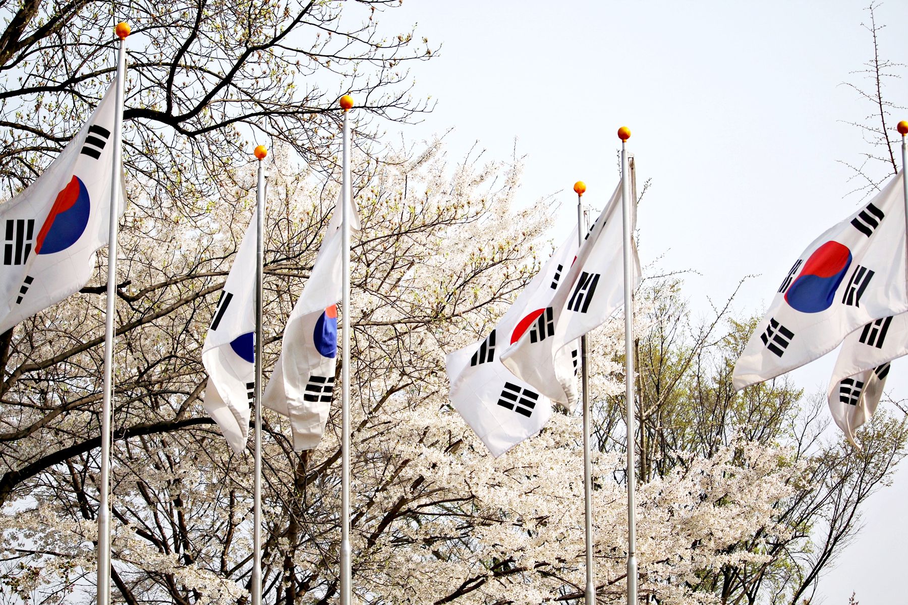 햐얀 벚꽃과 펄럭이는 태극기의 조합이 은근 멋있습니다^^