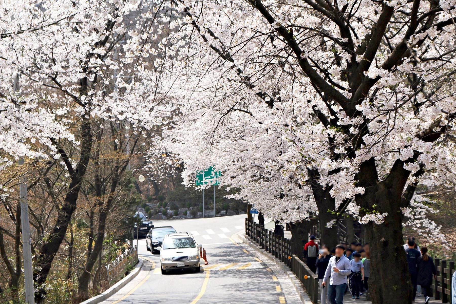 서울 동쪽의 벚꽃 명소인 아차산 벚꽃길은 평지의 벚꽃길과는 또 다른 싱그러움을 느낄 수 있는 공간입니다.