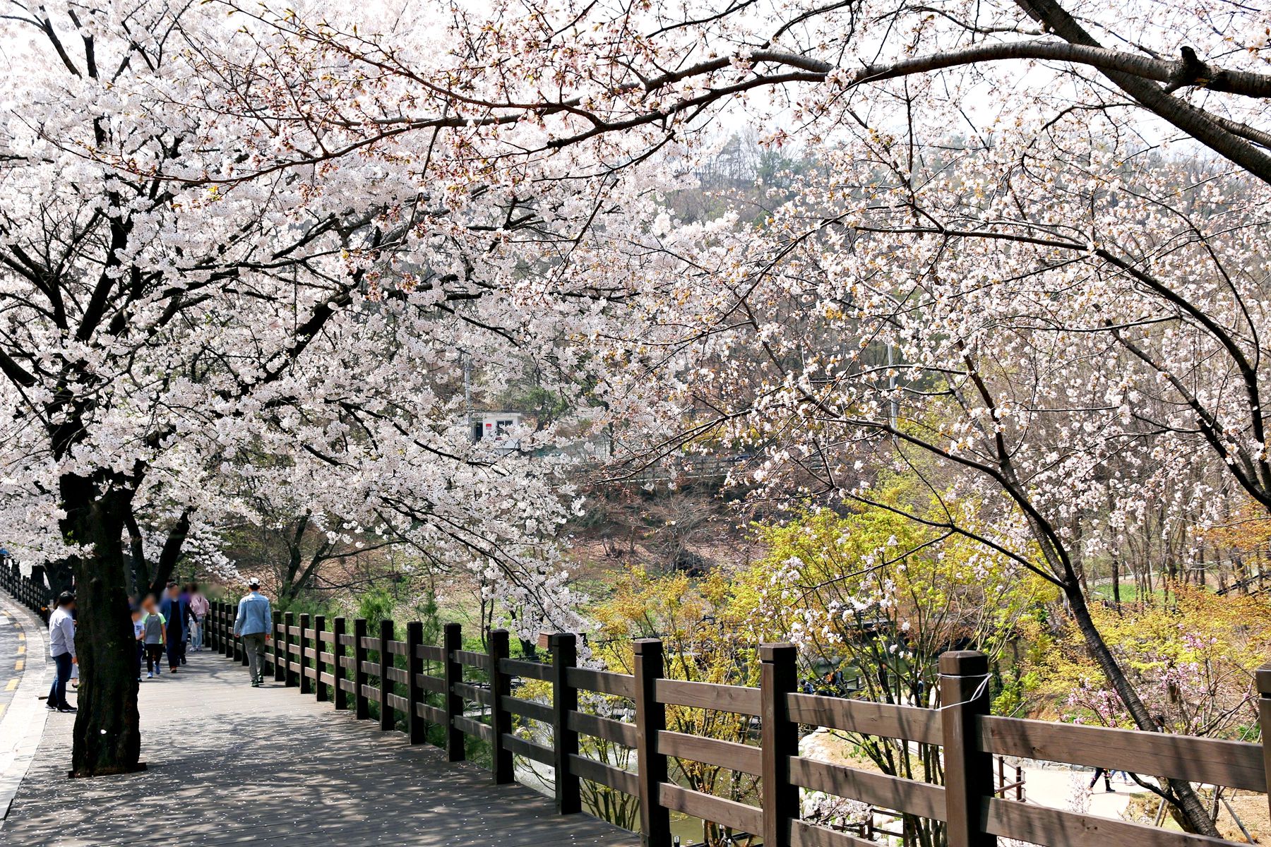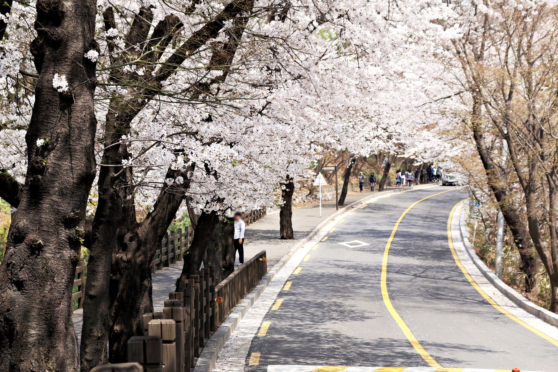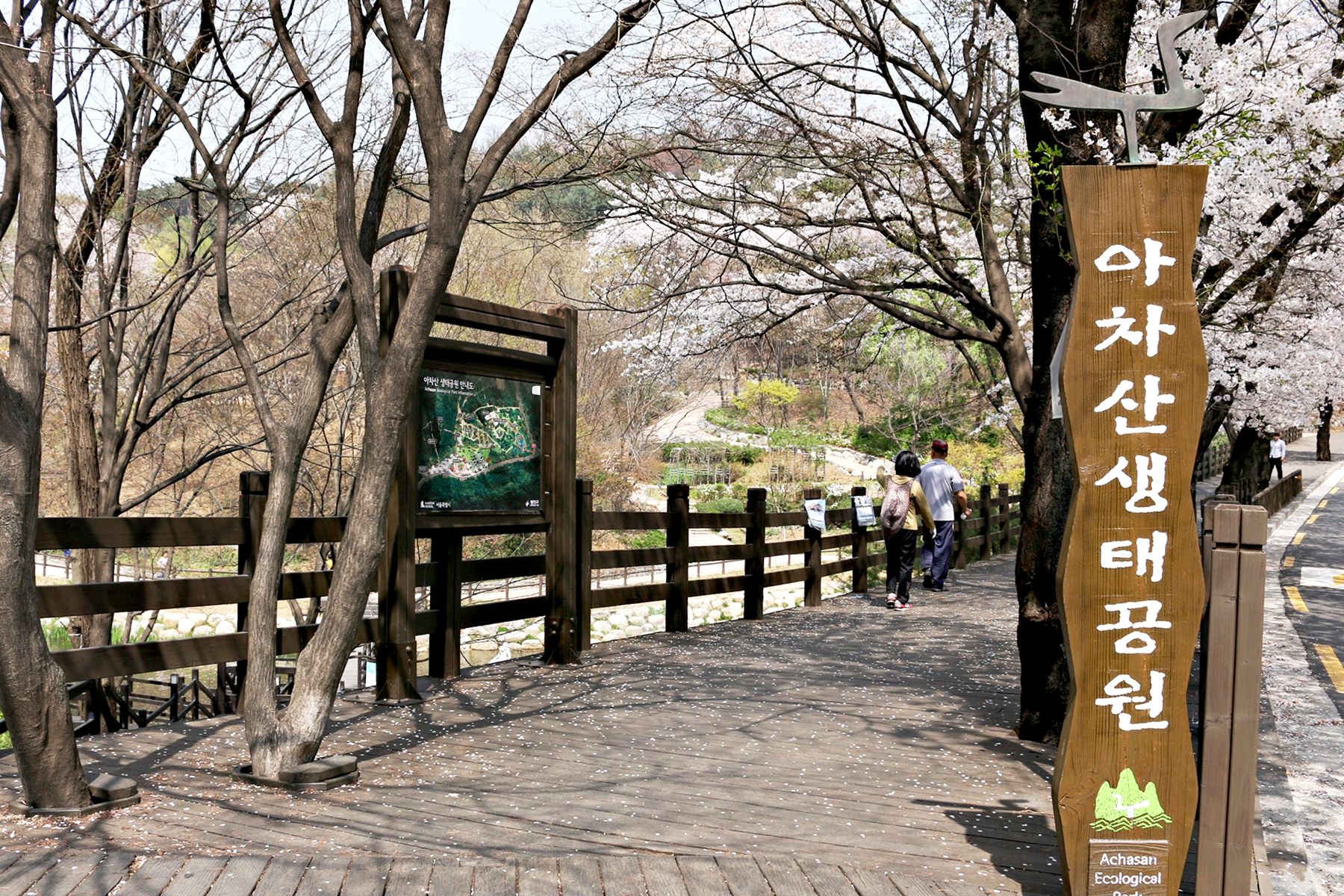 동쪽 서울 시민들의 휴식처가 되어주는 아차산 생태공원은 봄이면 벚꽃길을 찾는 나들이객들로 북적입니다.