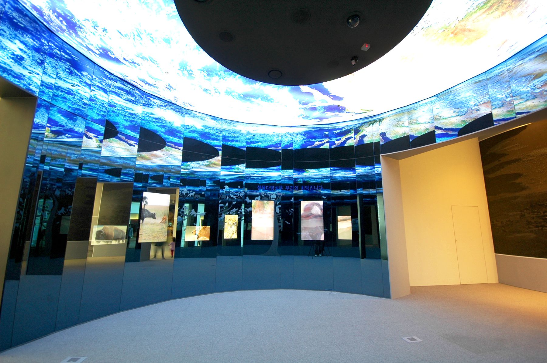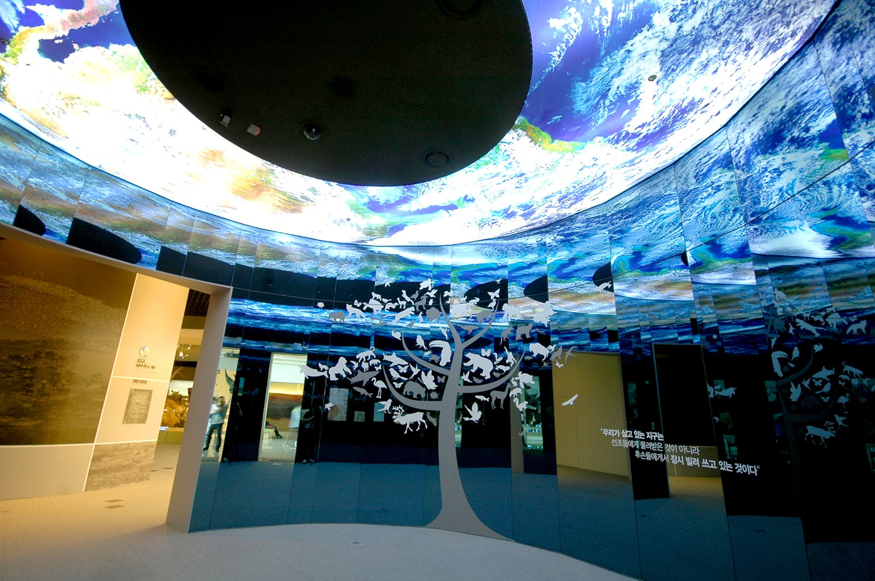 푸른 지구를 그대로 보는 듯 꾸며진 전시실은 천장부터 황홀함을 느낄 수 있습니다.