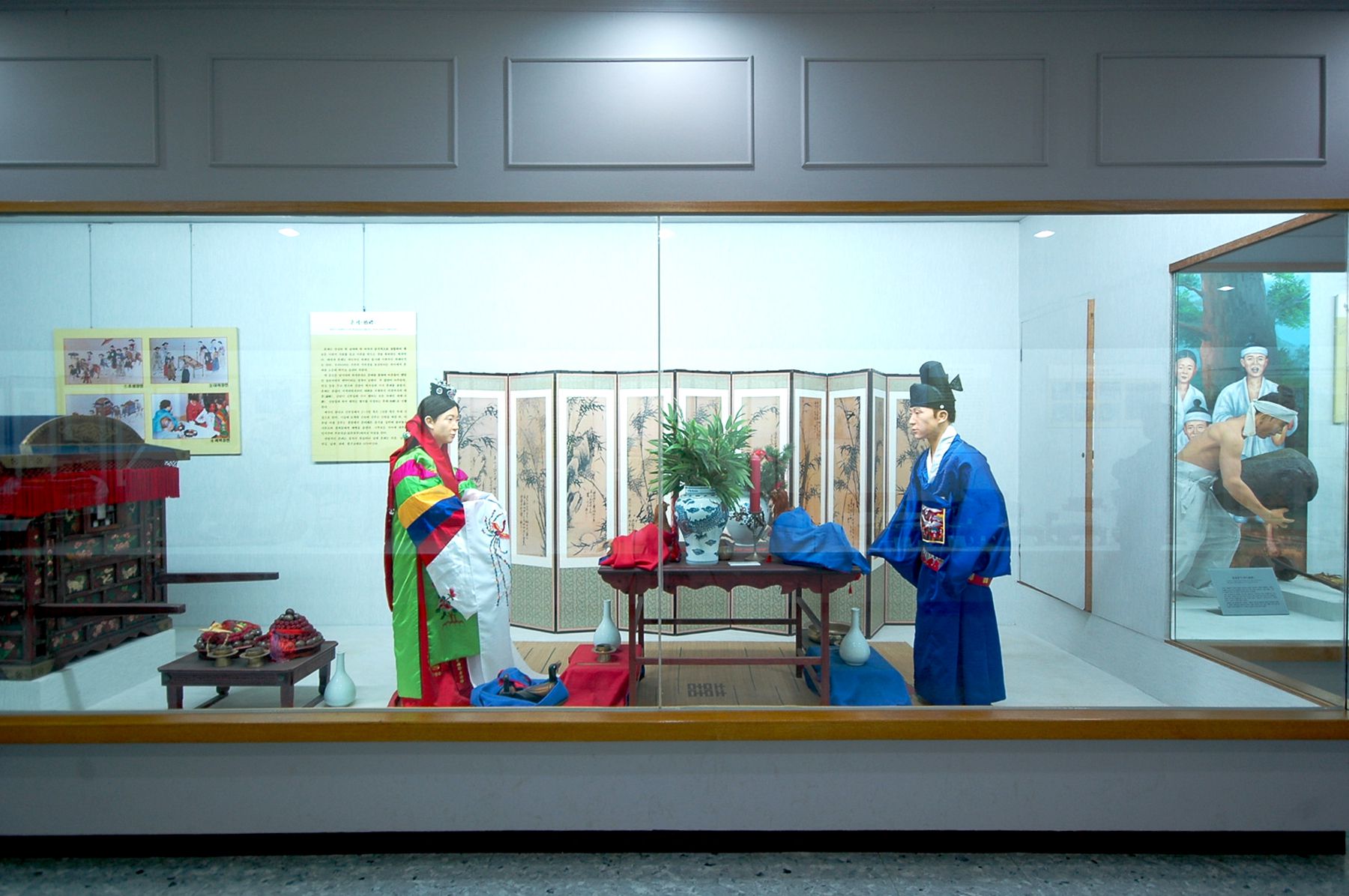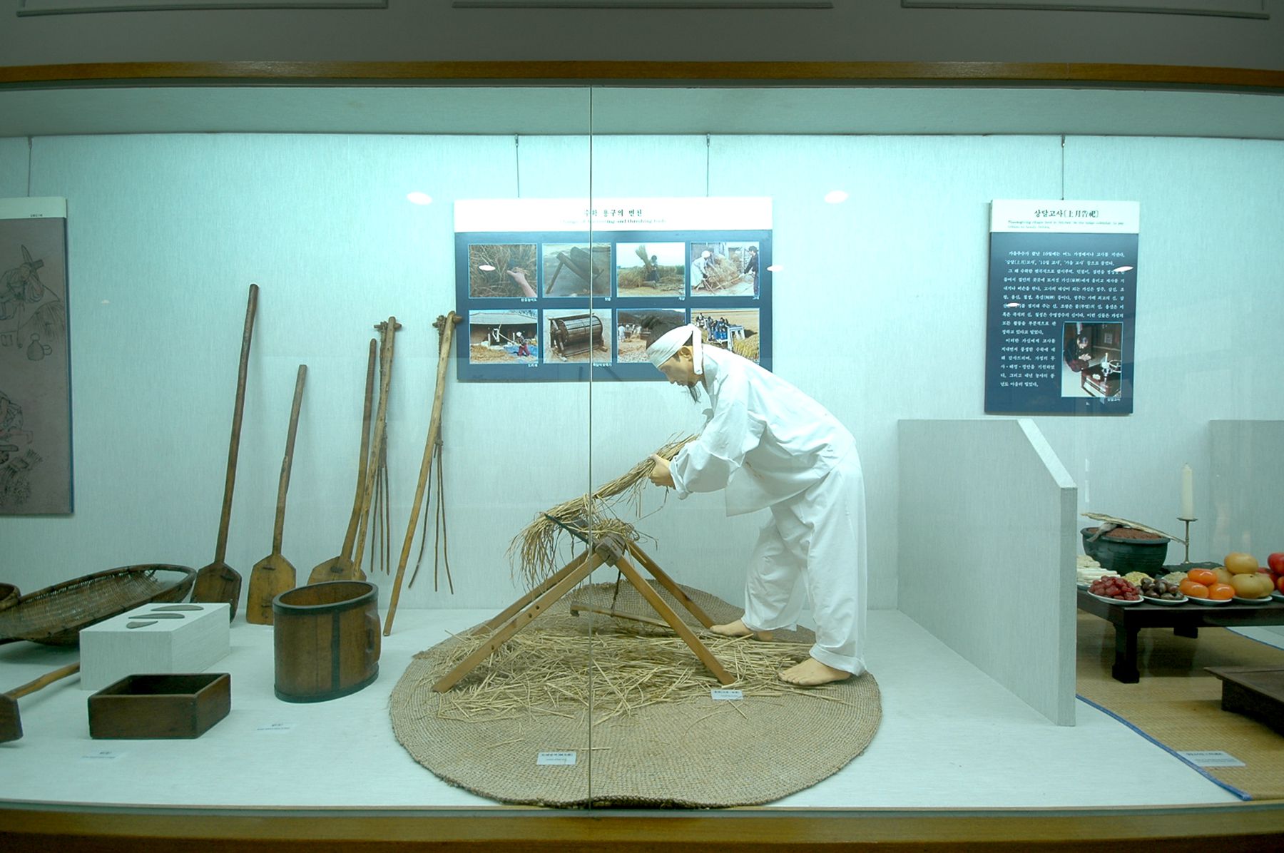 2층 농가 생활실에는 농부의 일생, 민속 전시, 향토 음식, 지역 특산품, 가정 의례 등으로 전시되어 있습니다.