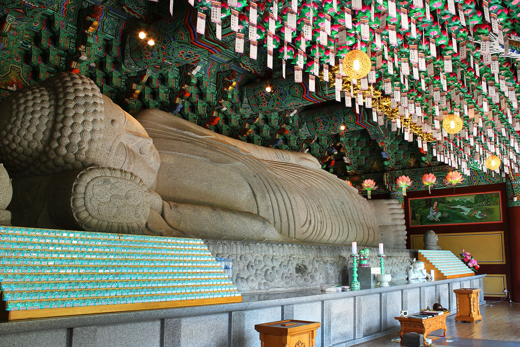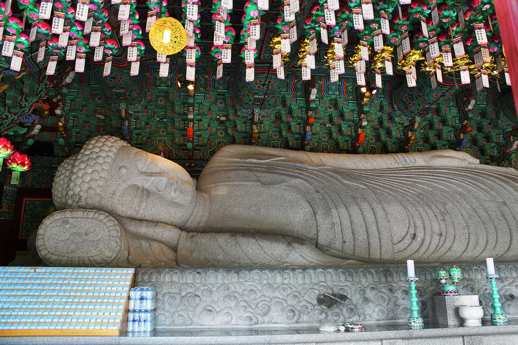 열반 당시 석가모니 부처님의 모습을 자연석에 그대로 조각하여 모셨으며,