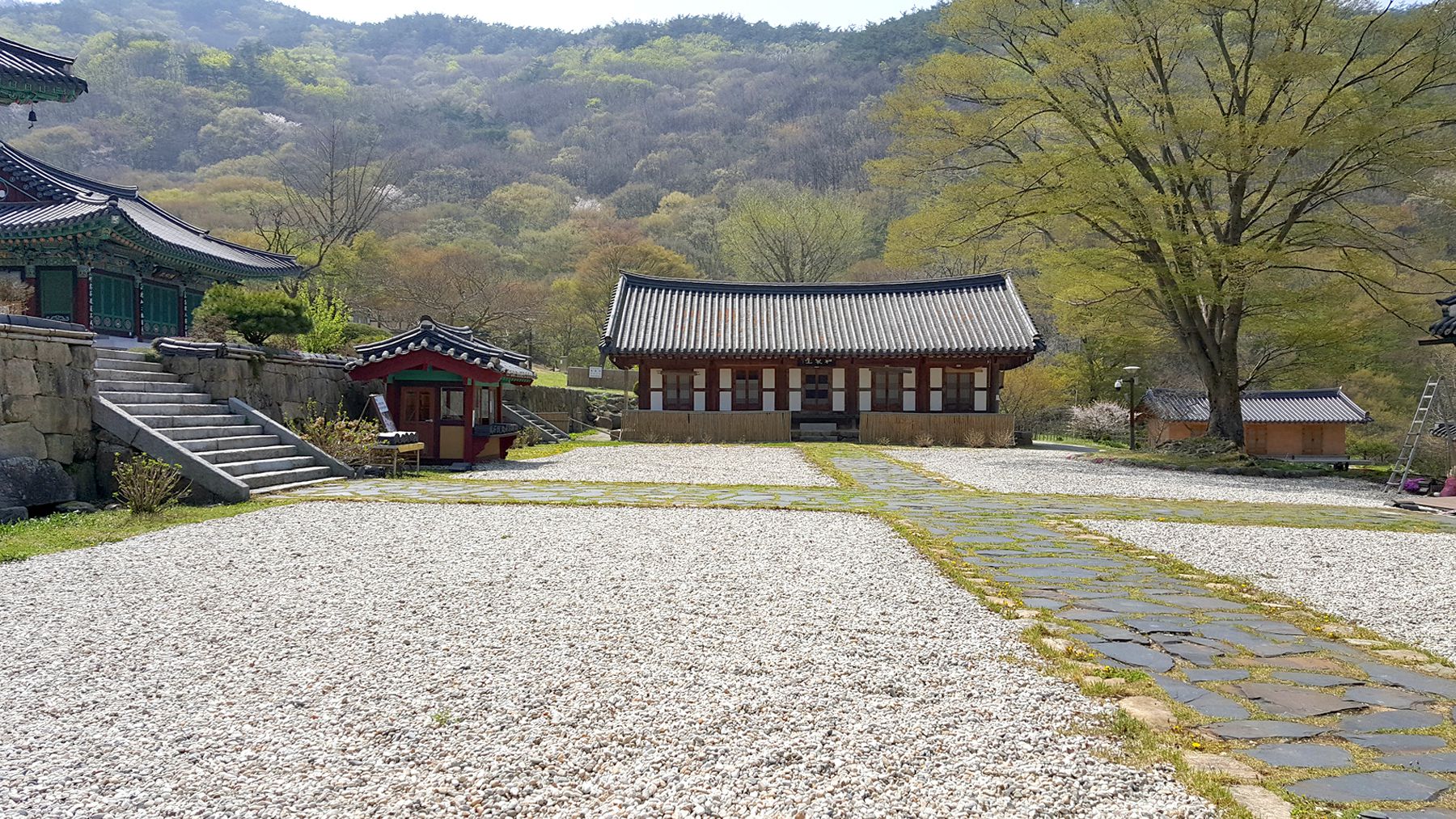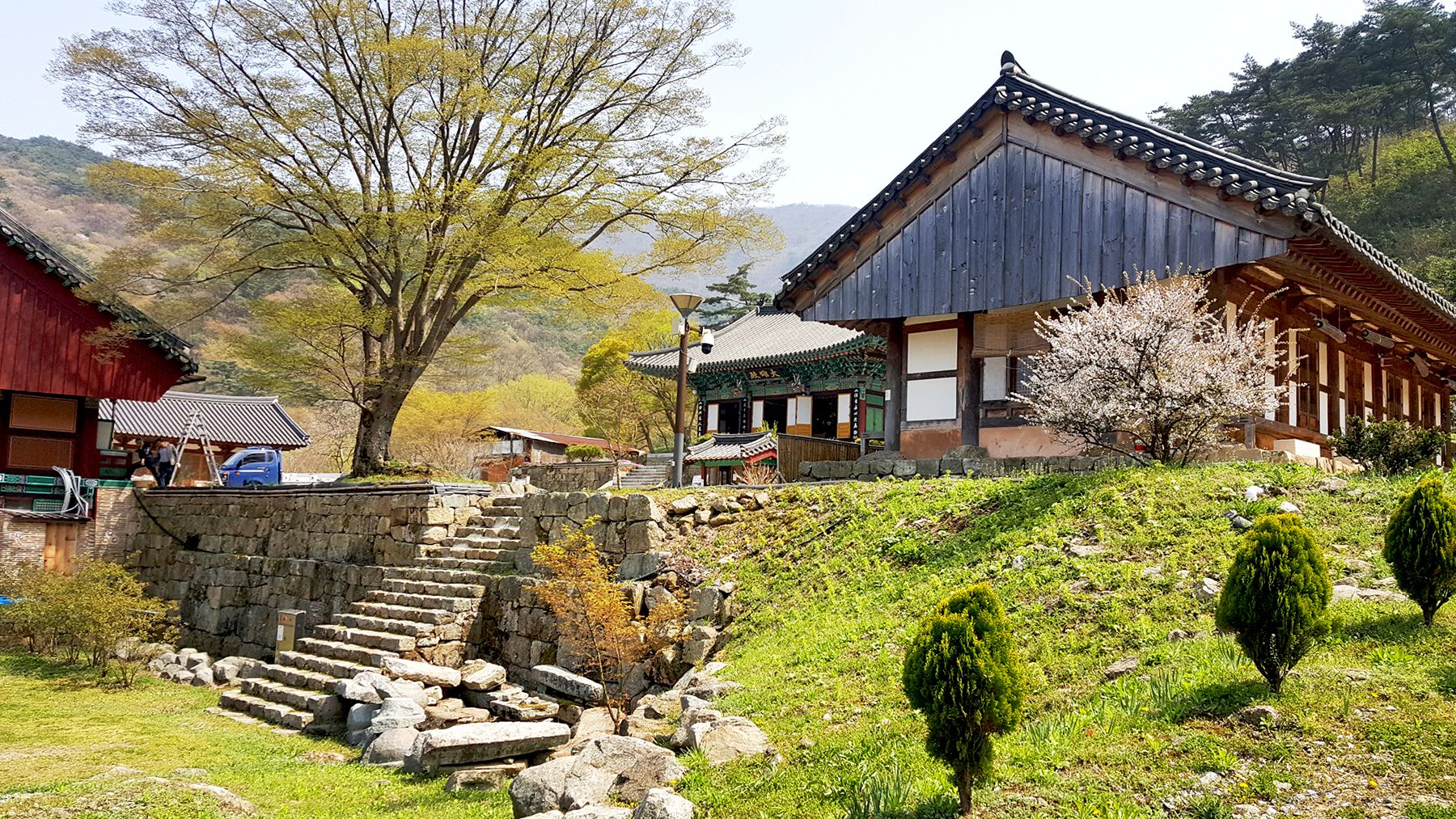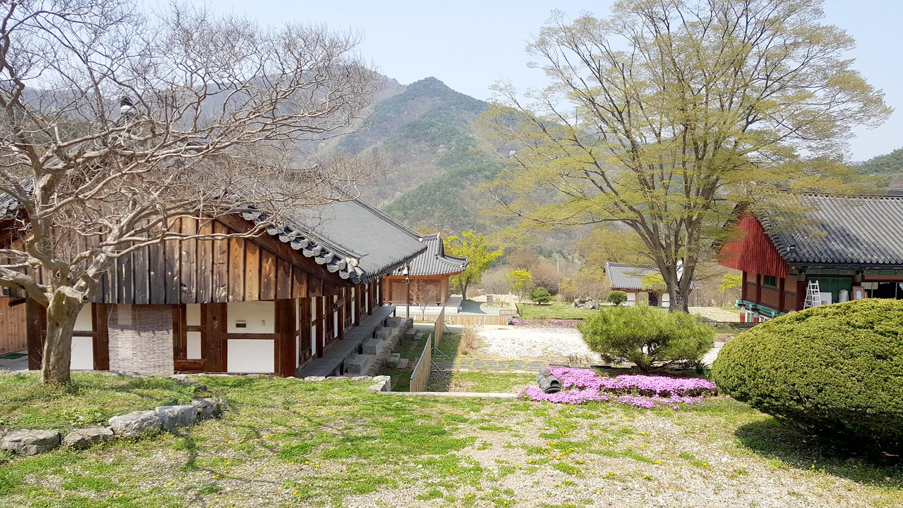 병풍처럼 둘러싸인 산자락 중심의 너른 터에 고즈넉한 분위기의 전경이 시선을 사로잡습니다.